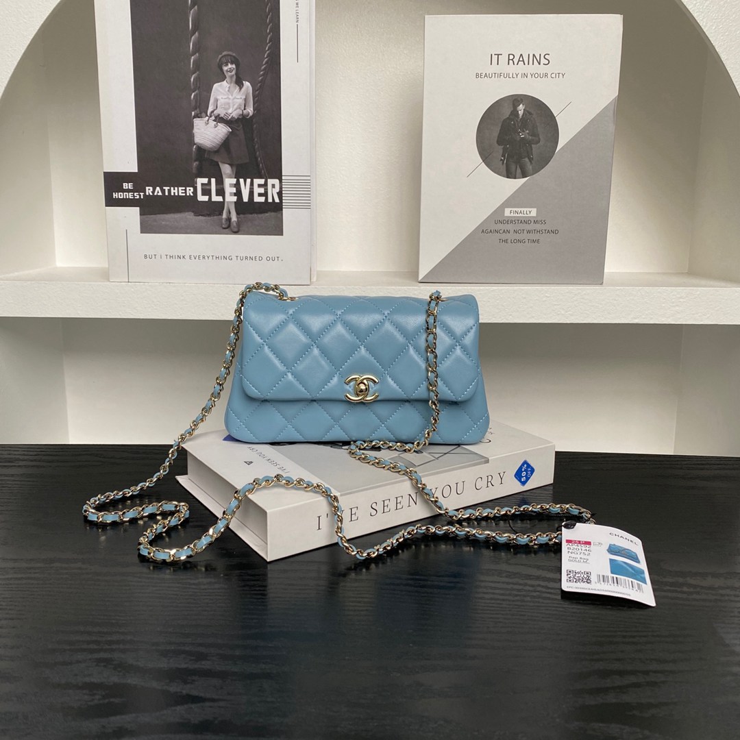 chanel 25s mini cf light blue shiny lambskin gold hardware medium