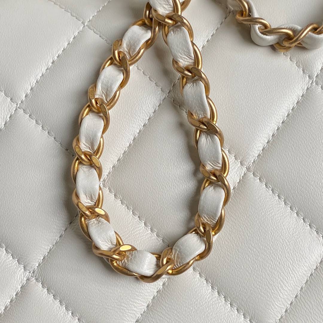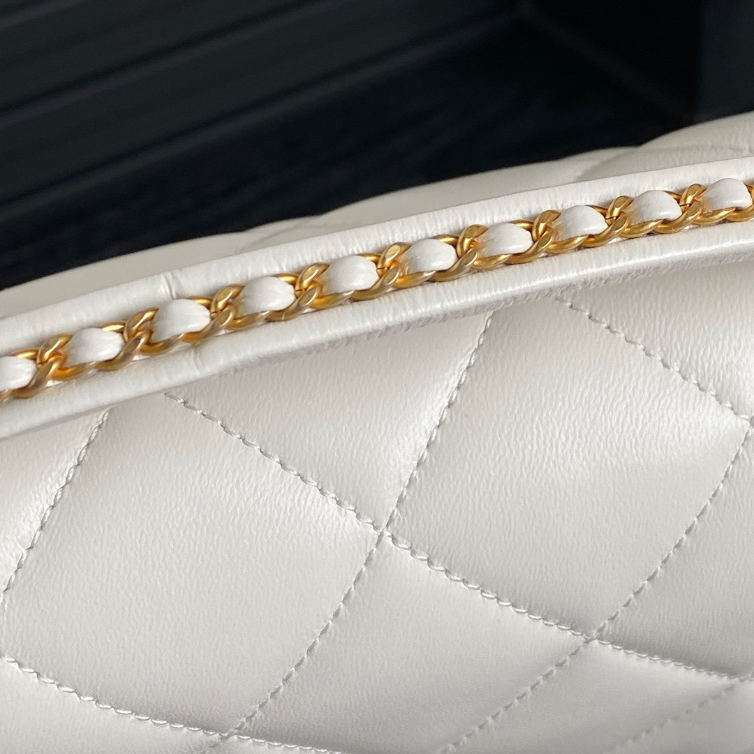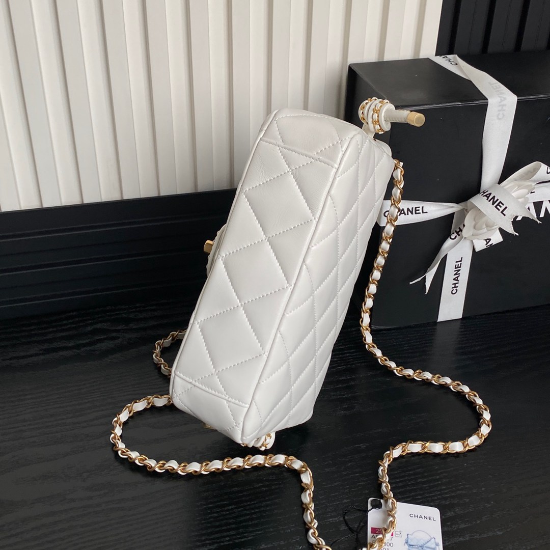 chanel 25c top handle cf white shiny lambskin Hollow gold cc&gold hardware