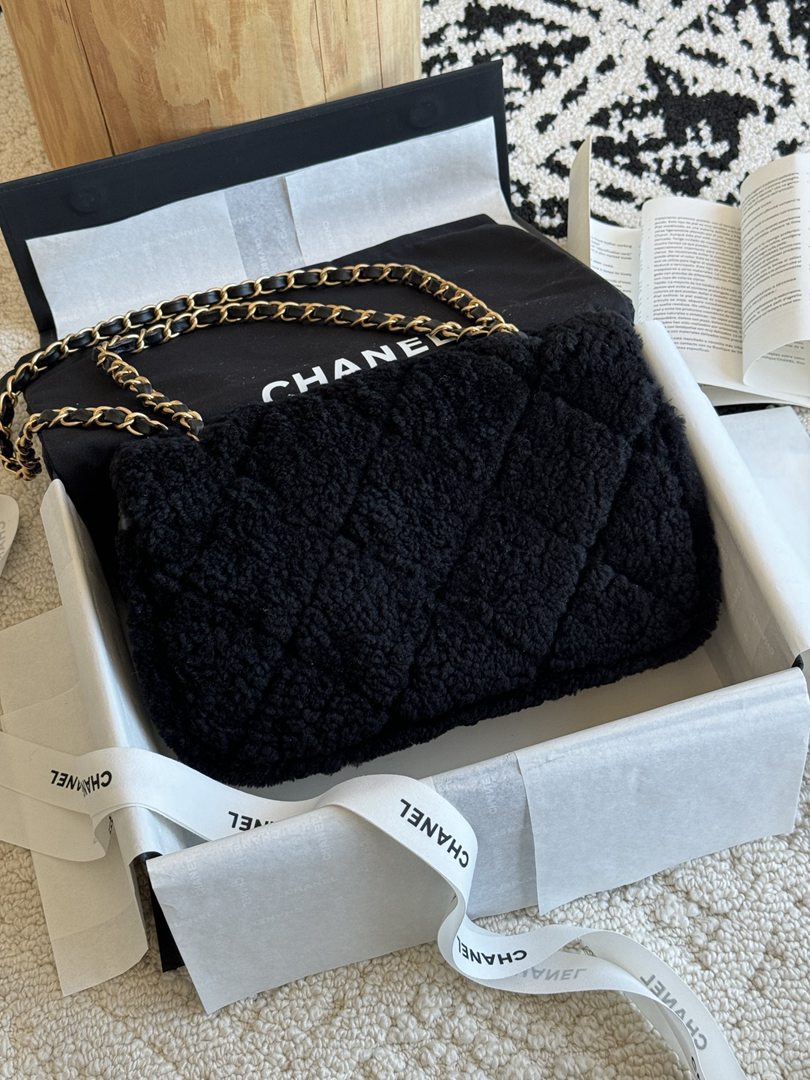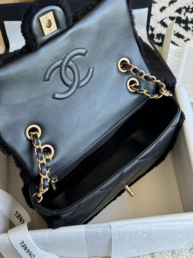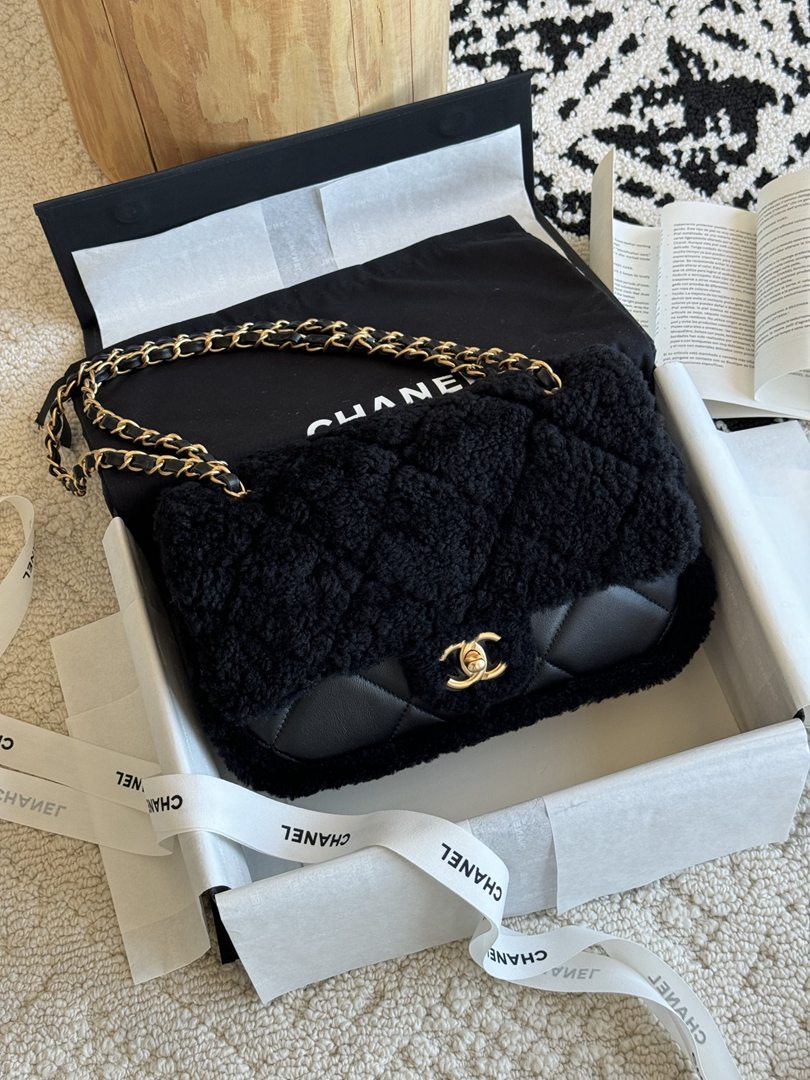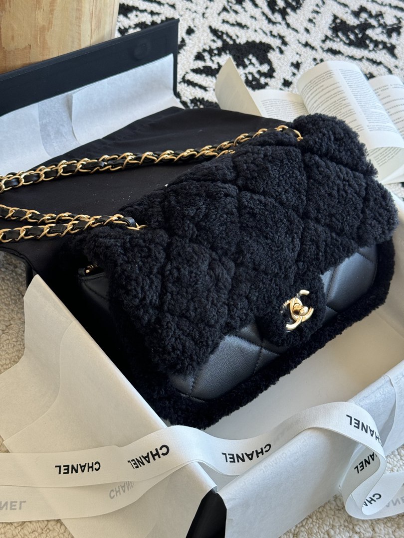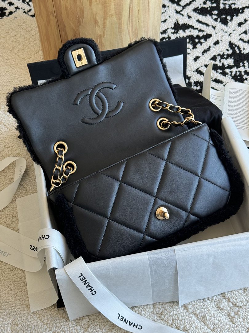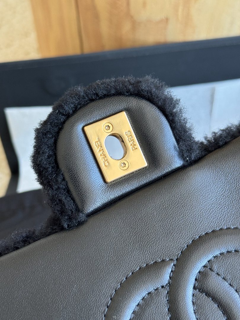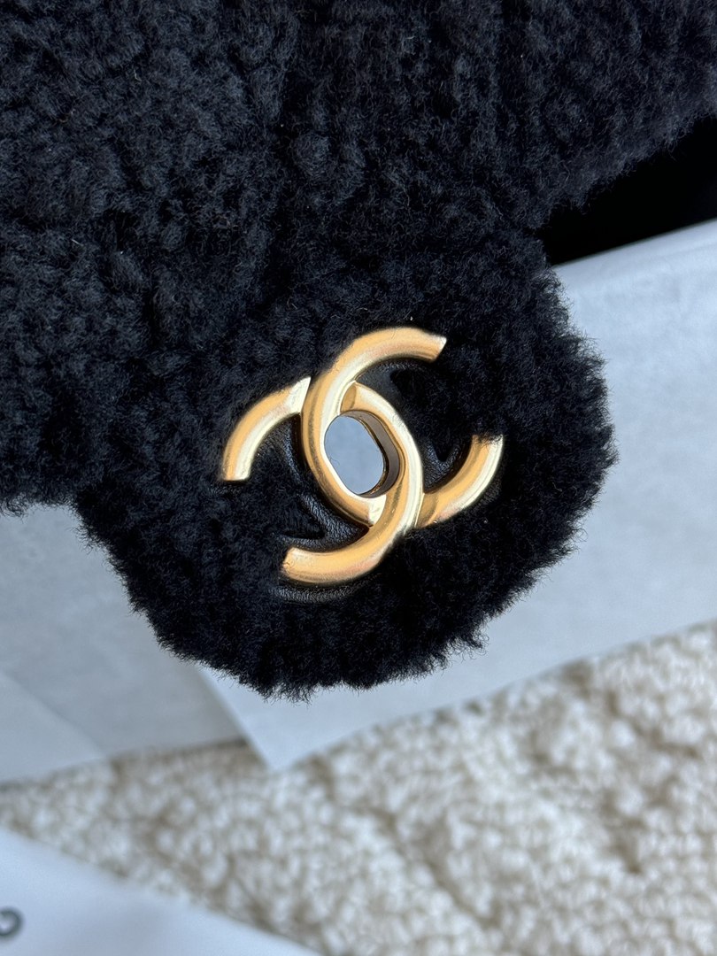 chanel 24k cf black Teddy Bear Shearling copper hardware