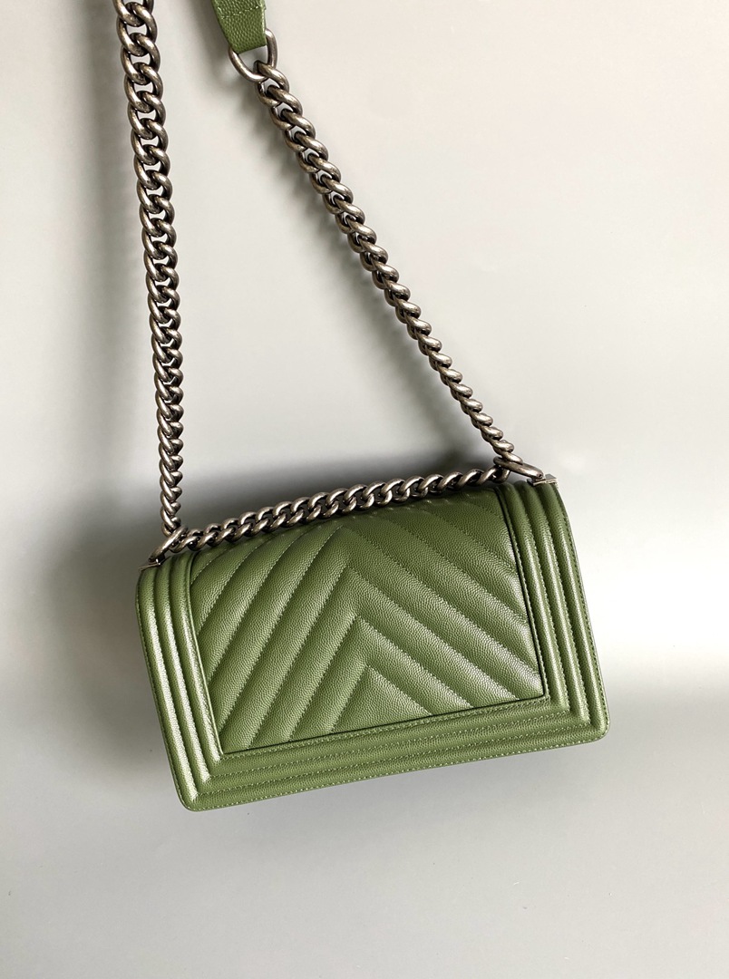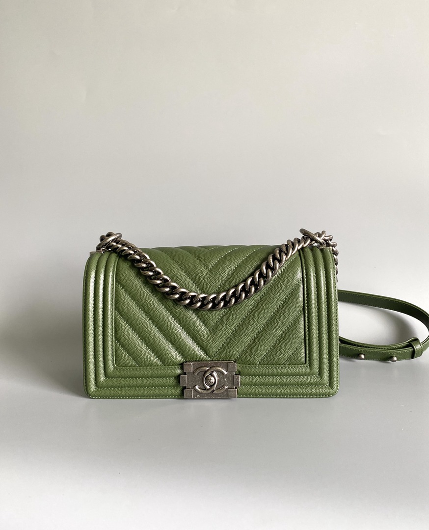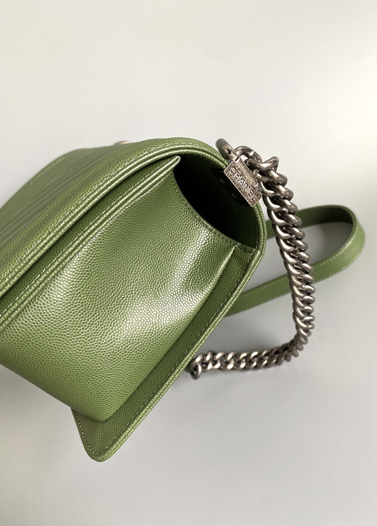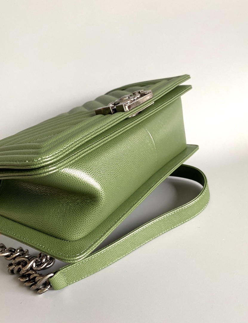 chanel leboy green Caviar Chevron Quilted sliver hardware medium