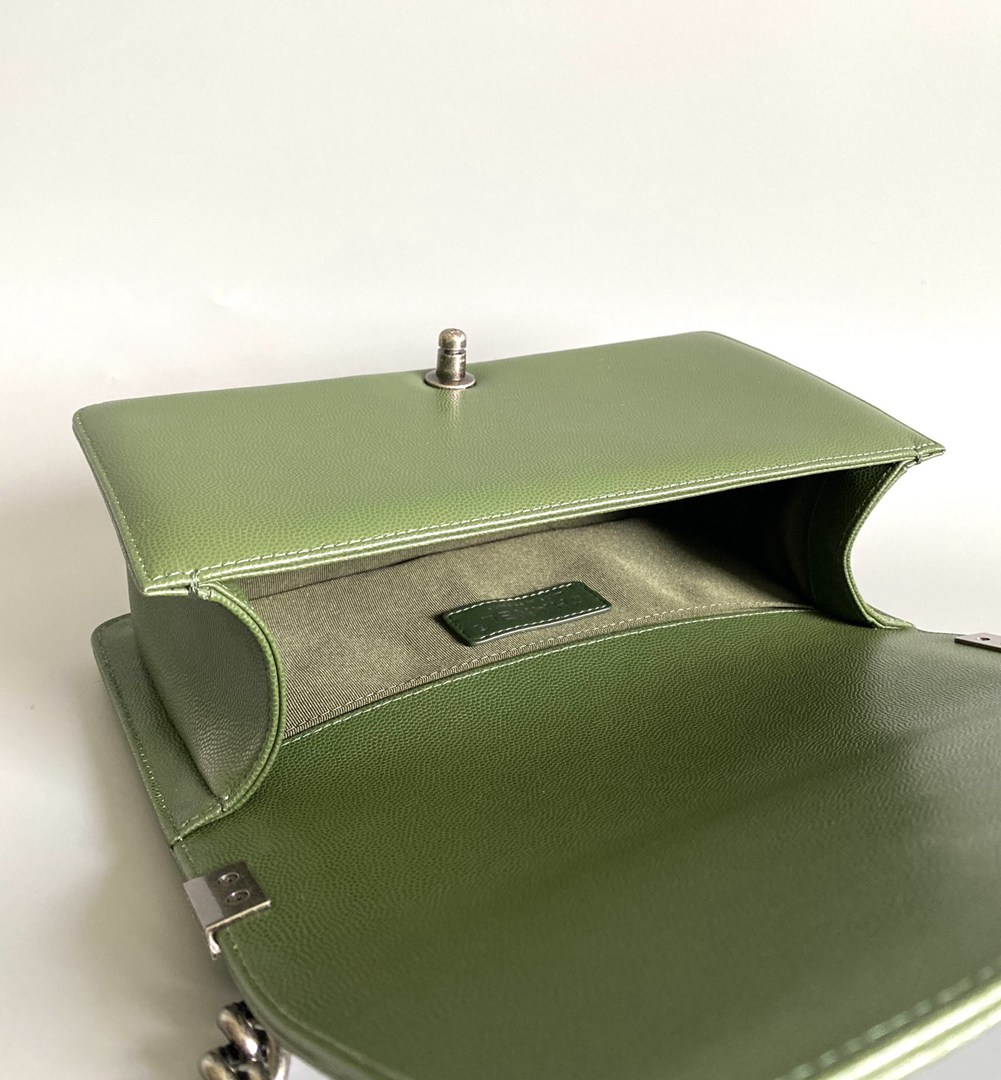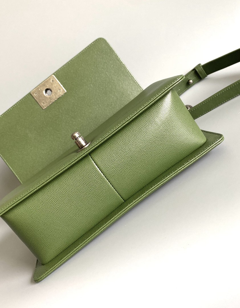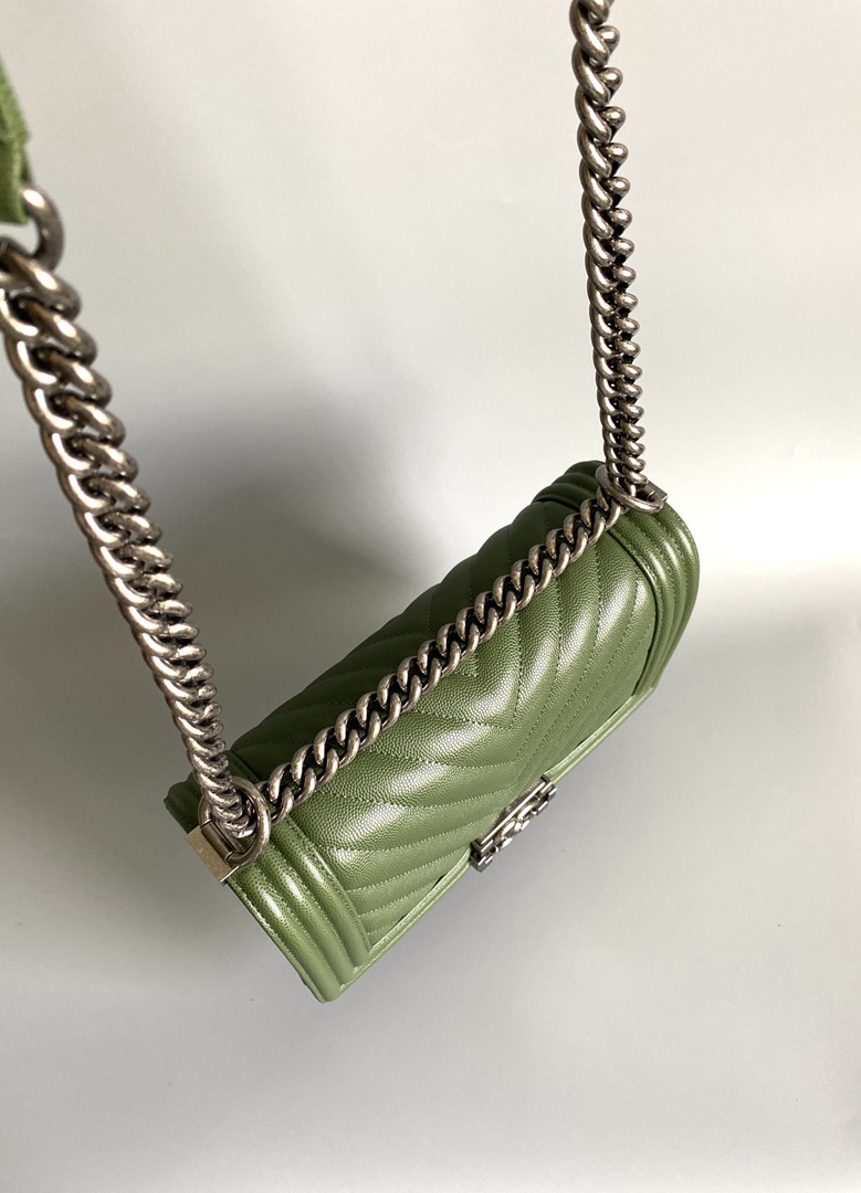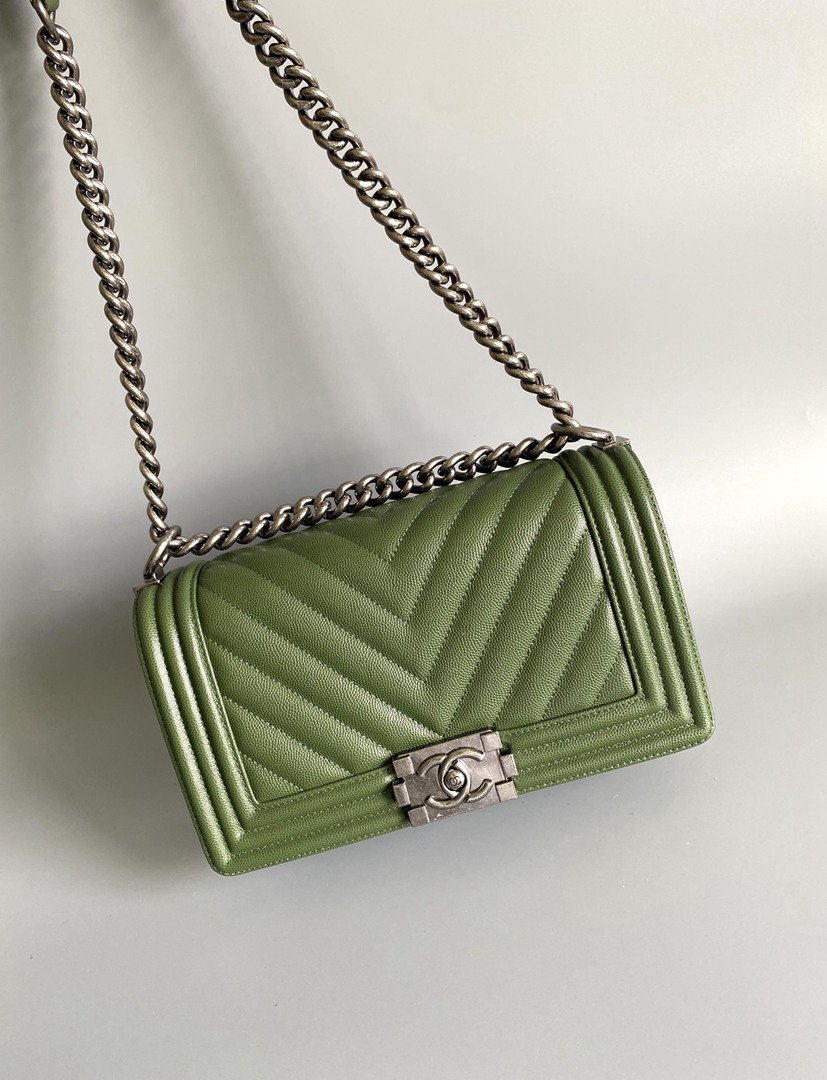 chanel leboy green Caviar Chevron Quilted sliver hardware medium