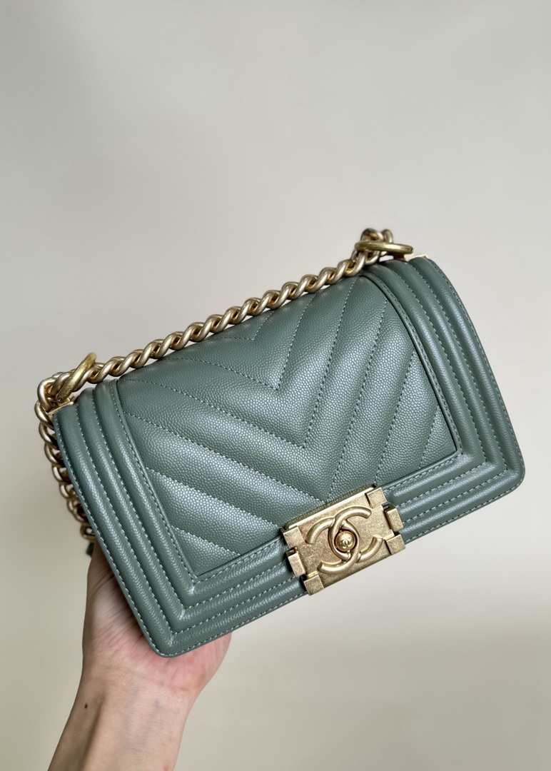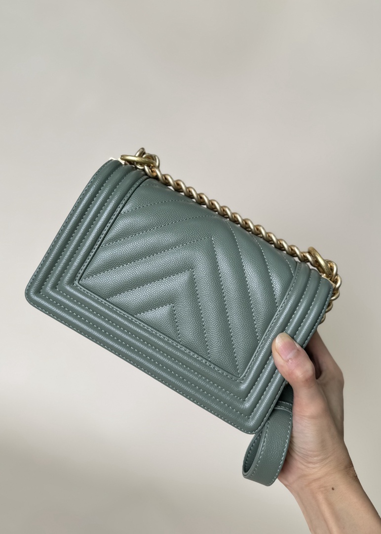 chanel mini leboy matcha green Caviar Chevron Quilted gold hardware small