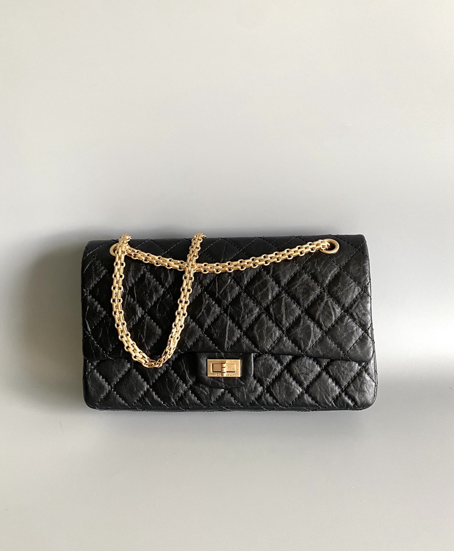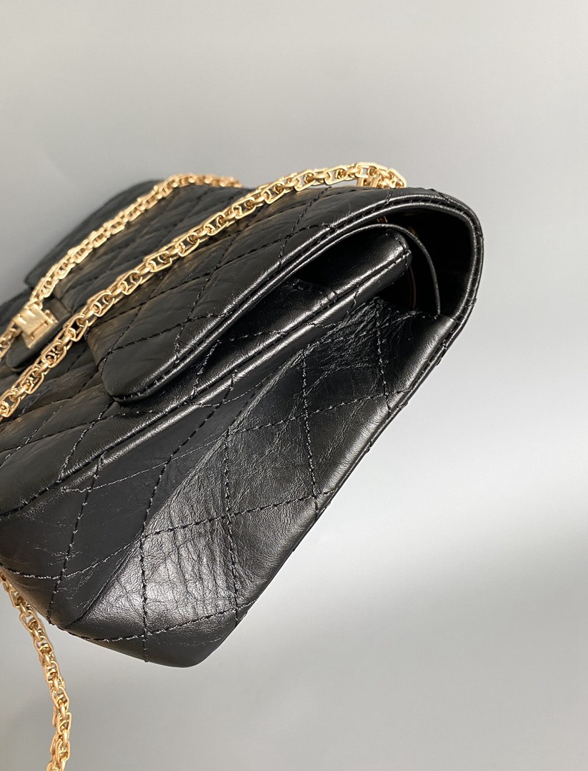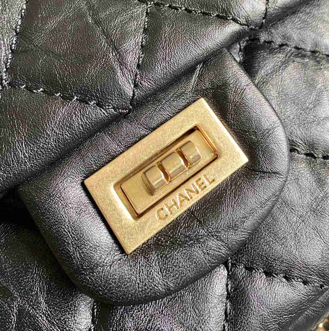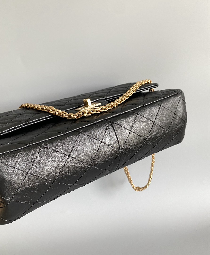 chanel 2.55 black aged calfskin gold hardware large