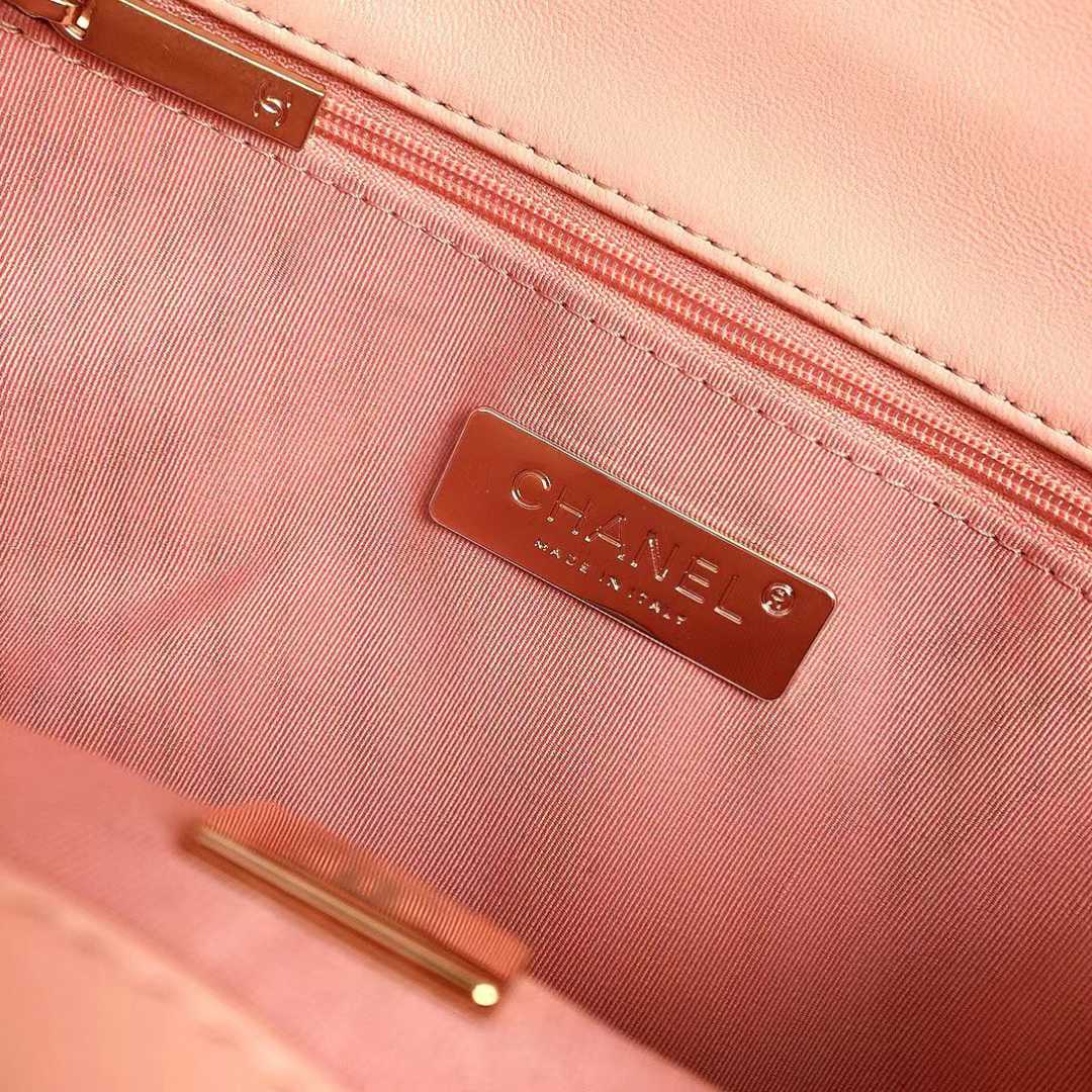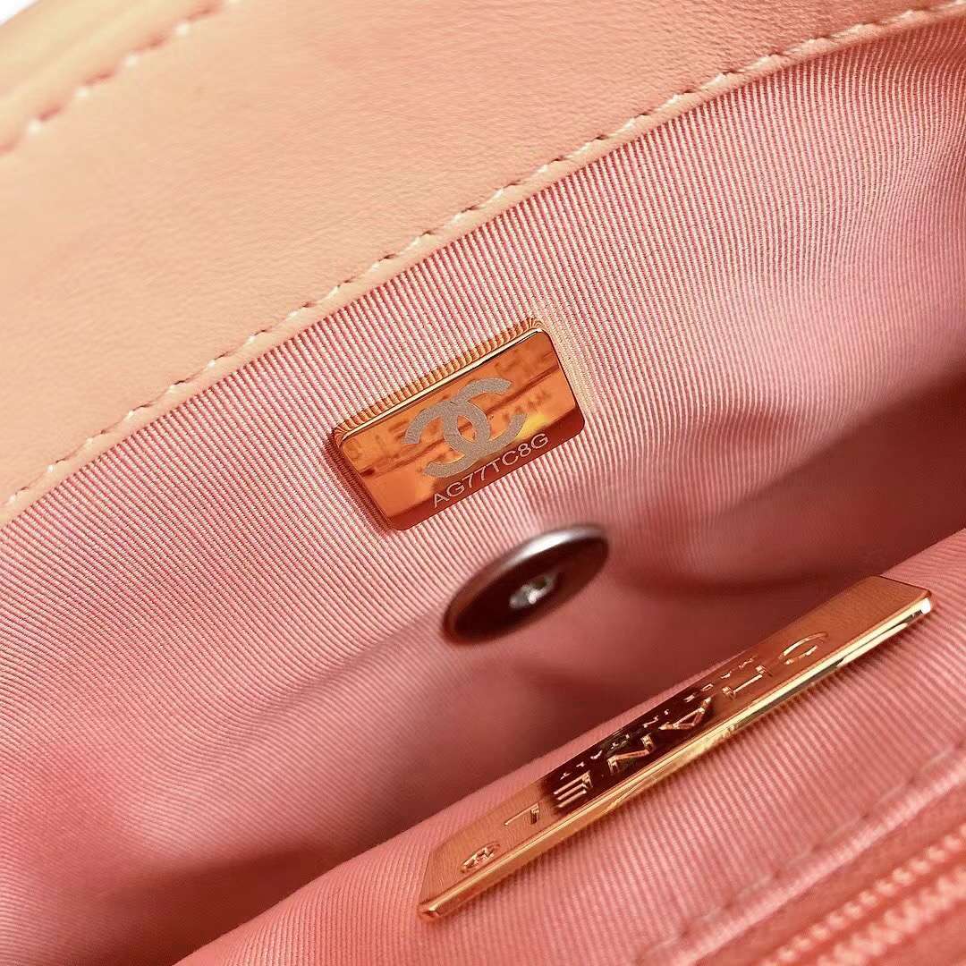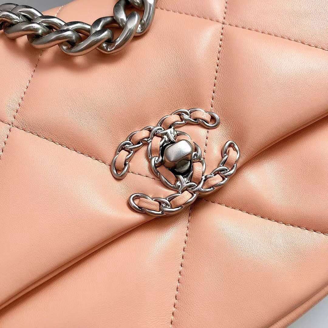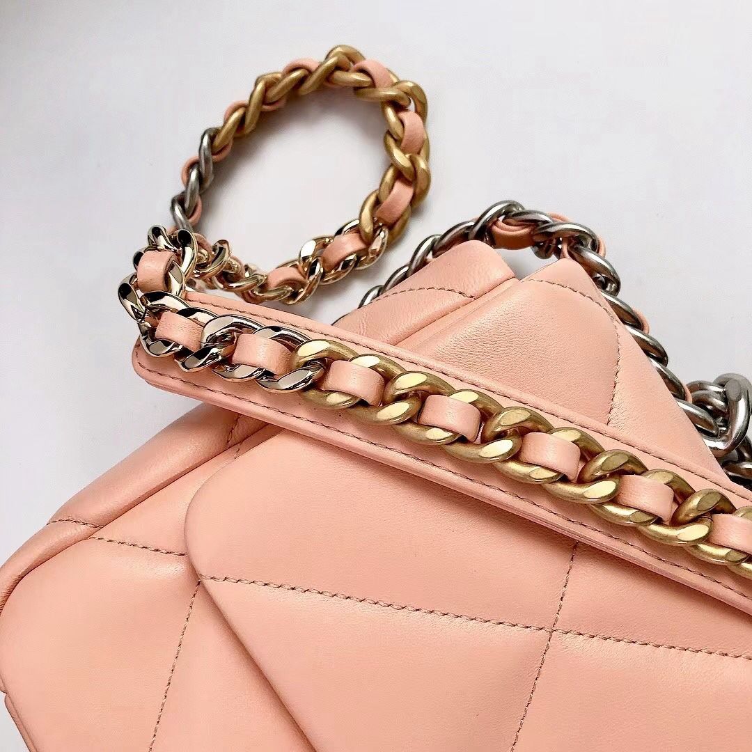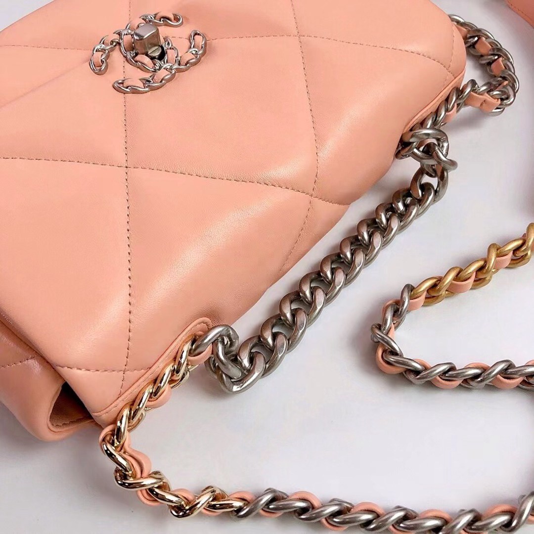 chanel 19 bag pink shiny lambskin sliver cc gold&sliver hardware