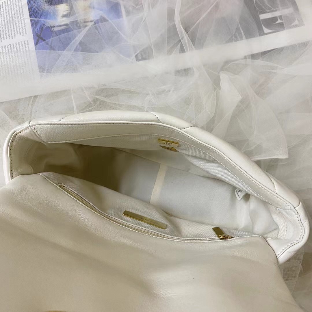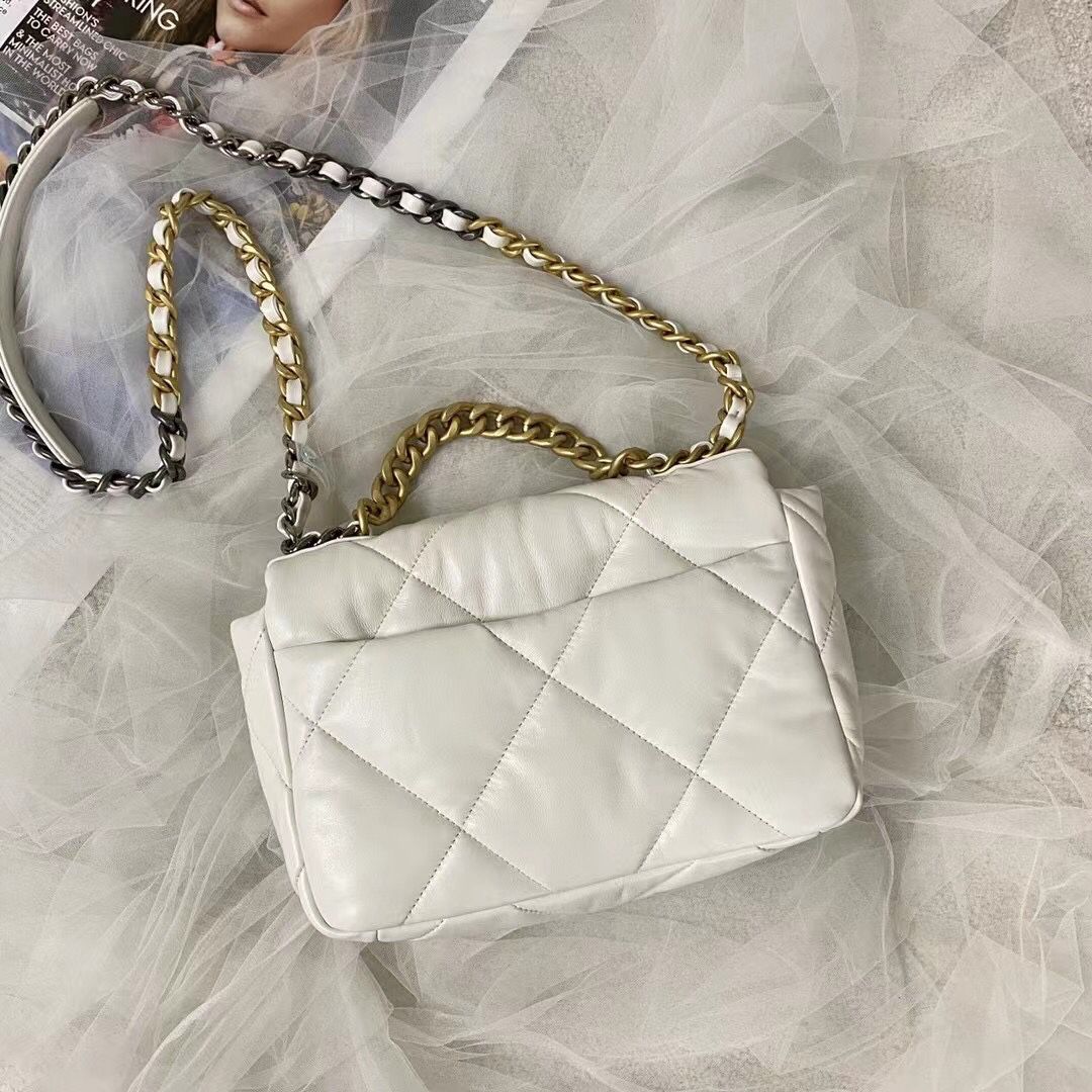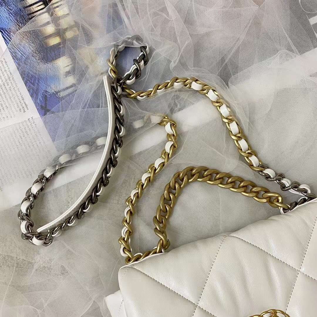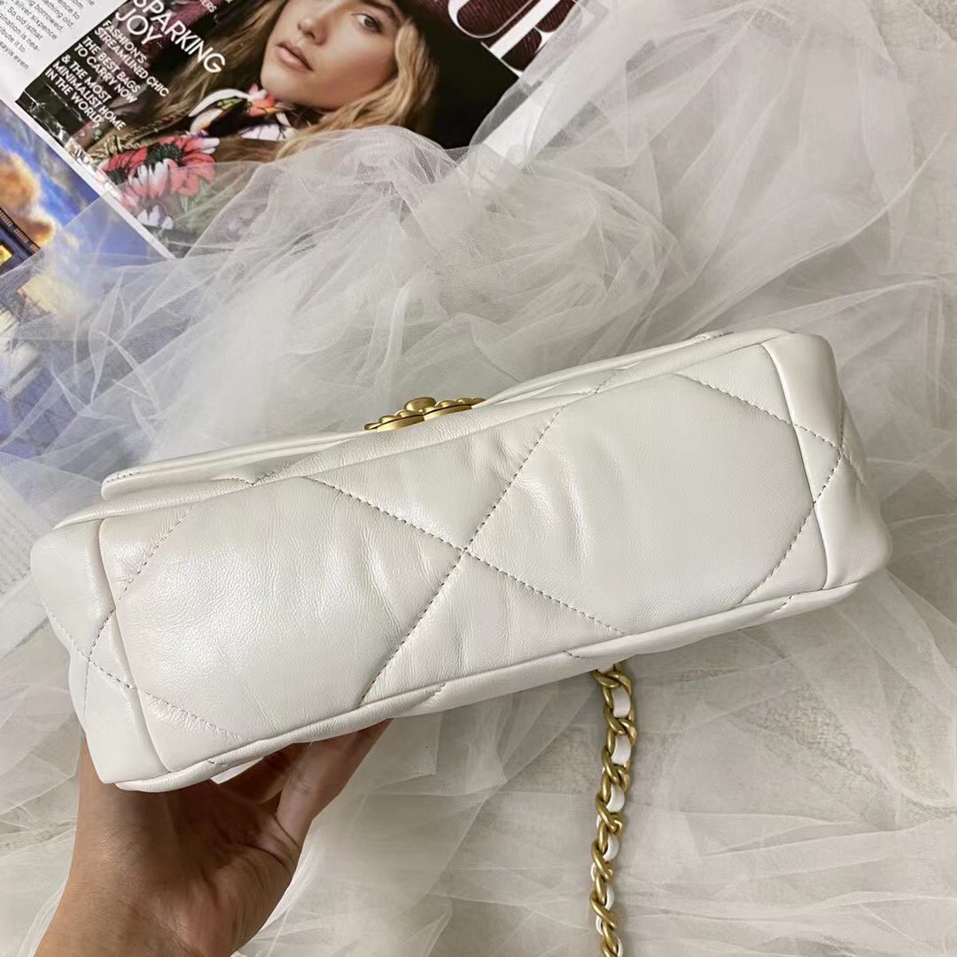 chanel 19 bag white shiny lambskin gold cc gold&sliver hardware small