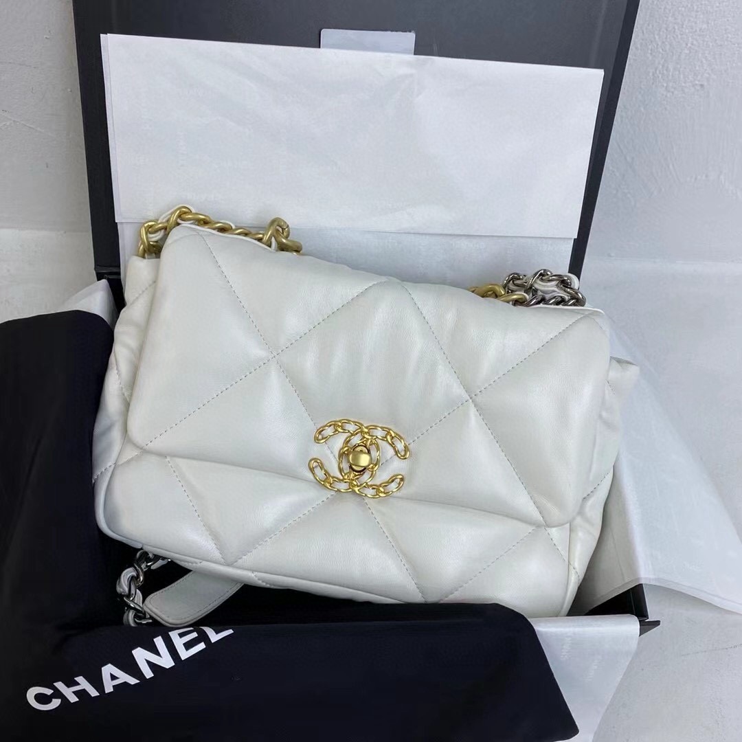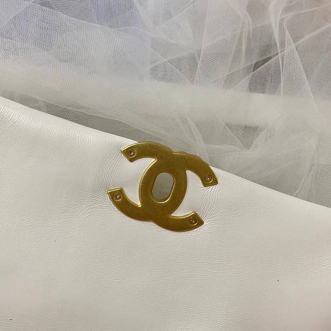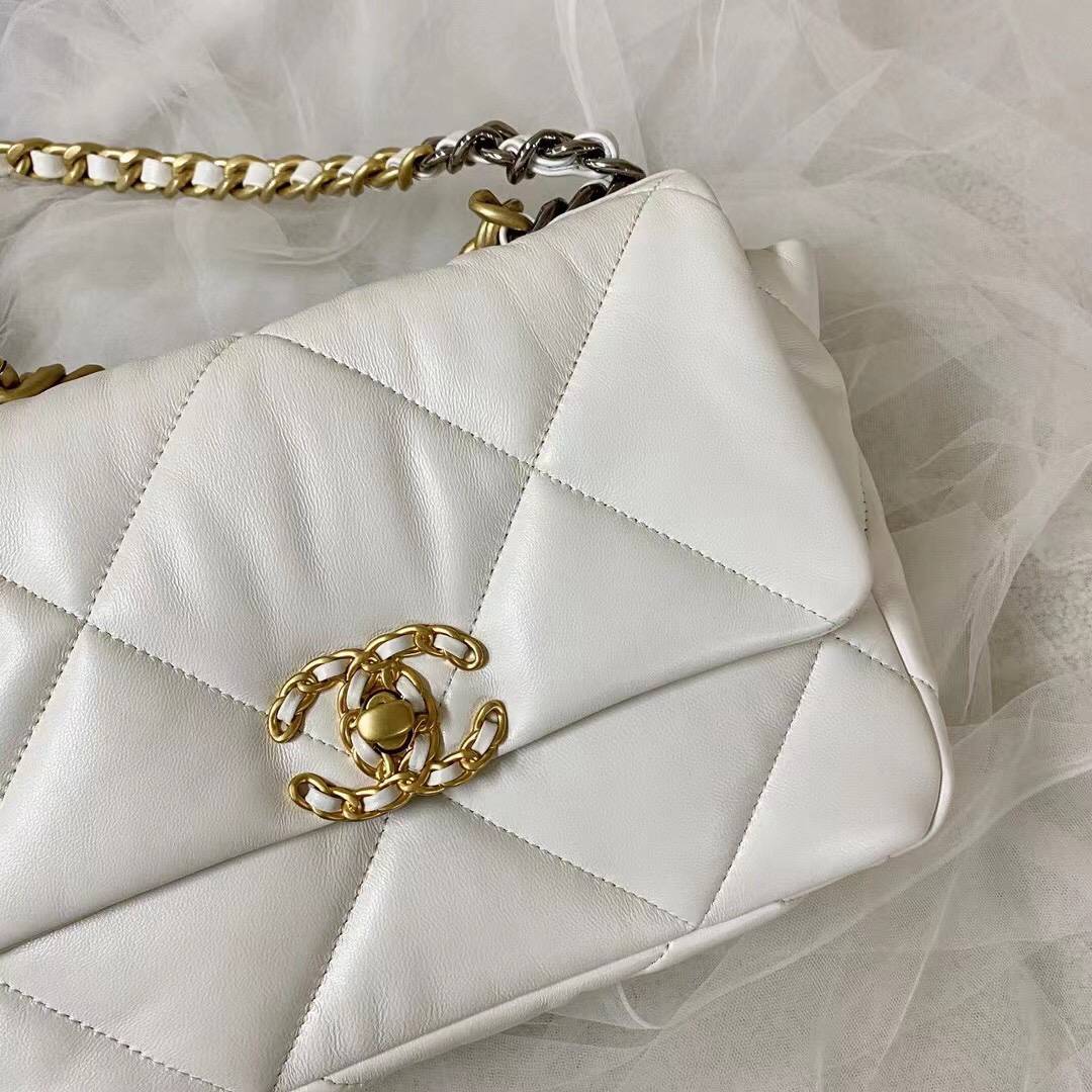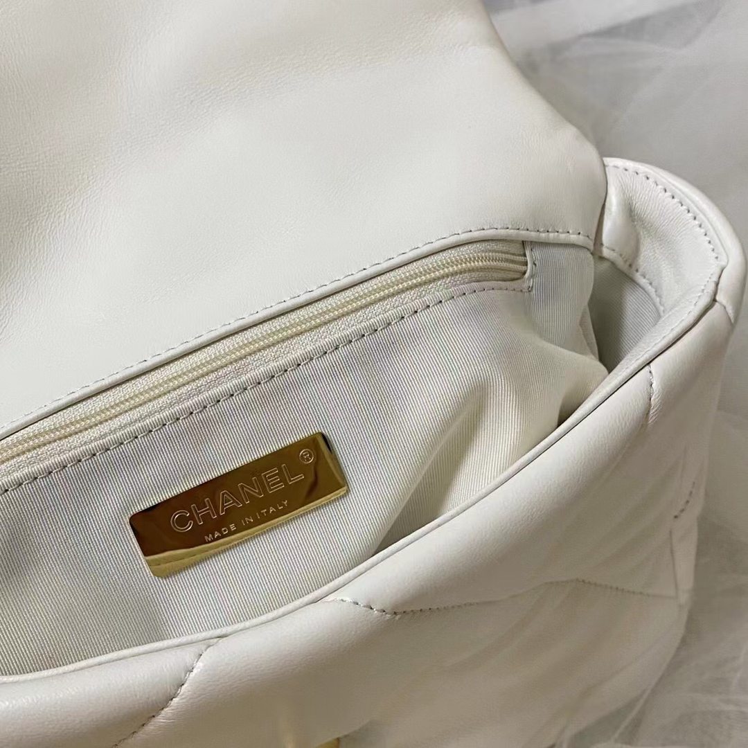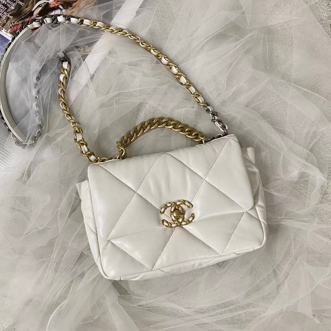 chanel 19 bag white shiny lambskin gold cc gold&sliver hardware small
