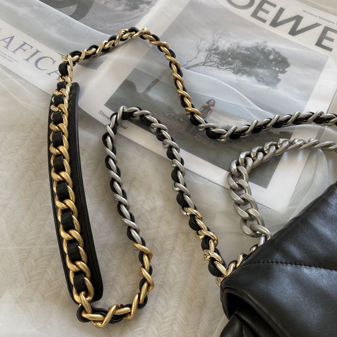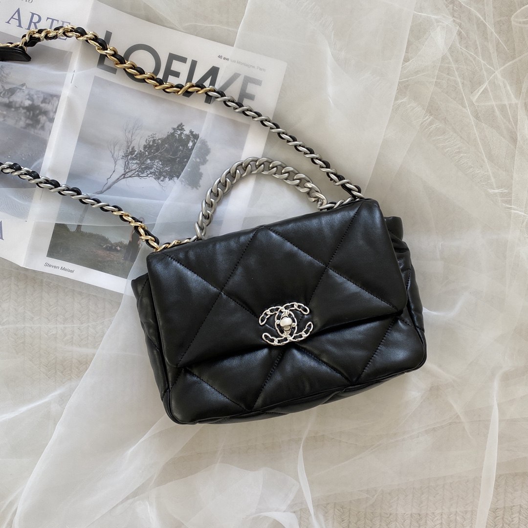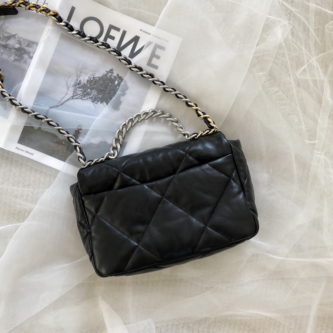 chanel 19 bag black shiny lambskin sliver cc gold&sliver hardware small