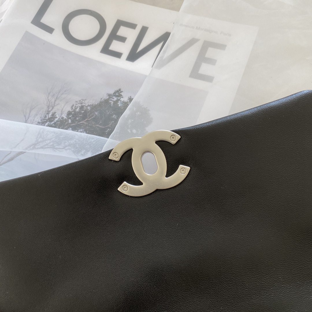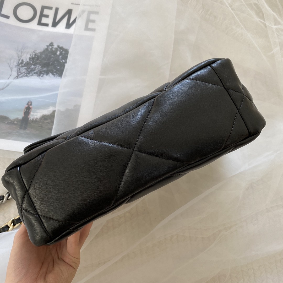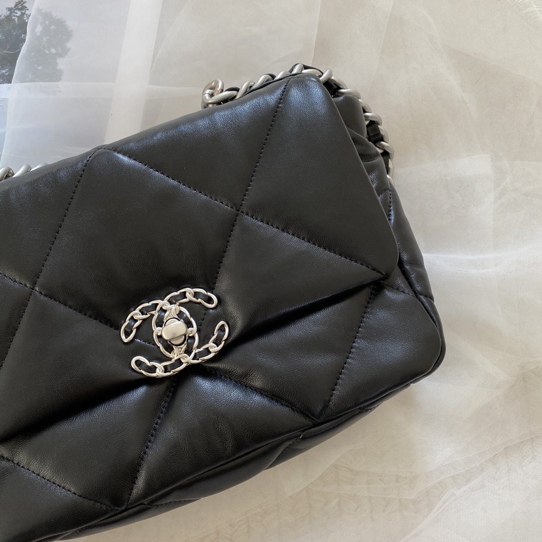 chanel 19 bag black shiny lambskin sliver cc gold&sliver hardware small