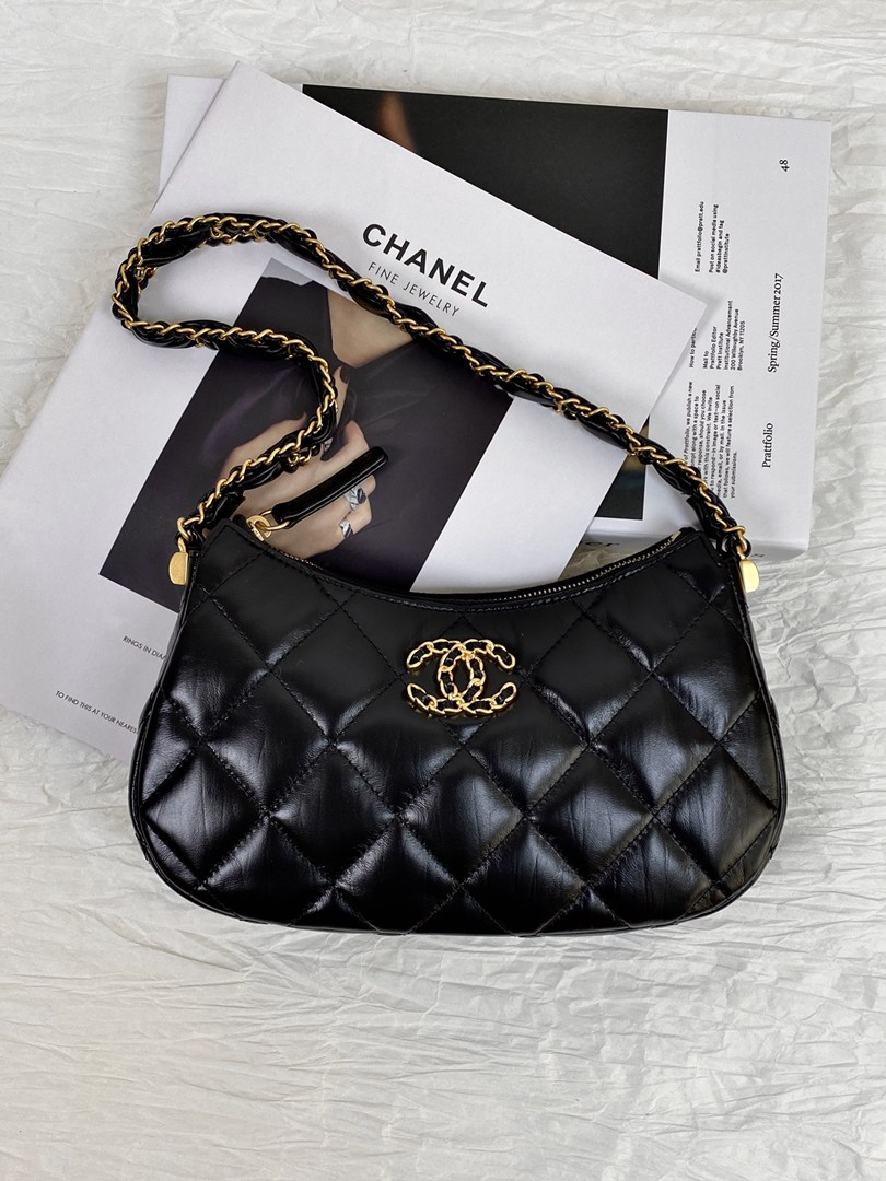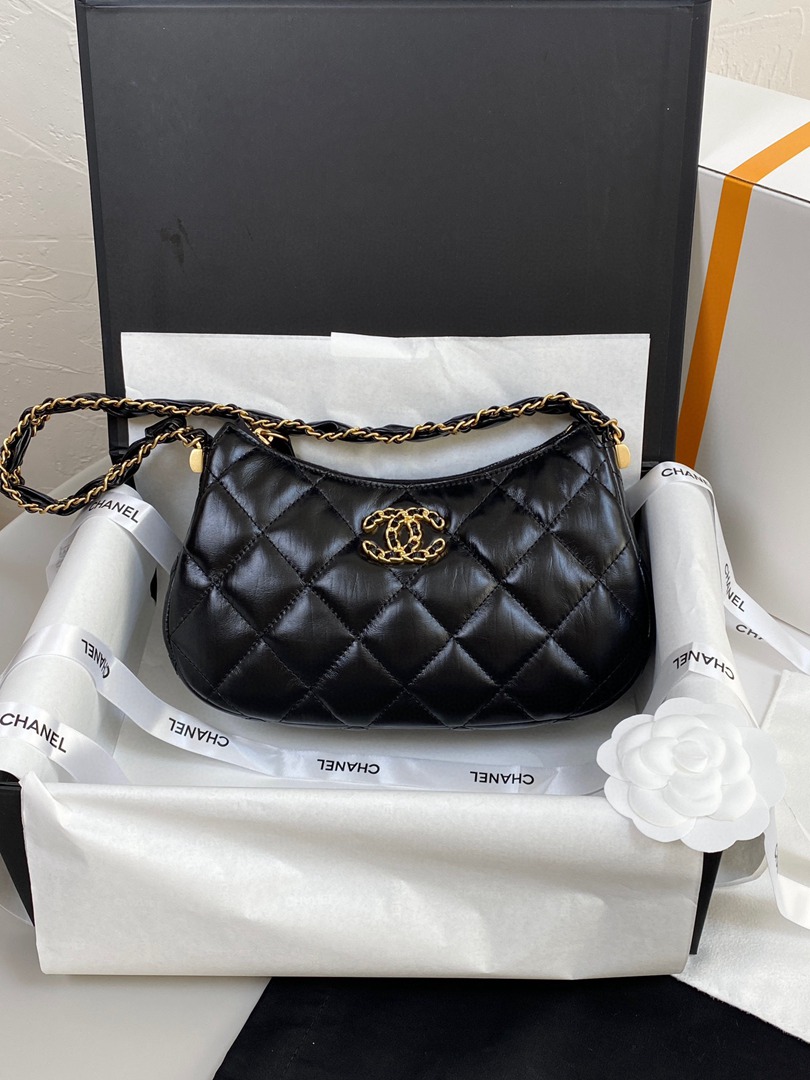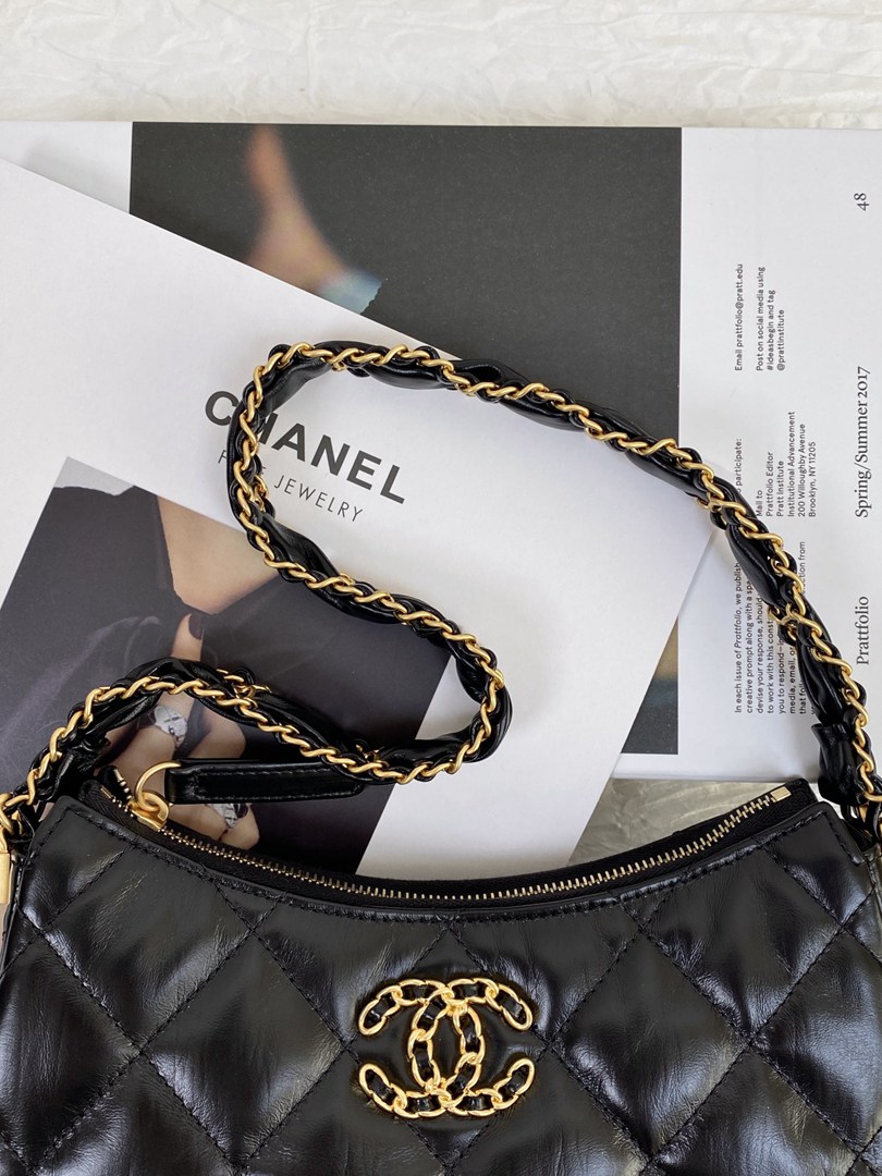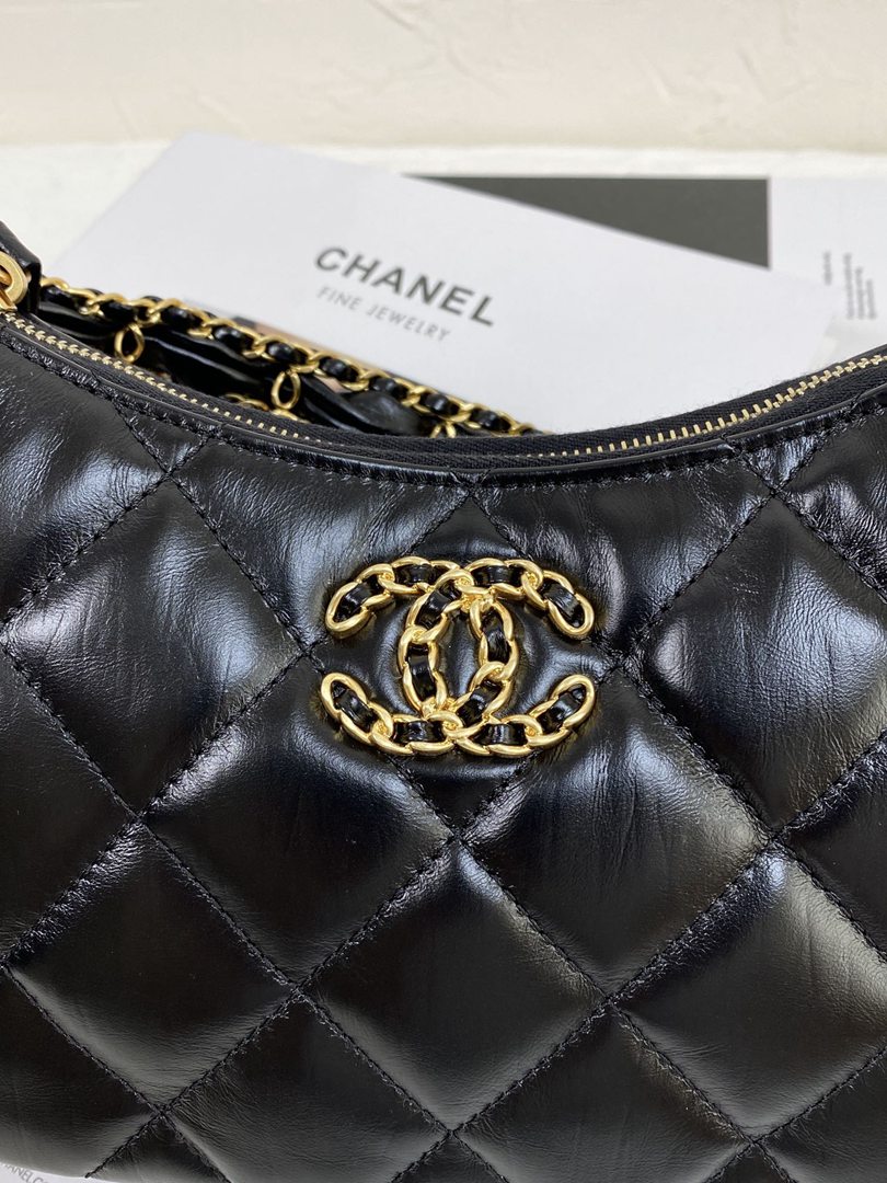 chanel 23k 19 hobo bag black aged calfskin gold hardware large