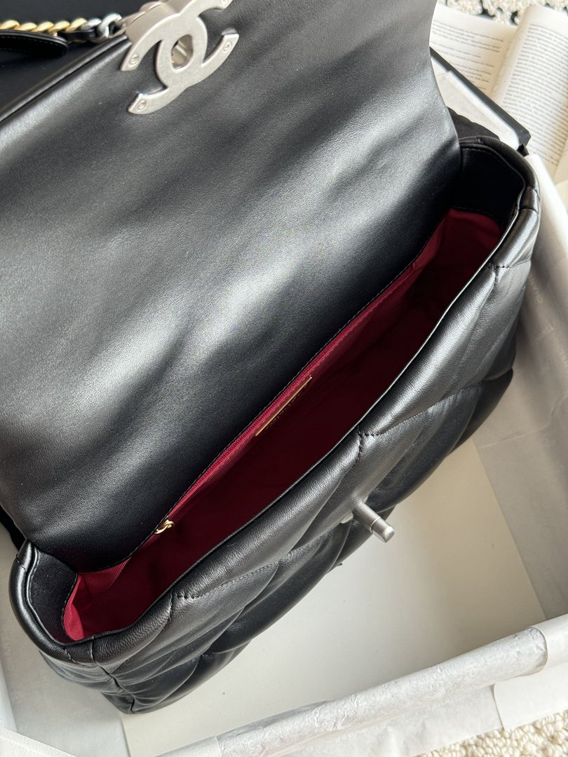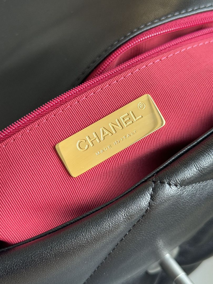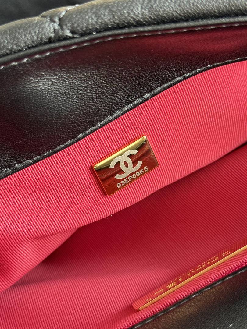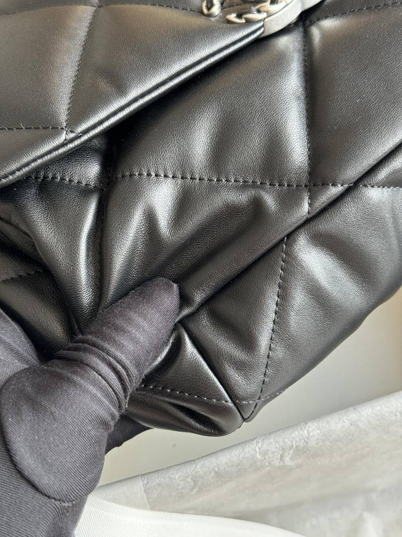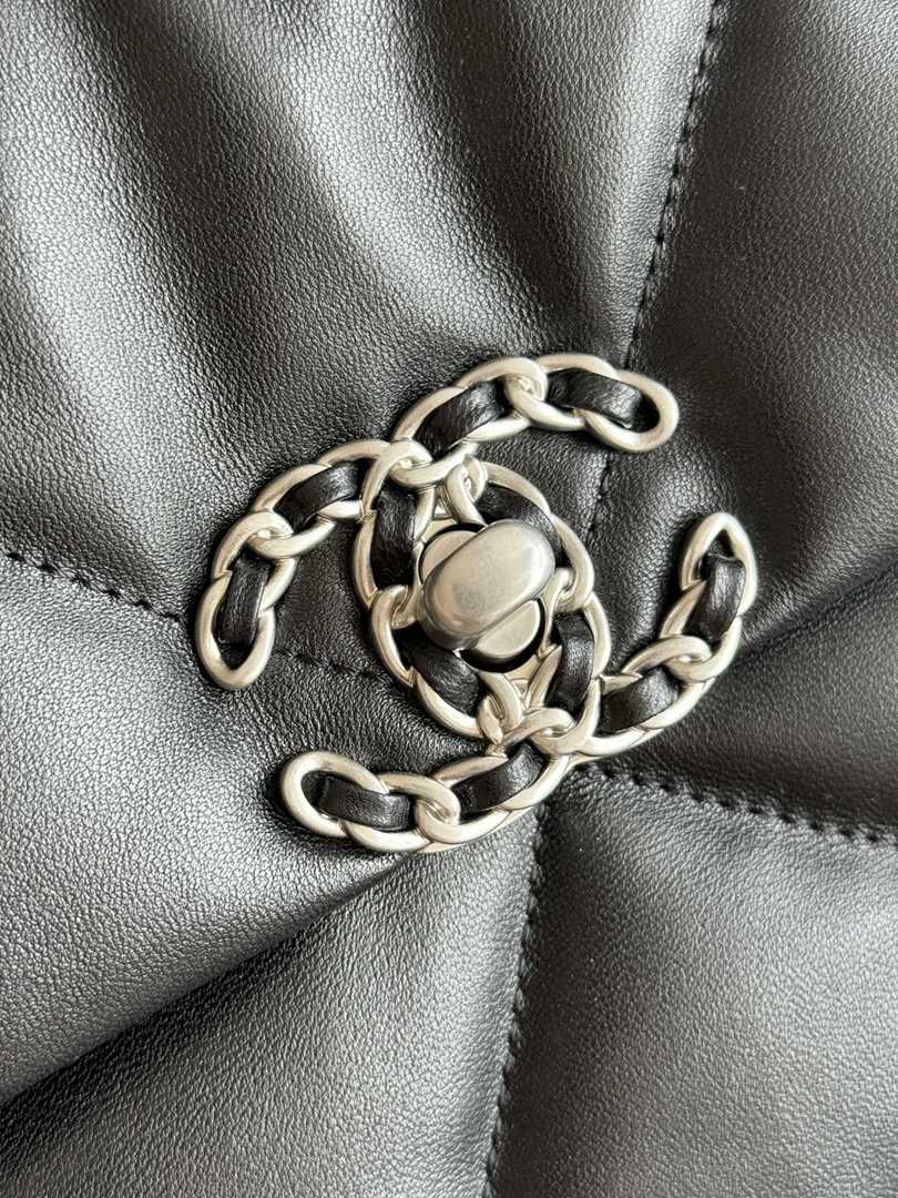 chanel 19 bag black shiny lambskin sliver cc gold&sliver hardware medium