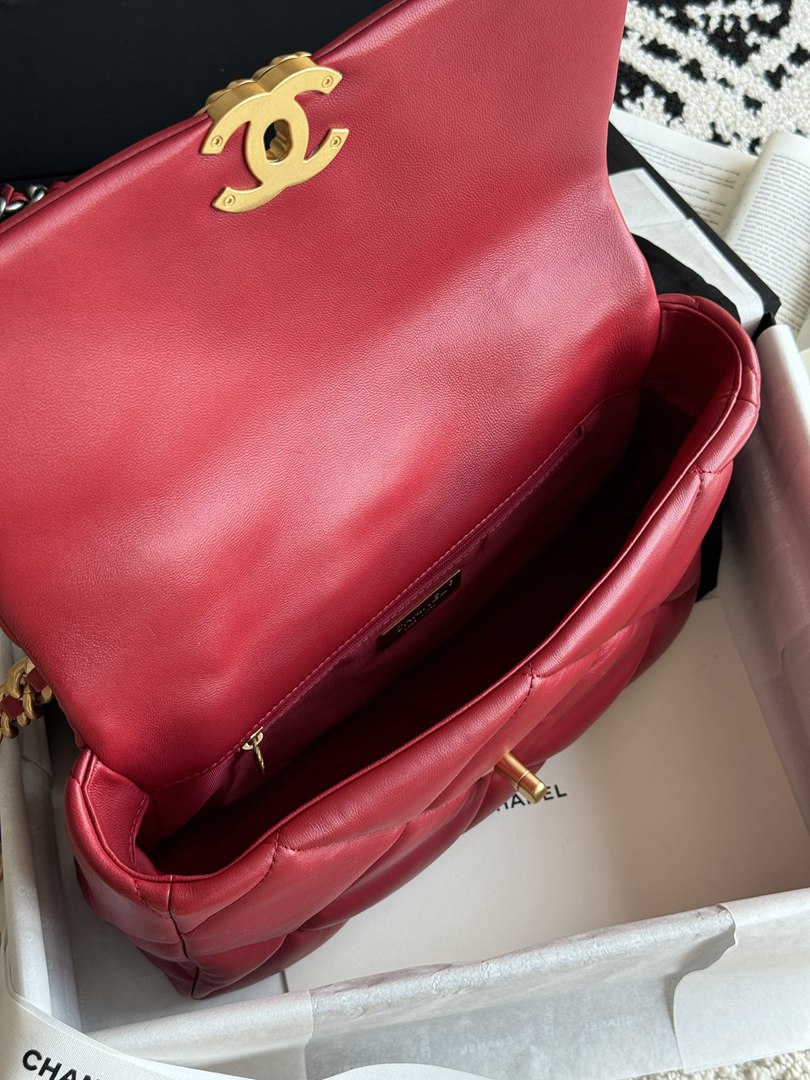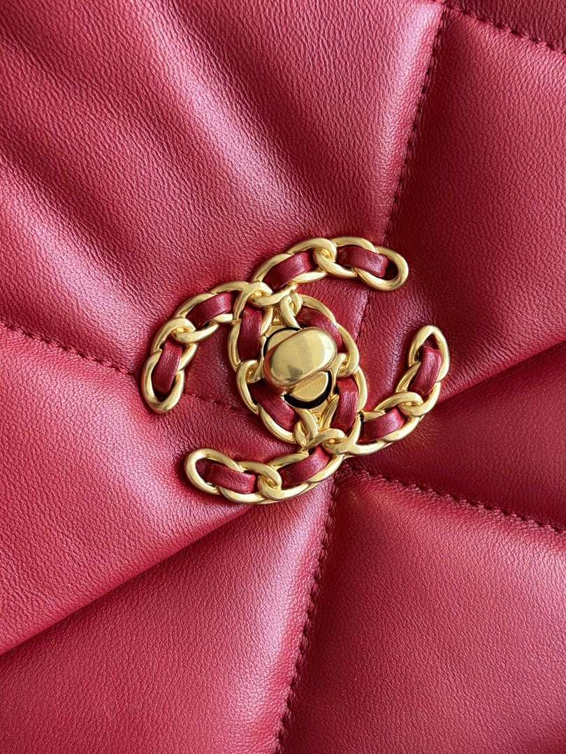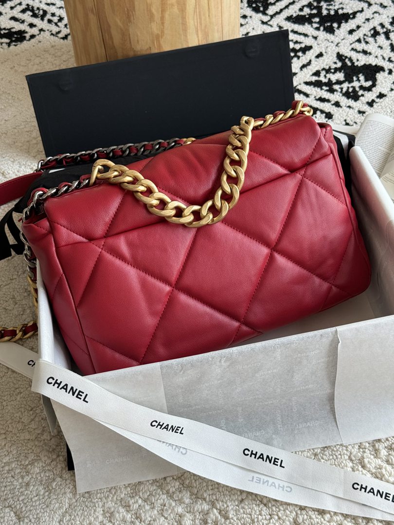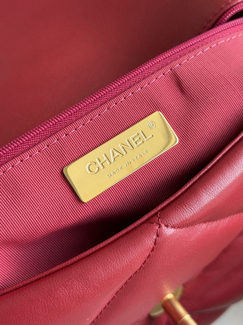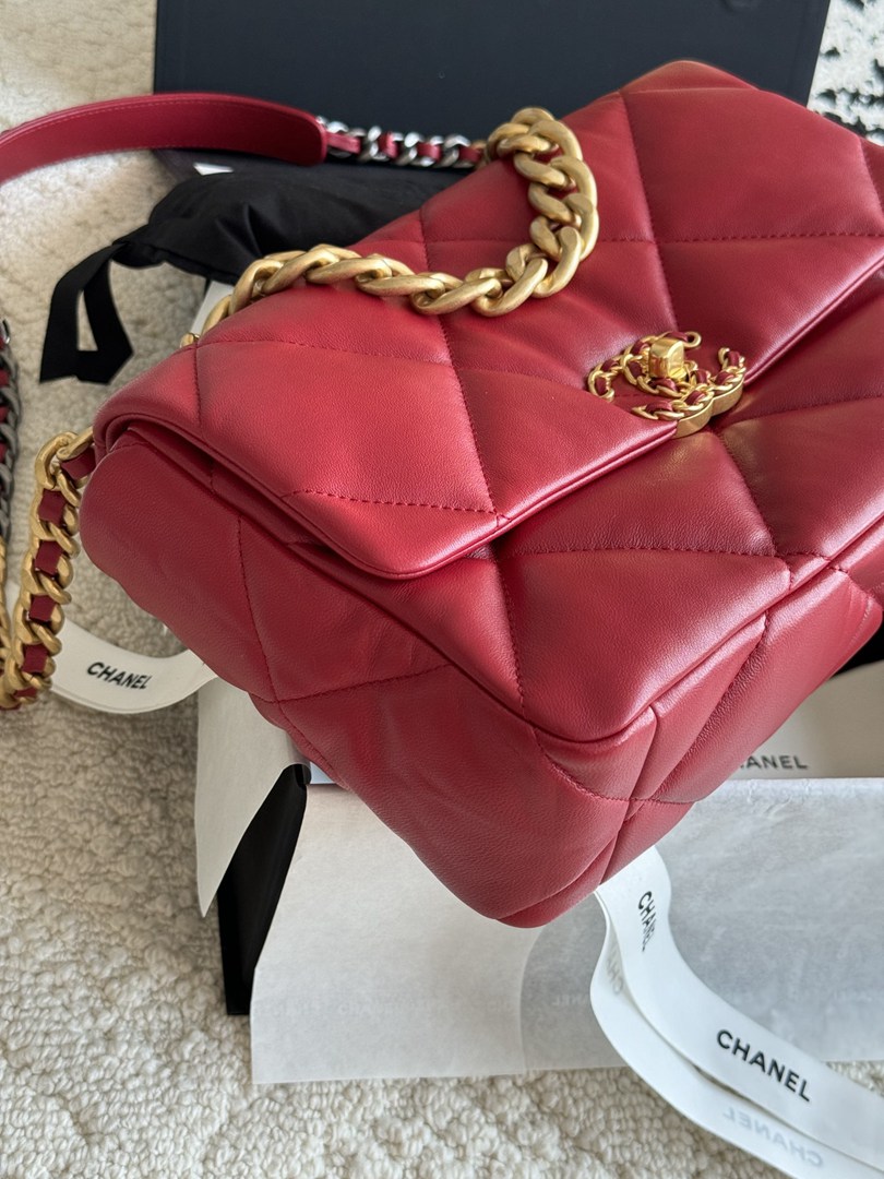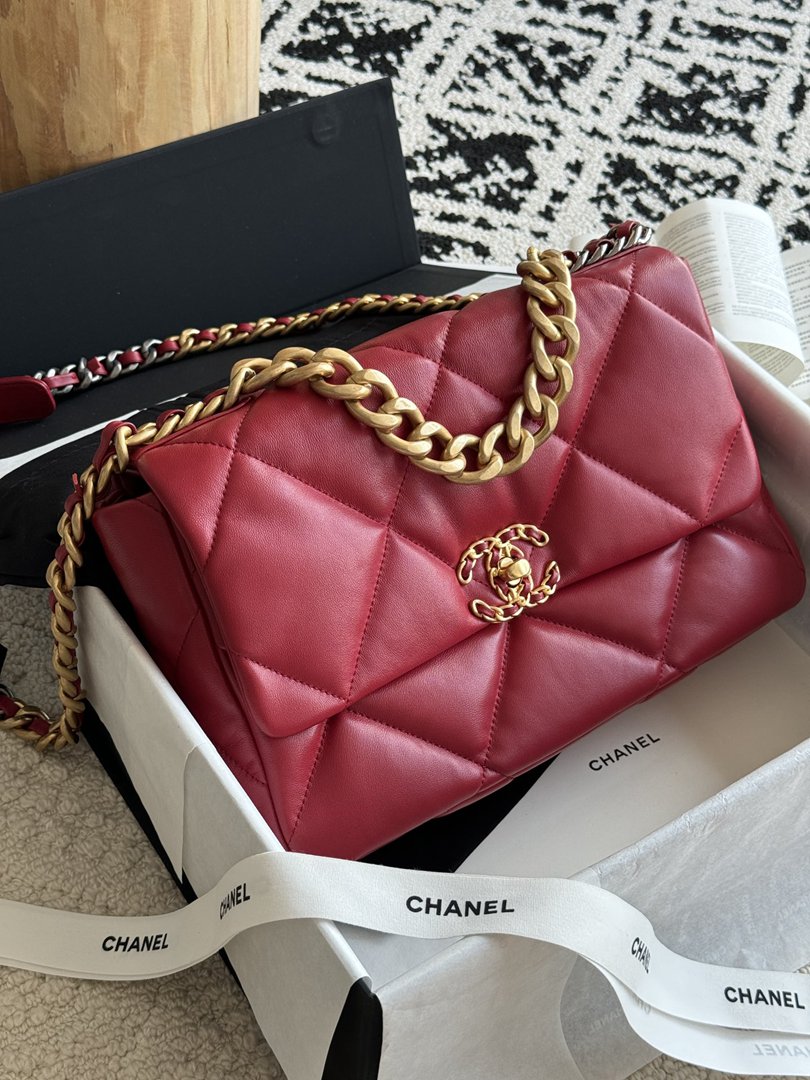 chanel 19 bag jujube redey shiny lambskin gold cc gold&sliver hardware medium