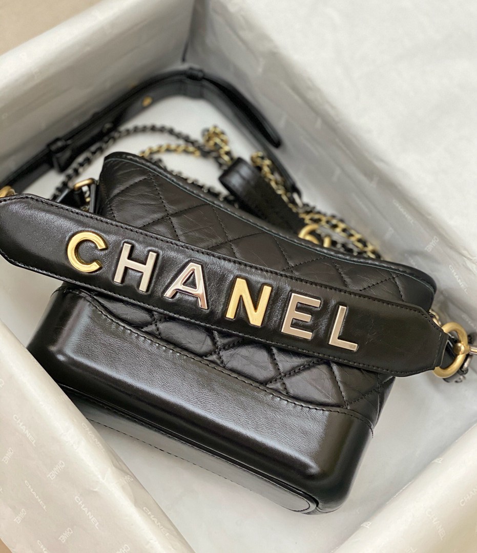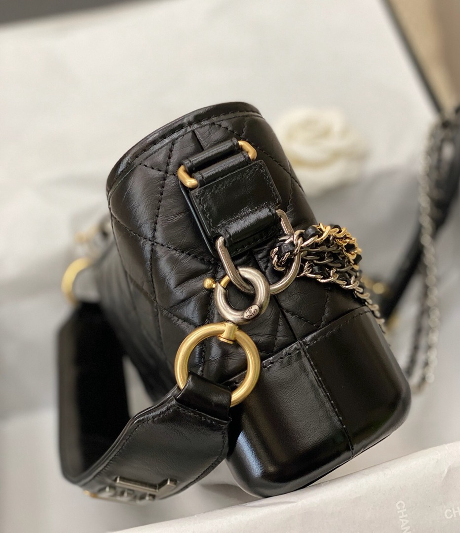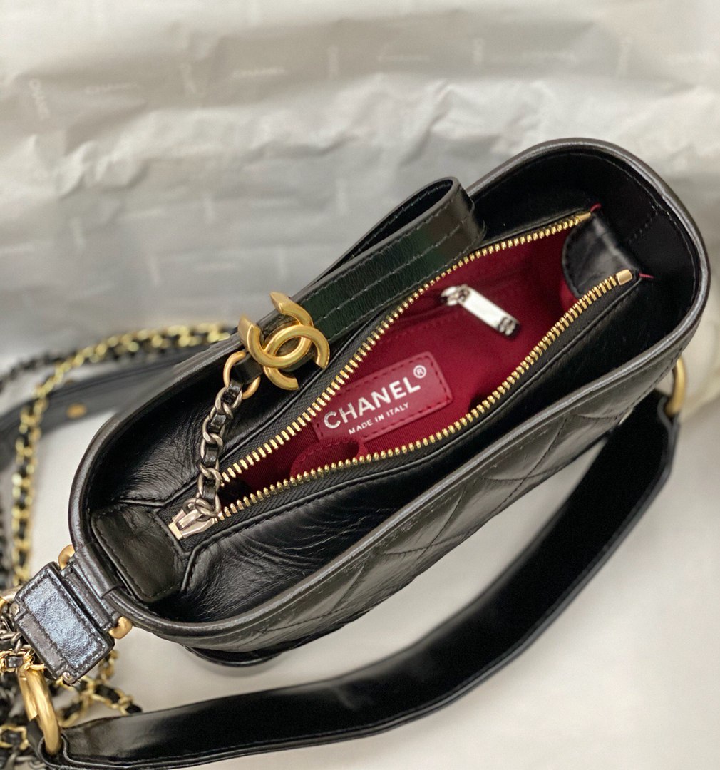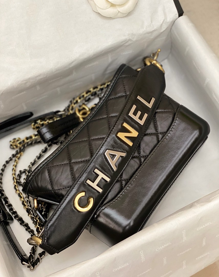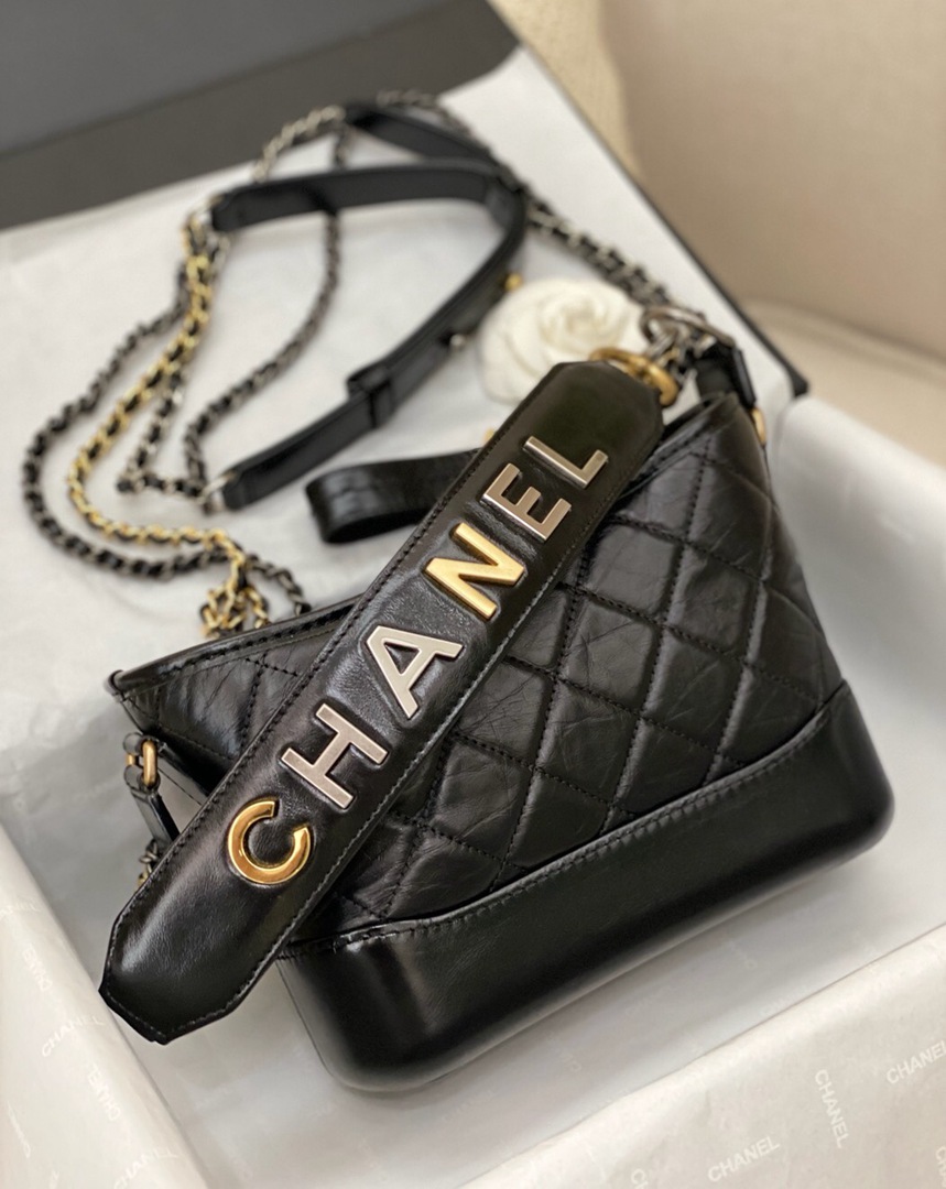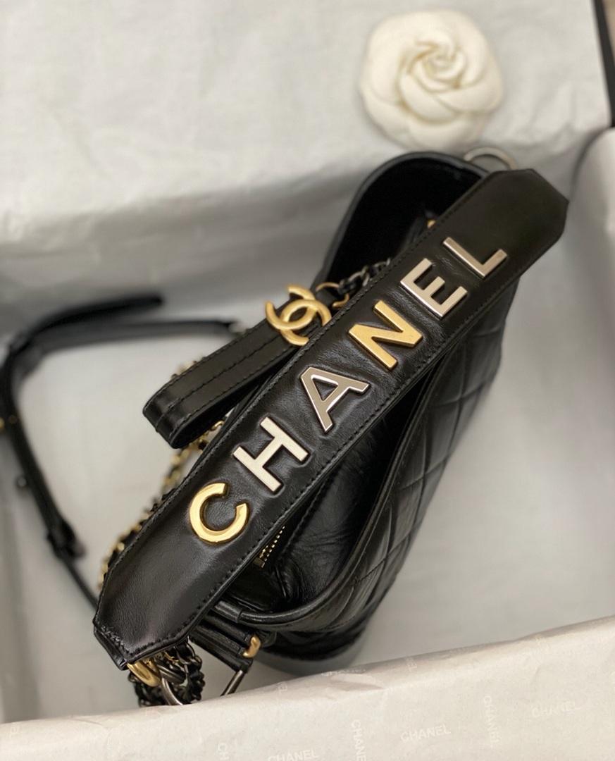 chanel gabrielle hobo bag black aged calfskin gold hardware small