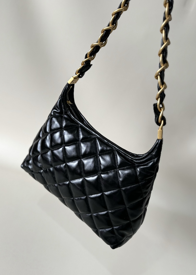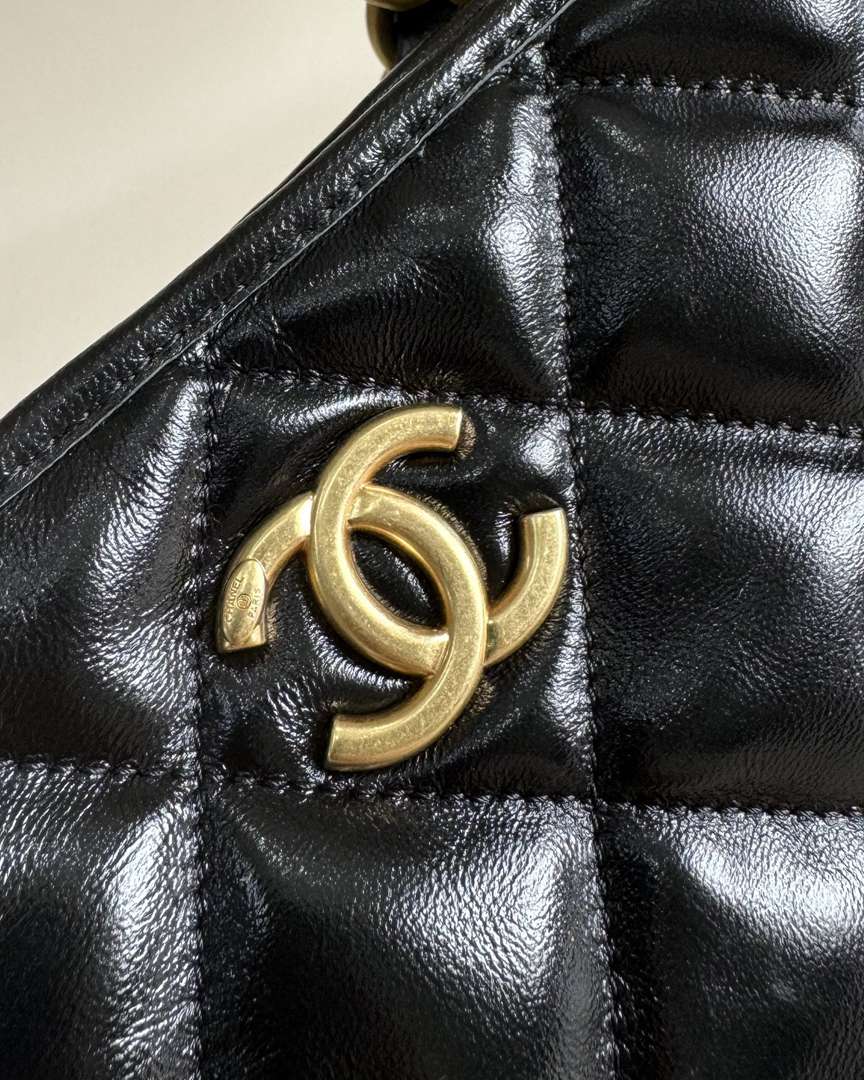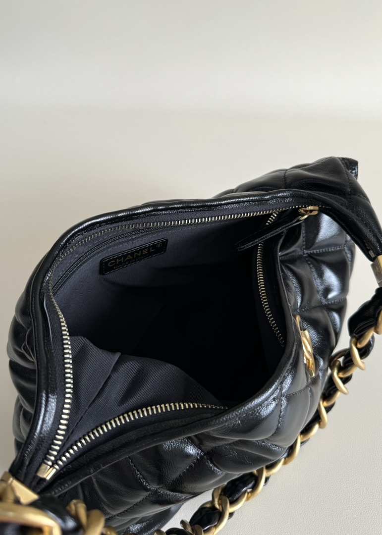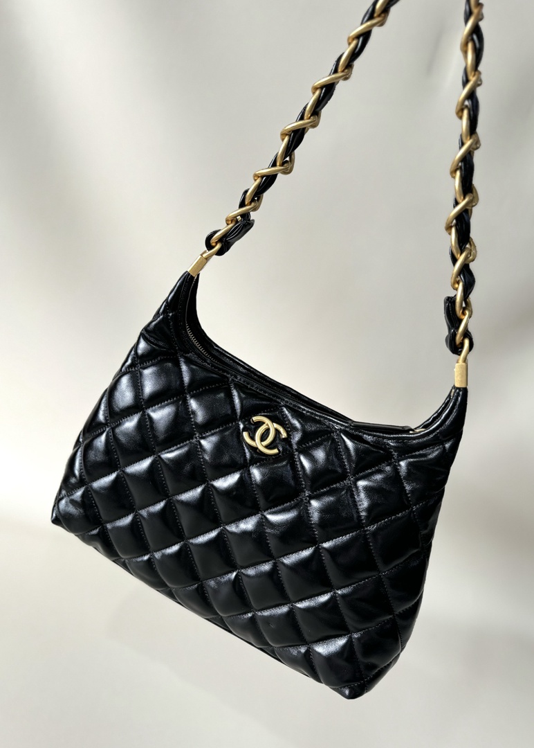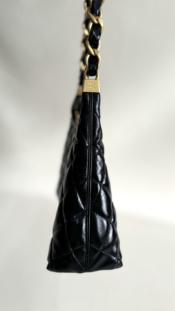 chanel 24A hobo bag black shiny lambskin gold hardware large