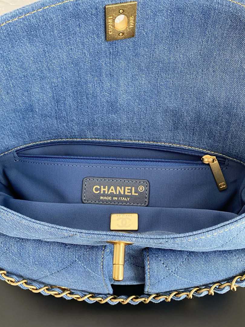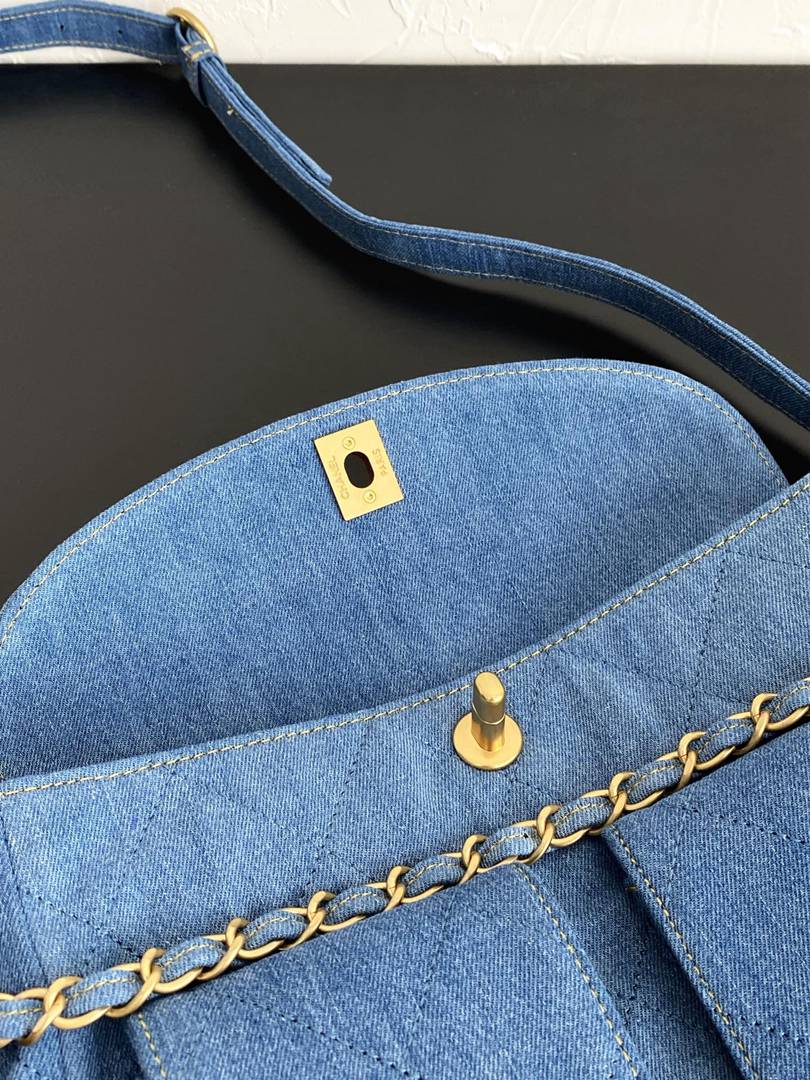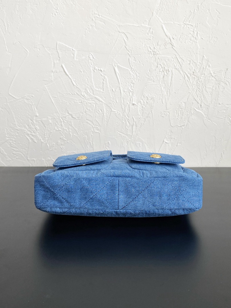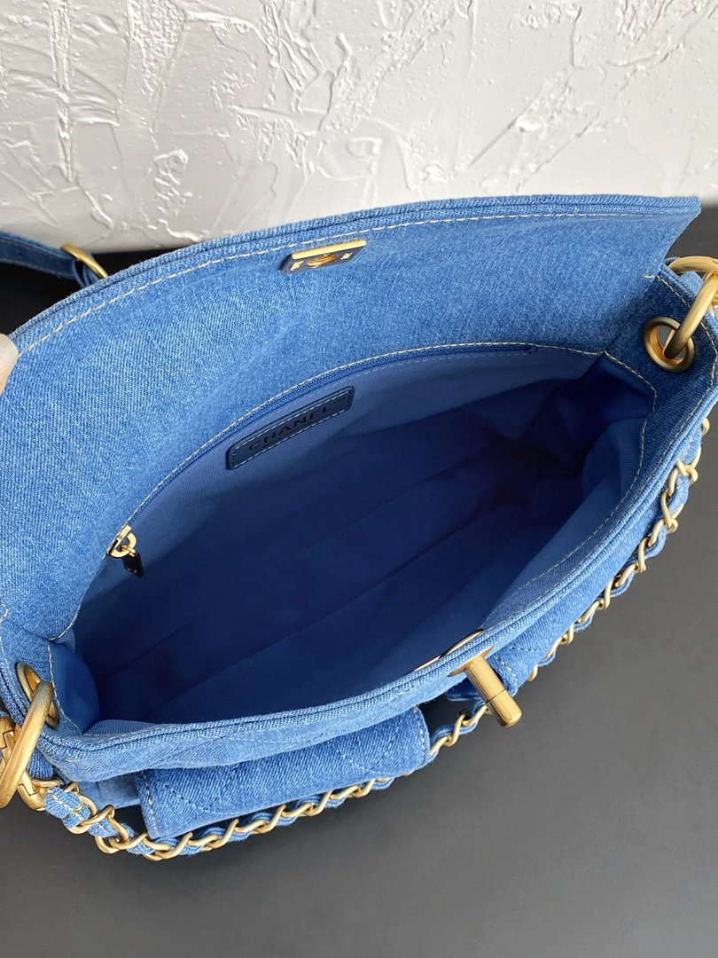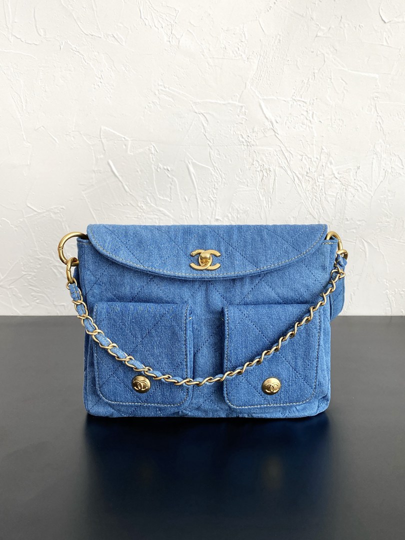 chanel 25p Double Pocket hobo bag blue Denim Quilted gold hardware