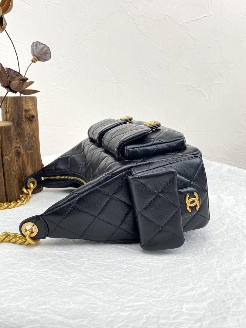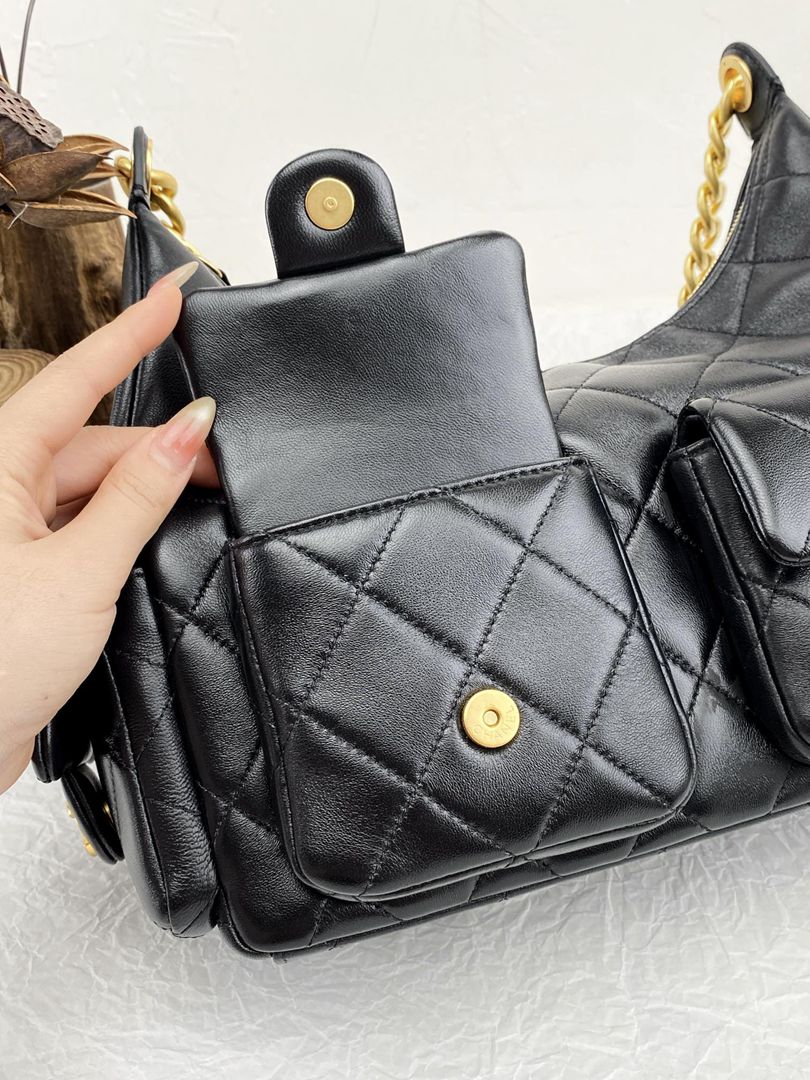 chanel 25c hobo bag black shiny lambskin gold hardware large