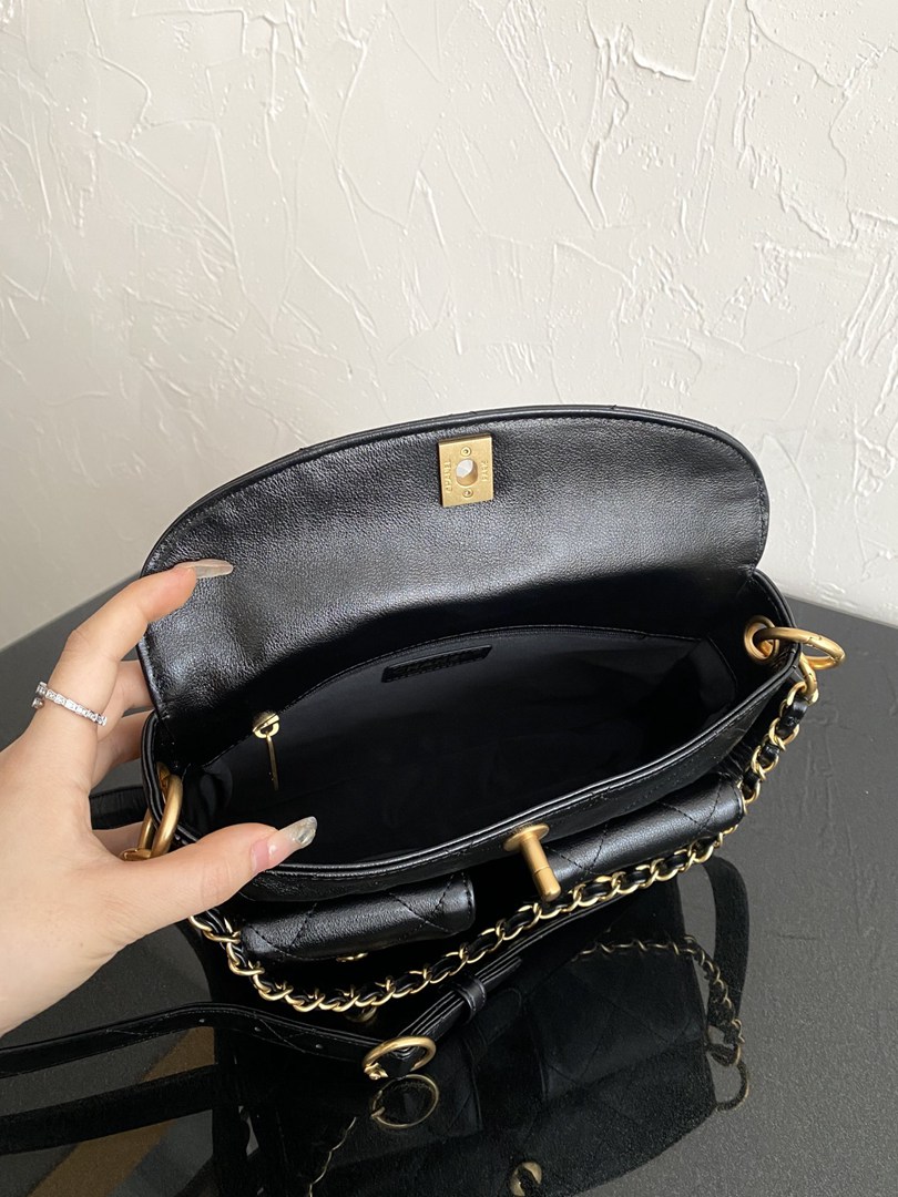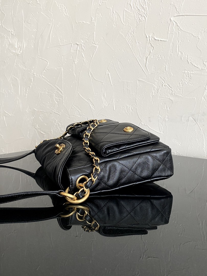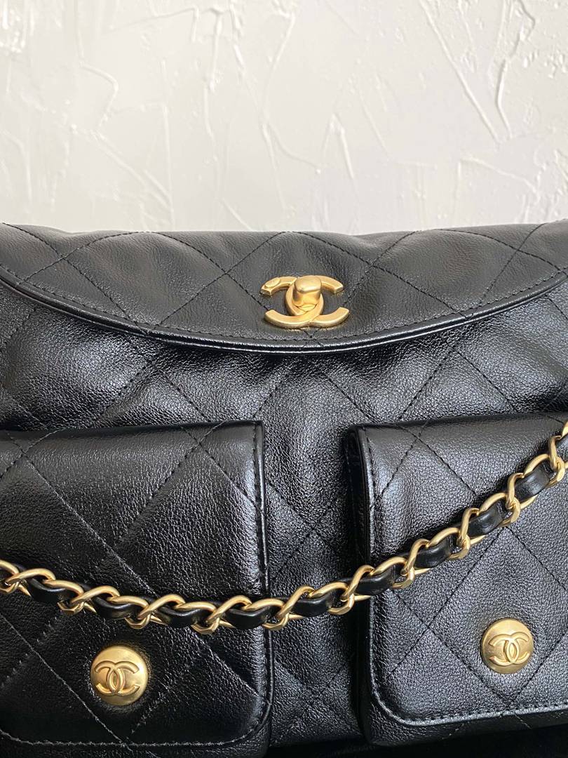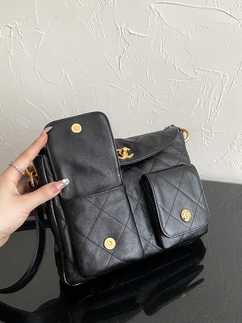 chanel 24p Double Pocket hobo bag black shiny calfskin gold hardware small