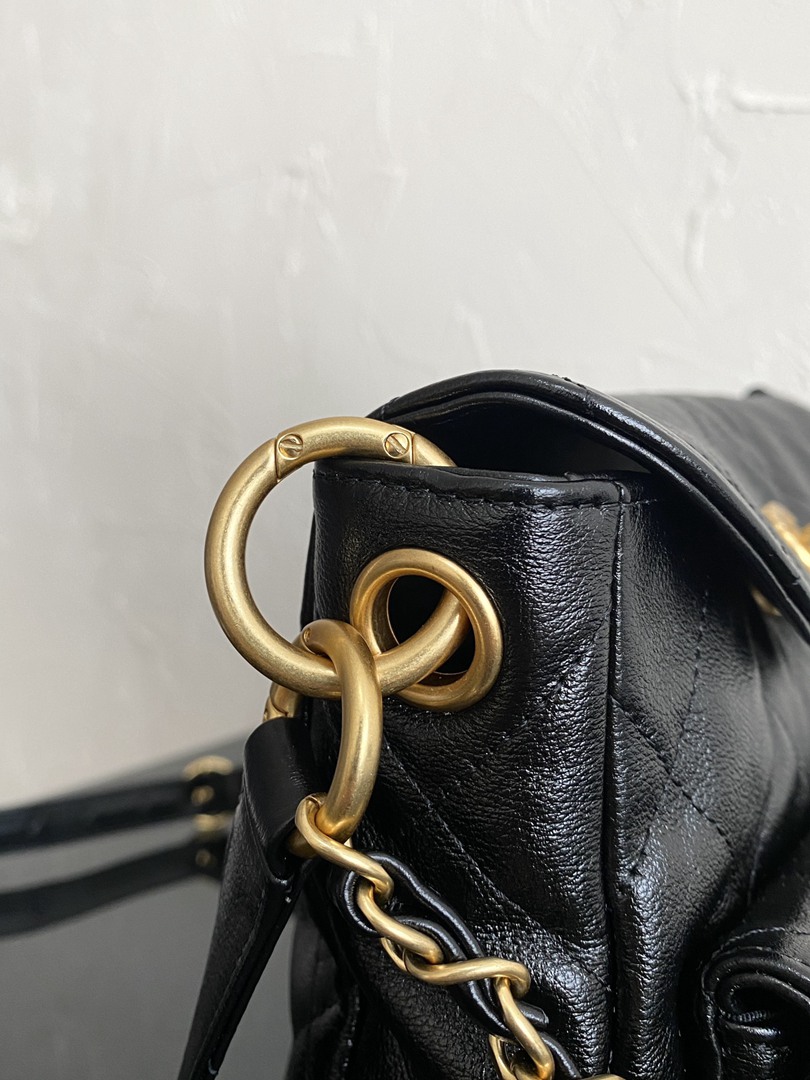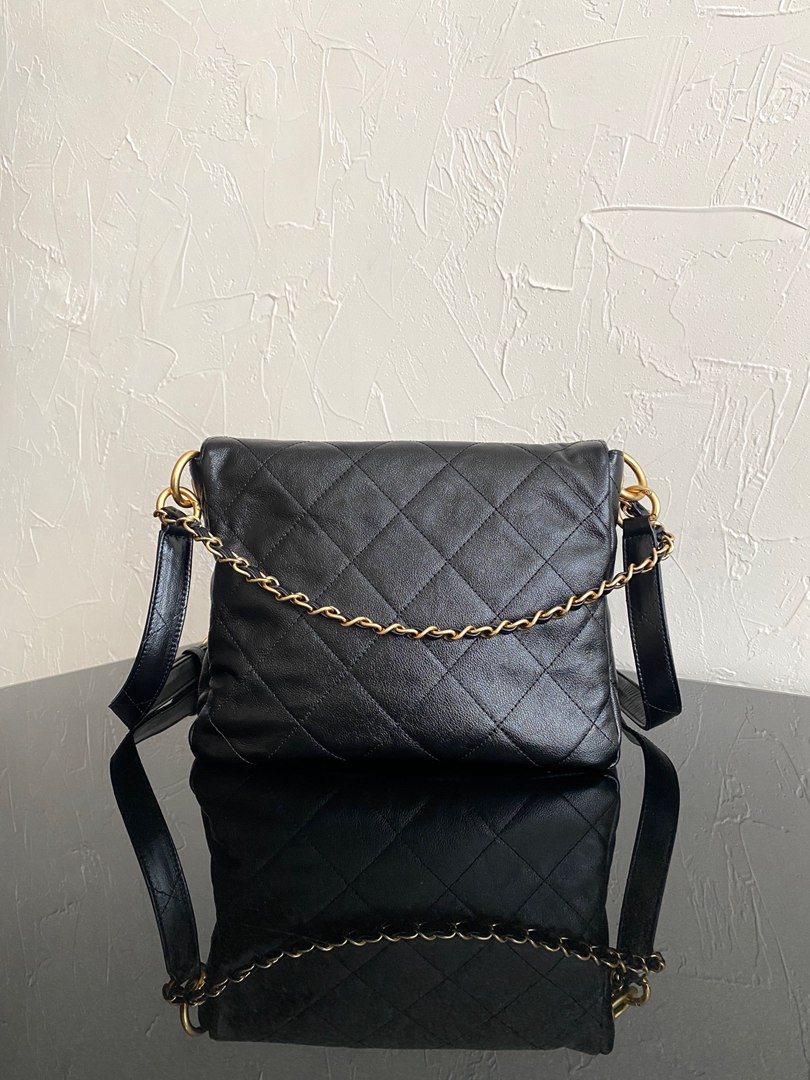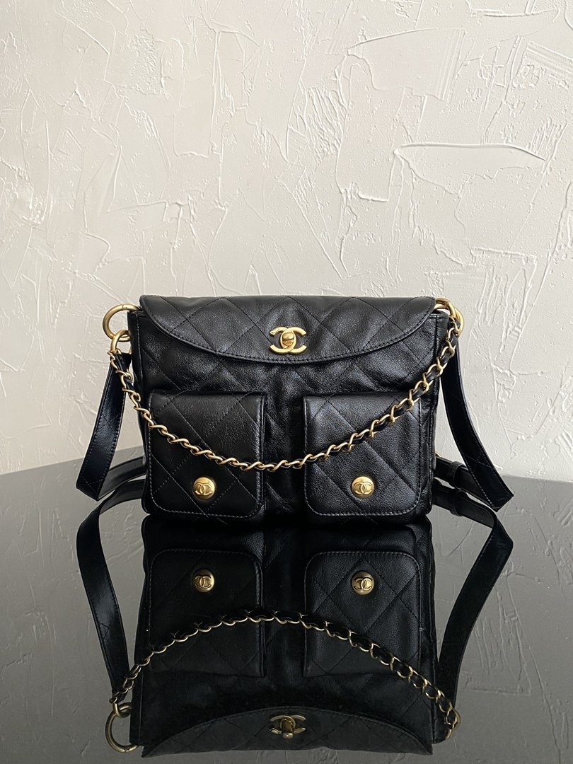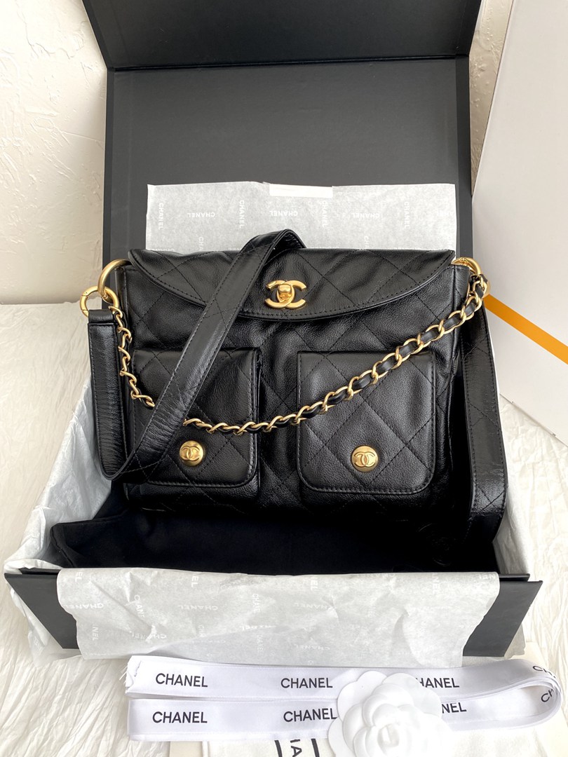 chanel 24p Double Pocket hobo bag black shiny calfskin gold hardware small