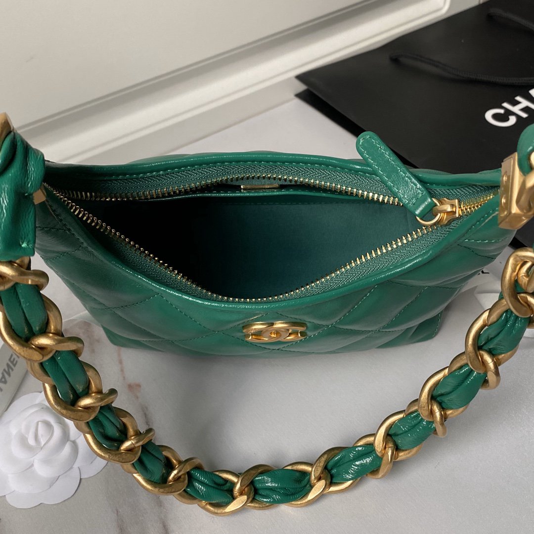 chanel 24a hobo bag dark green shiny lambskin gold hardware