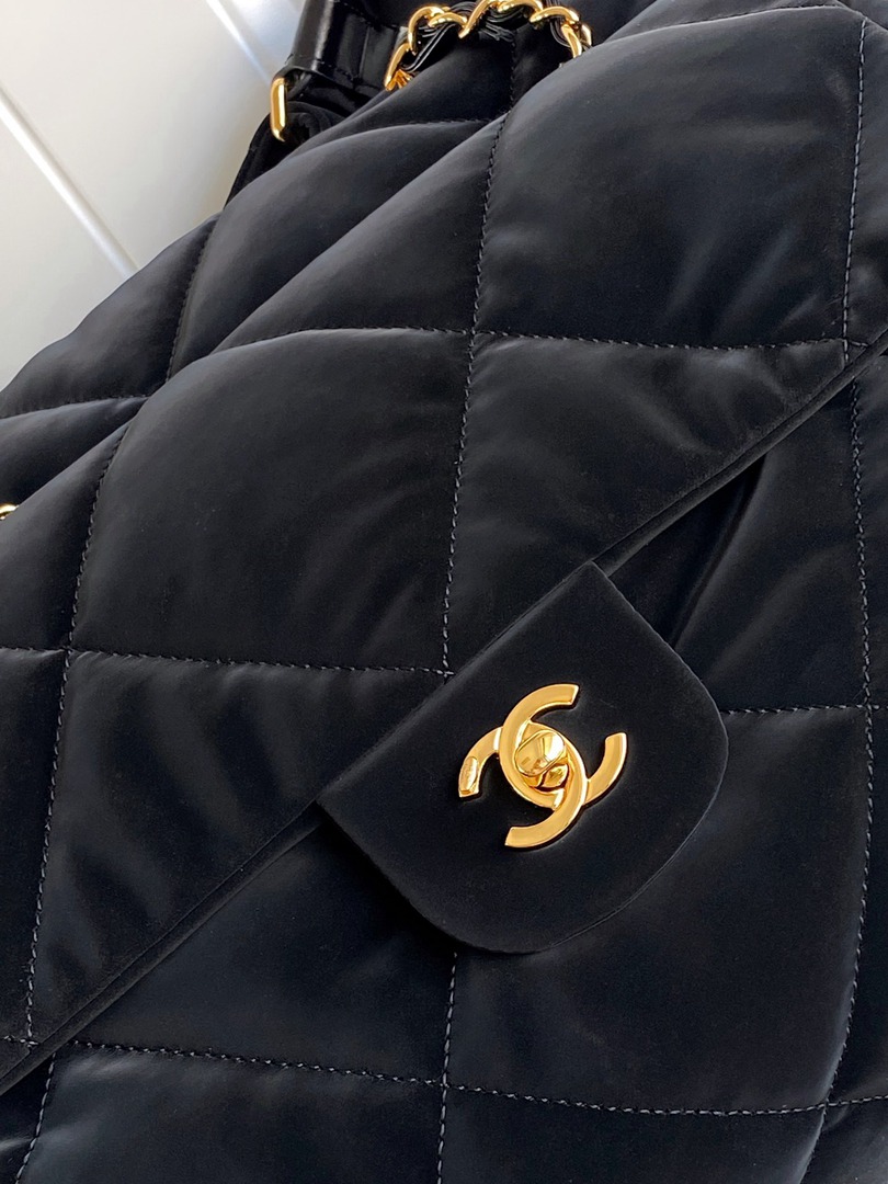 chanel 24n coconeige hobo bag black Nylon quilted gold hardware