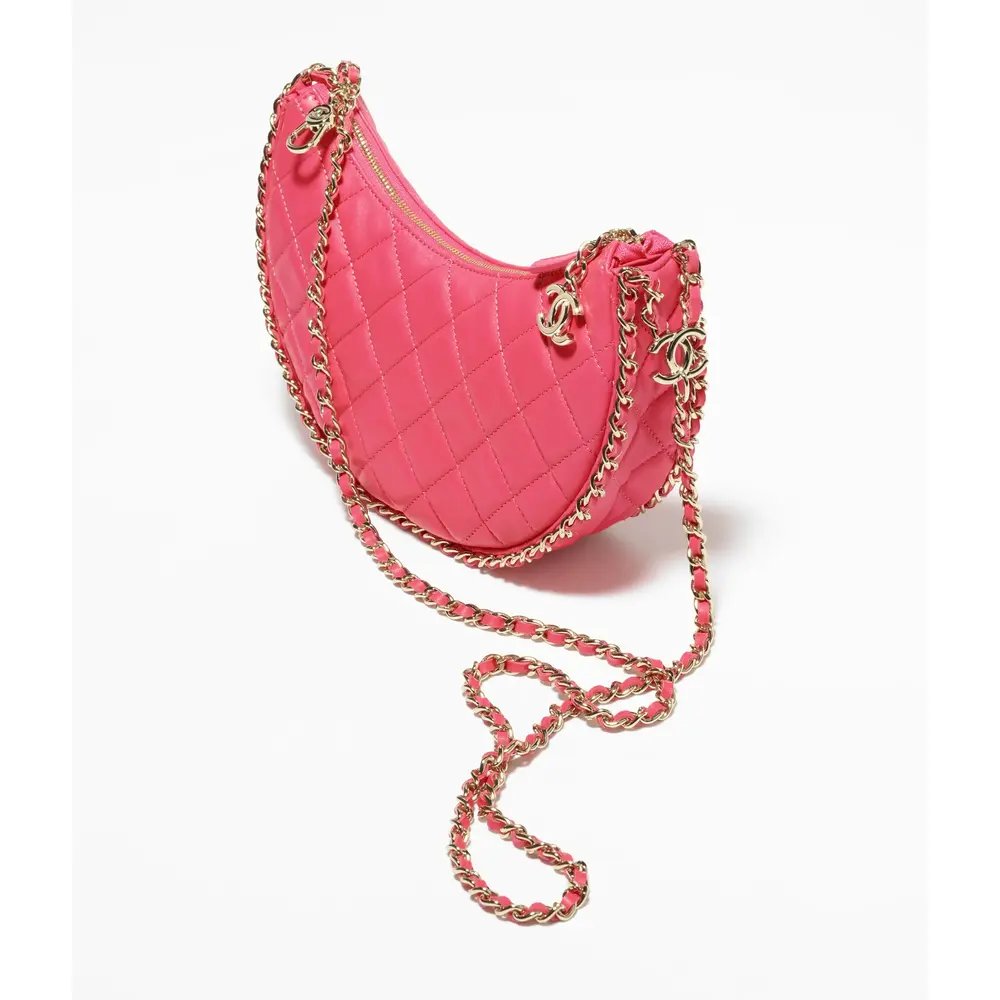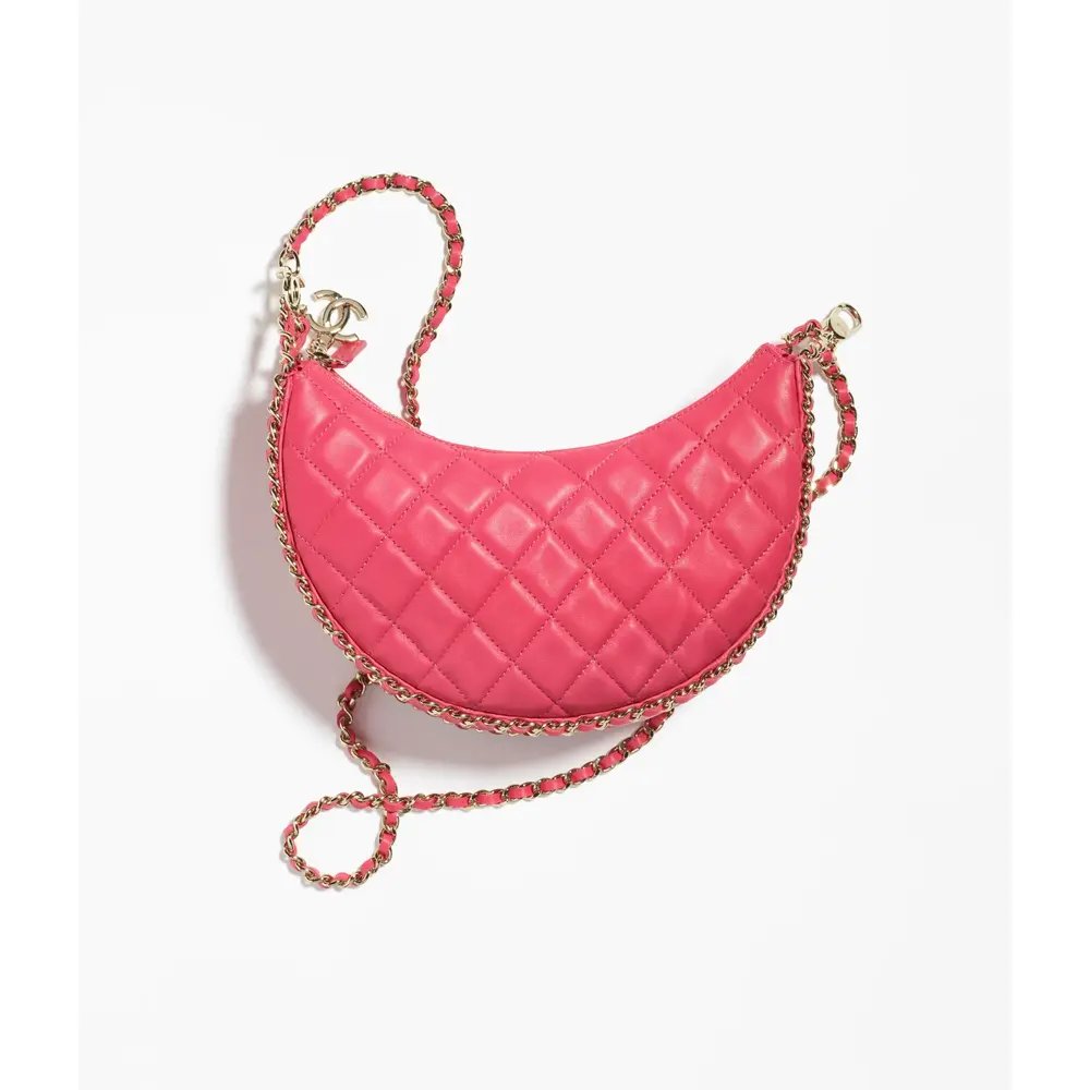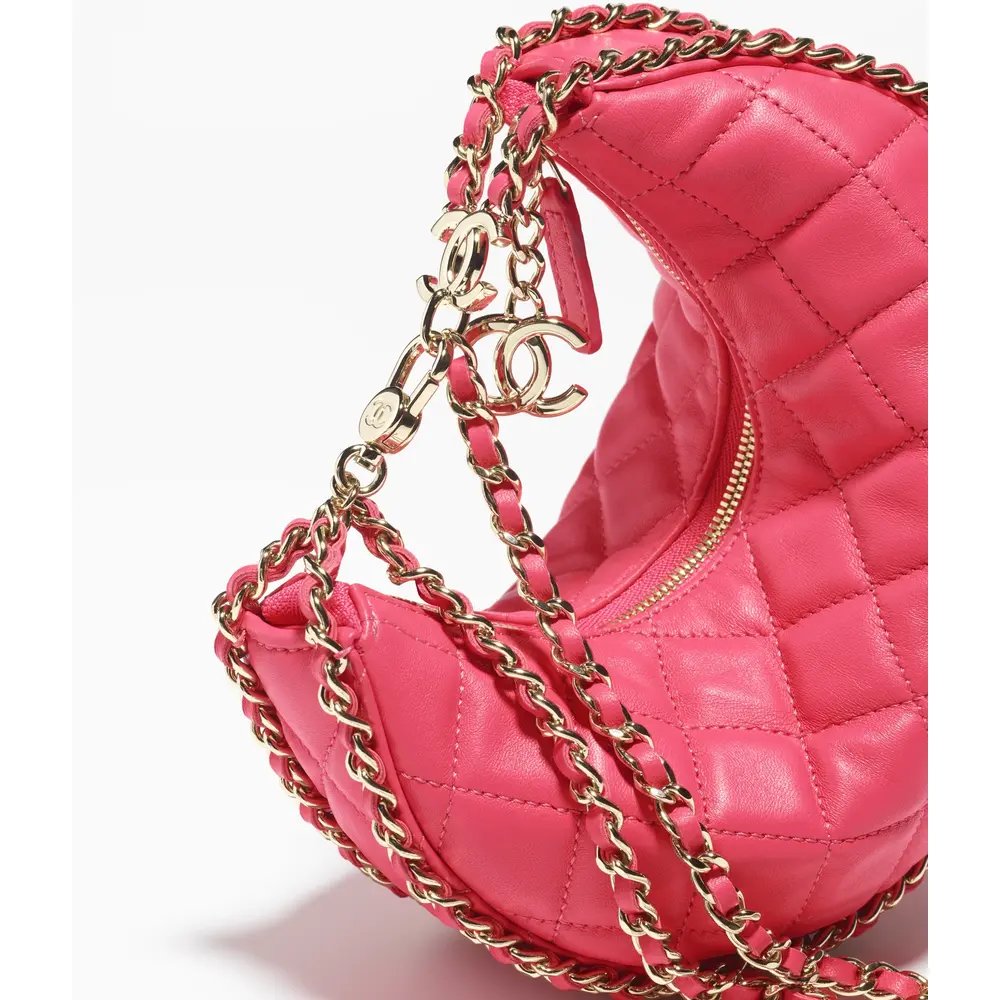 CHANEL Lambskin Quilted Small Hobo Bag Red