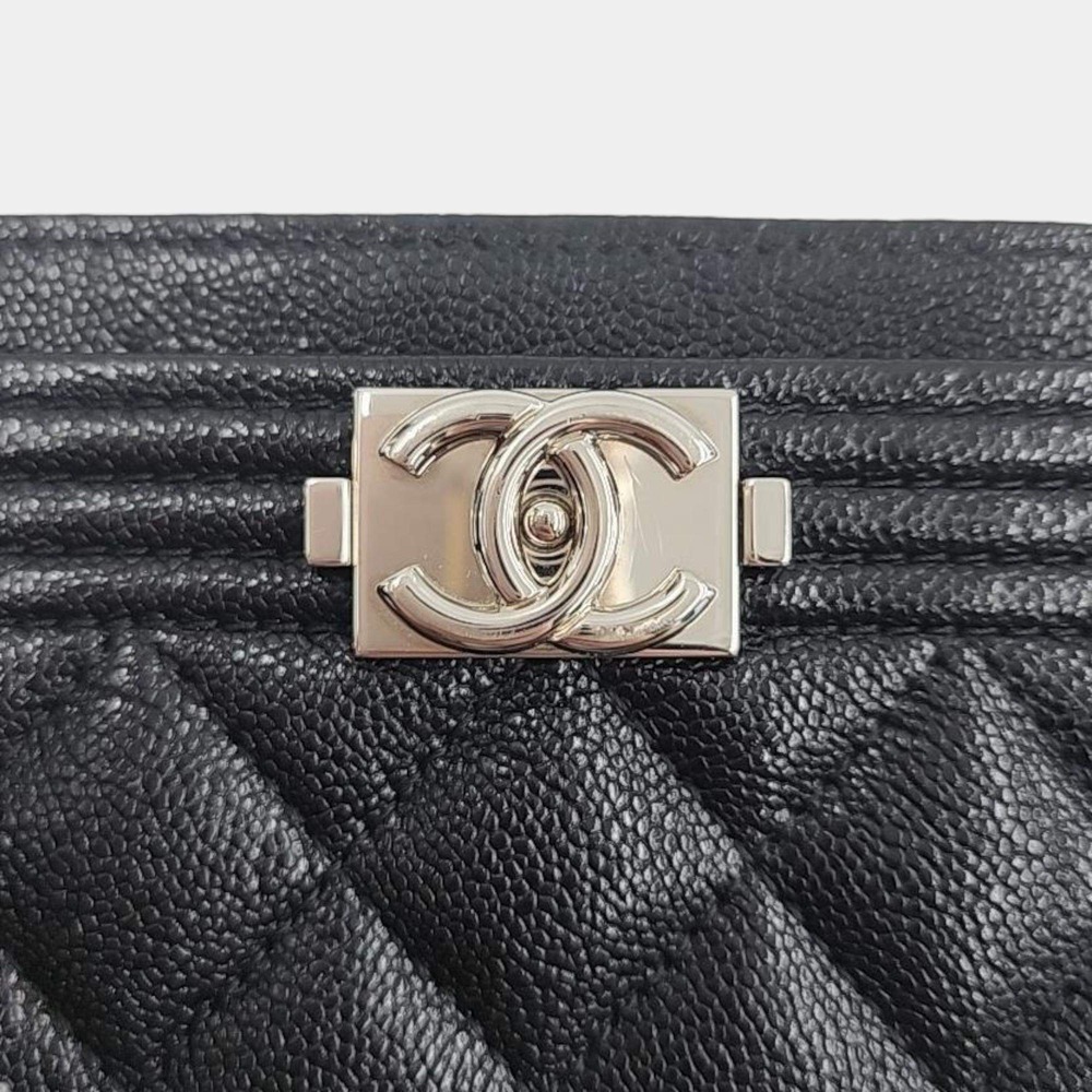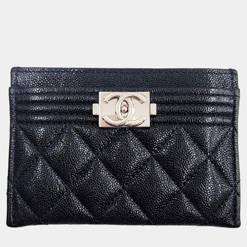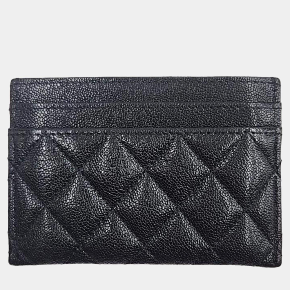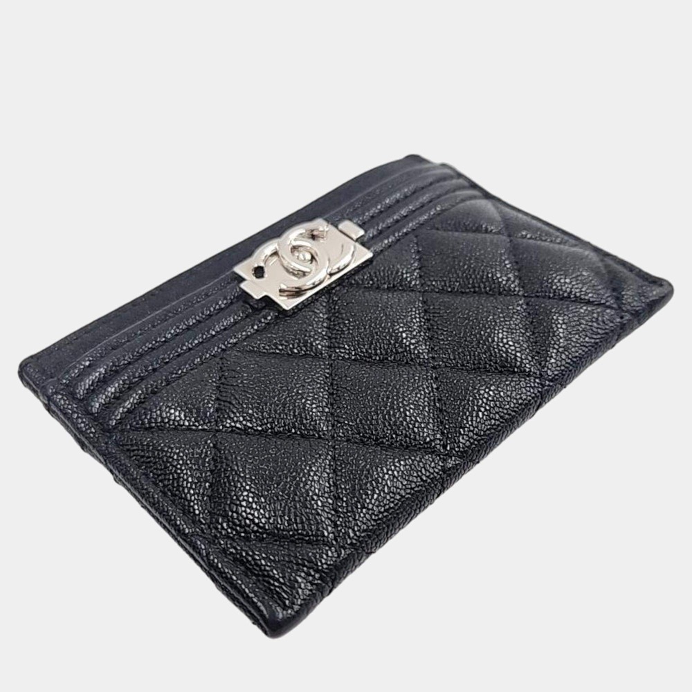 This stylish wallet is crafted of beautifully diamond quilted grained calfskin caviar leather in red with a periphery quilt. The wallet has a facing aged gold Chanel CC press lock, the 3/4 wrap around zipper opens to a compact interior of card slot panels with three compartments.