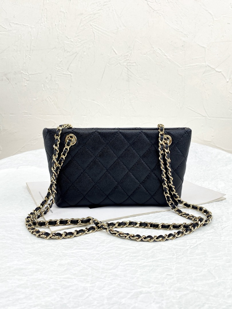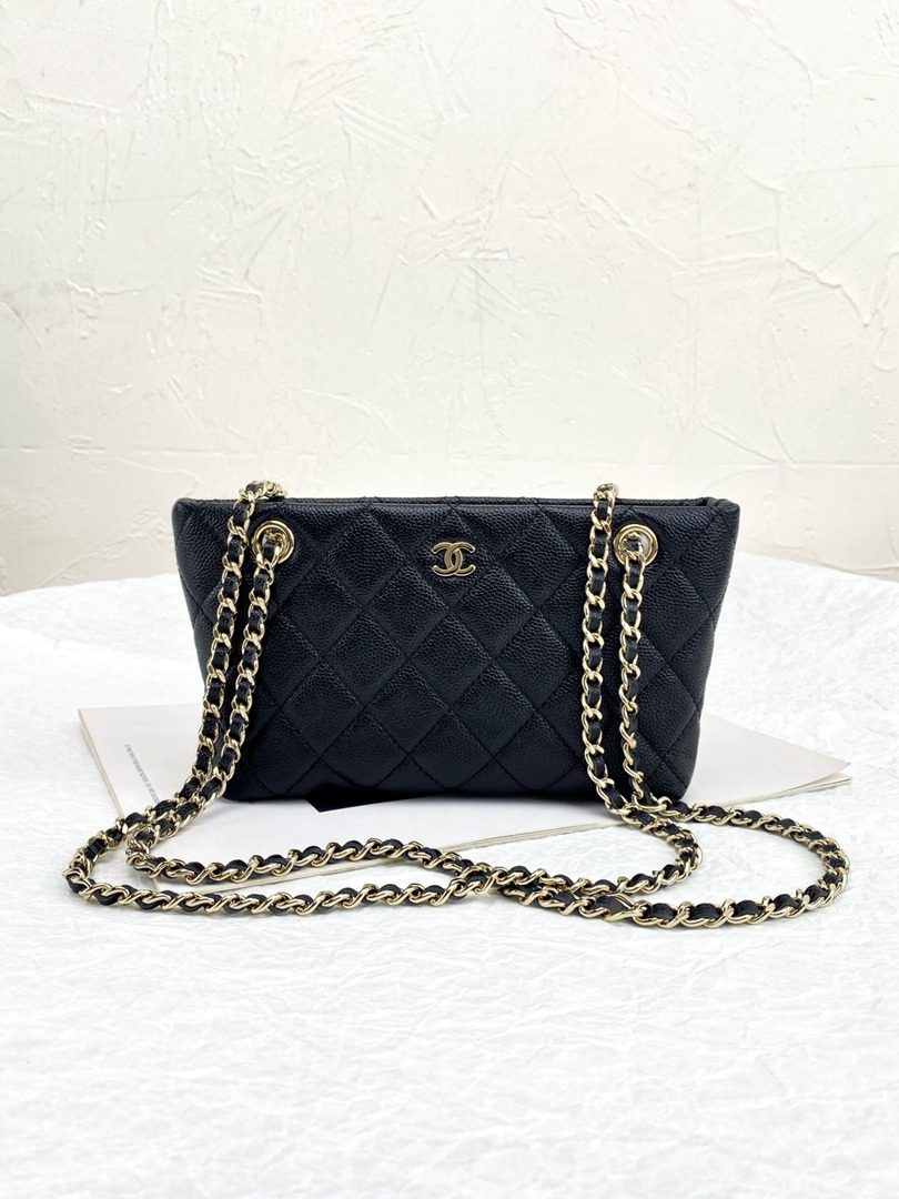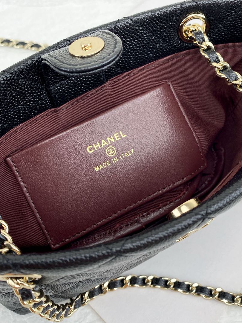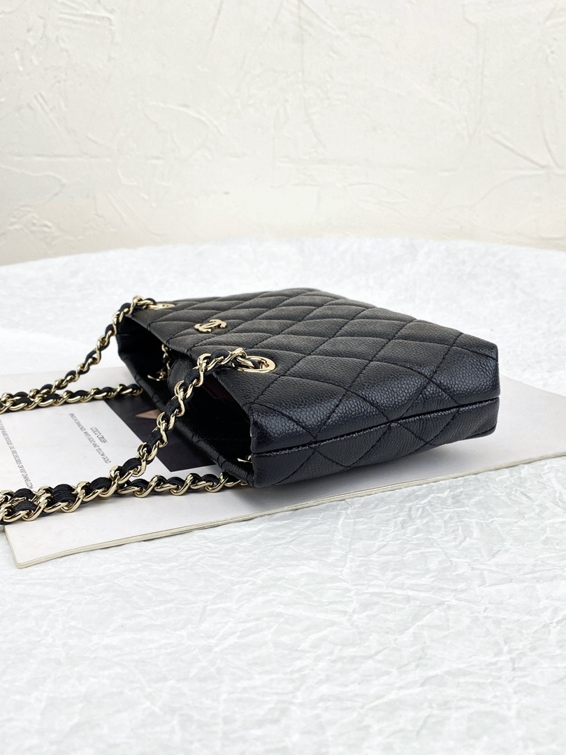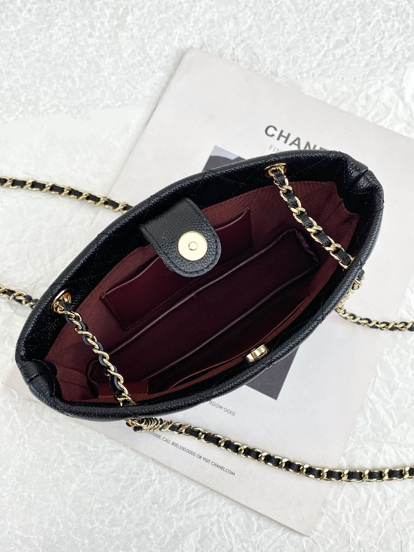 chanel 25c mini tote black Grained Calfskin gold hardware