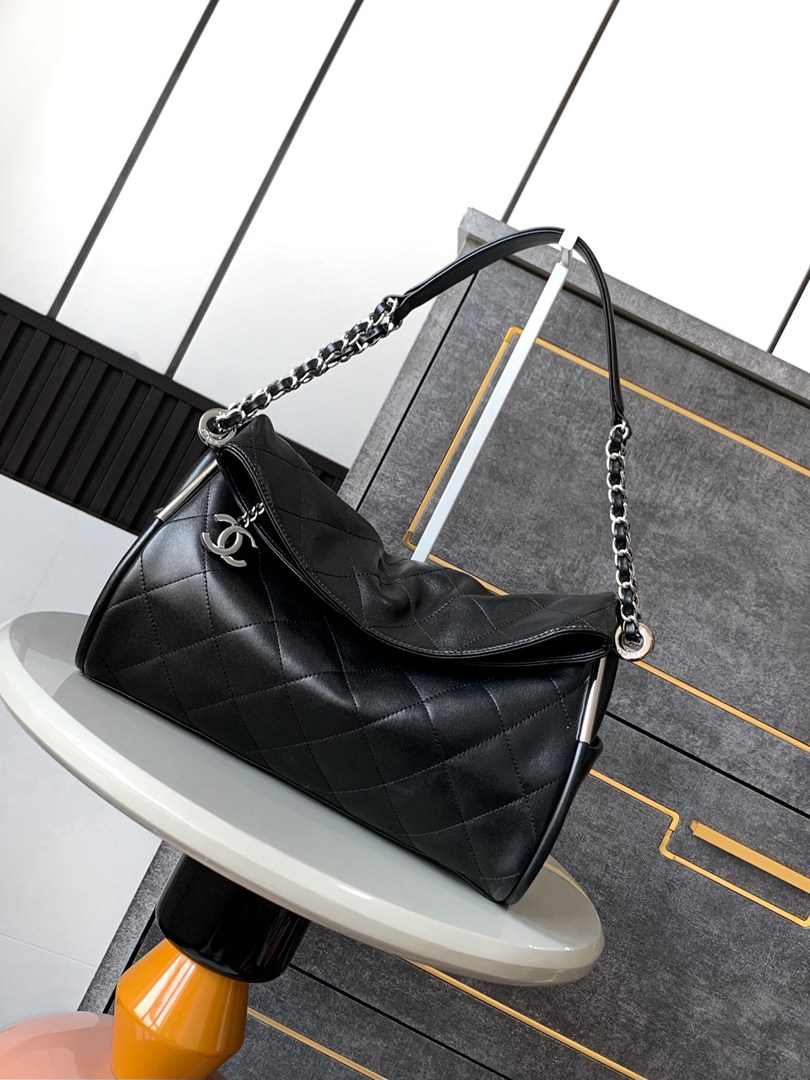 chanel tote hobo bag black Ultimate Soft shiny Lambskin sliver hardware small