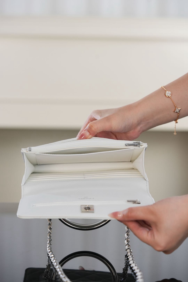 chanel 25p handle woc white Grained Calfskin?sliver hardware