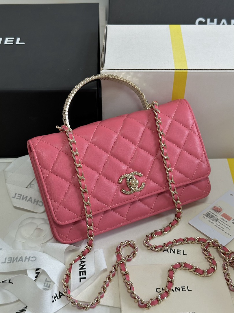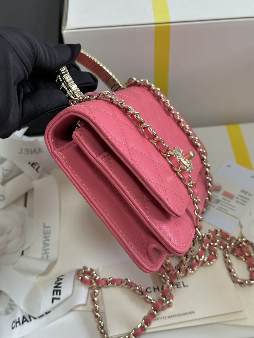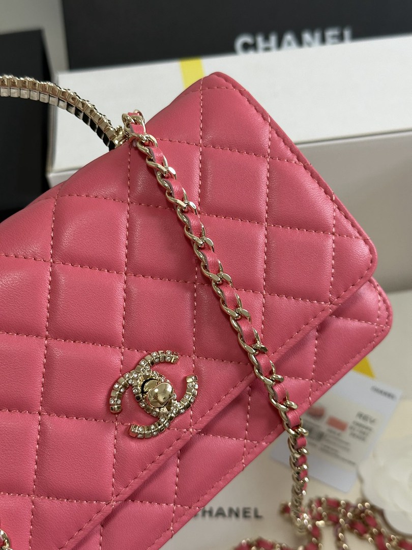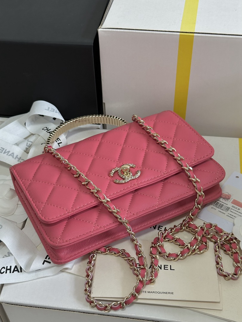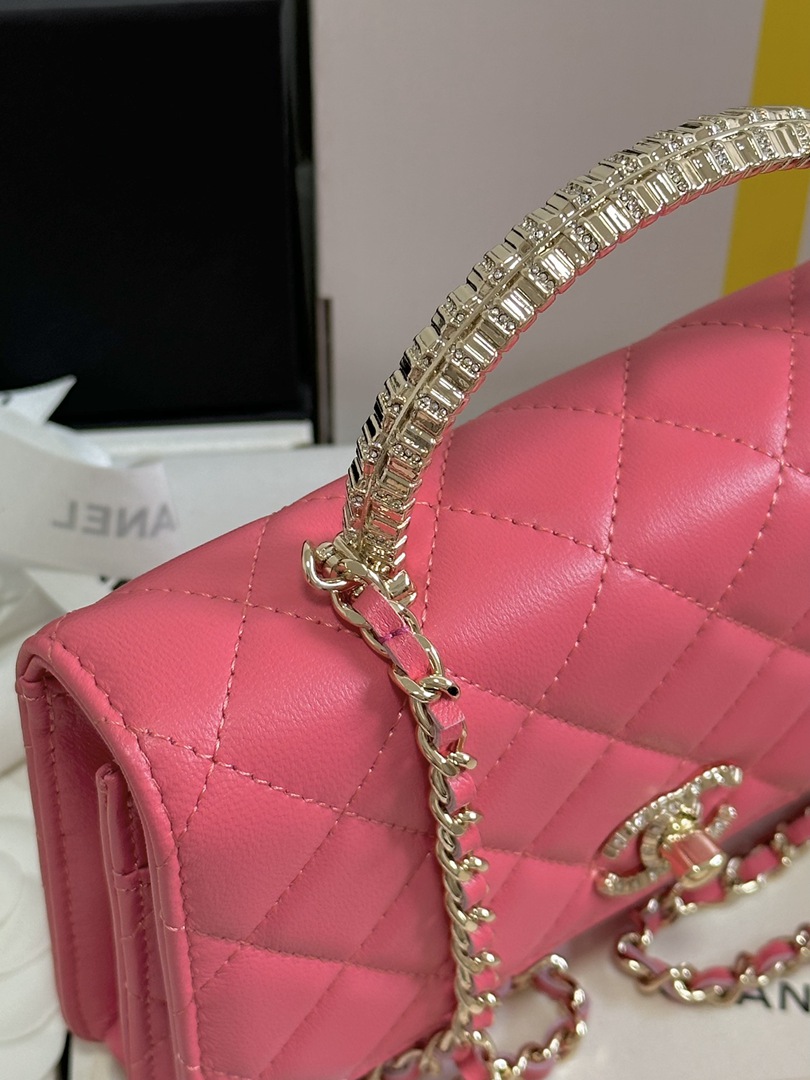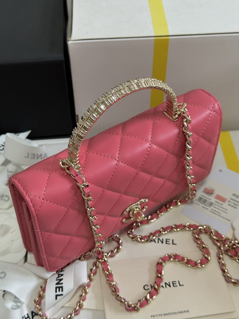chanel 24b rhinestone handle woc Rose red shiny lambskin gold hardware