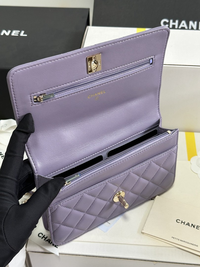chanel 24a rhinestone handle woc purple shiny lambskin gold hardware