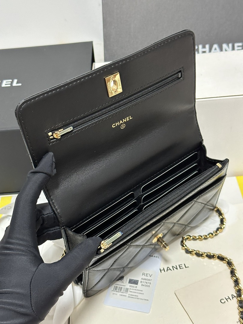 chanel 24b twist handle woc black shiny lambskin gold hardware