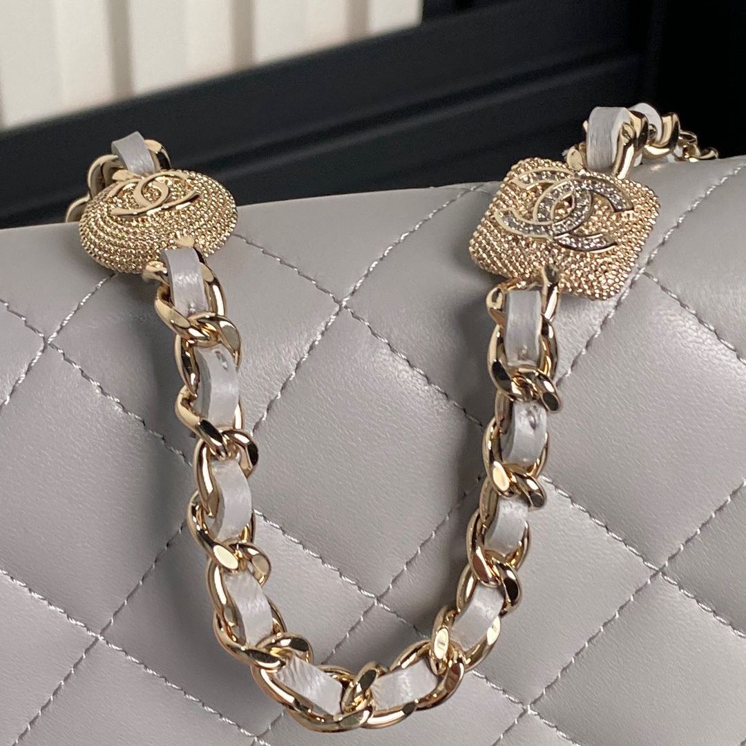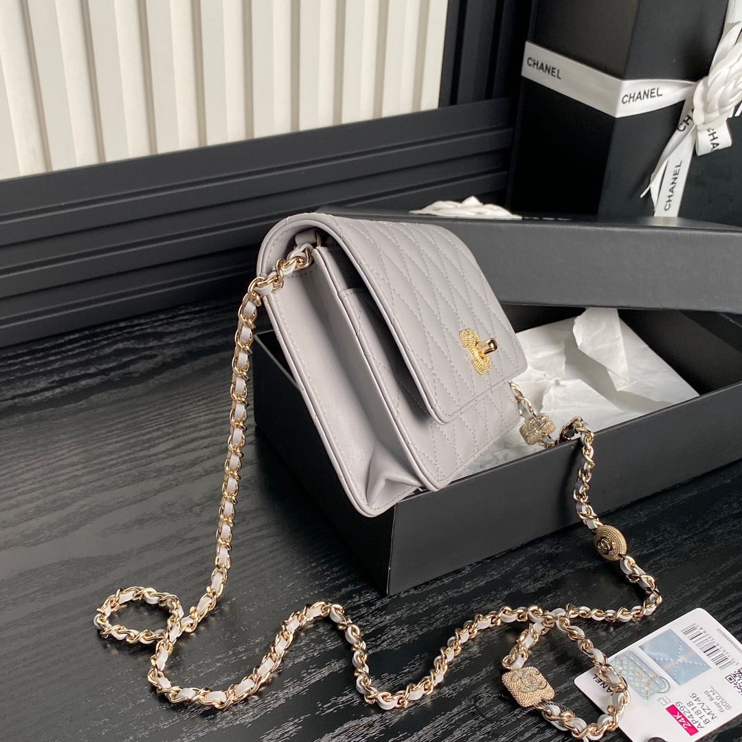 chanel 24k Embossed rhinestone chain woc white shiny lambskin gold hardware