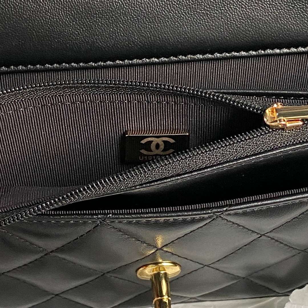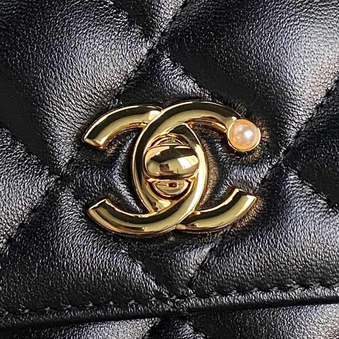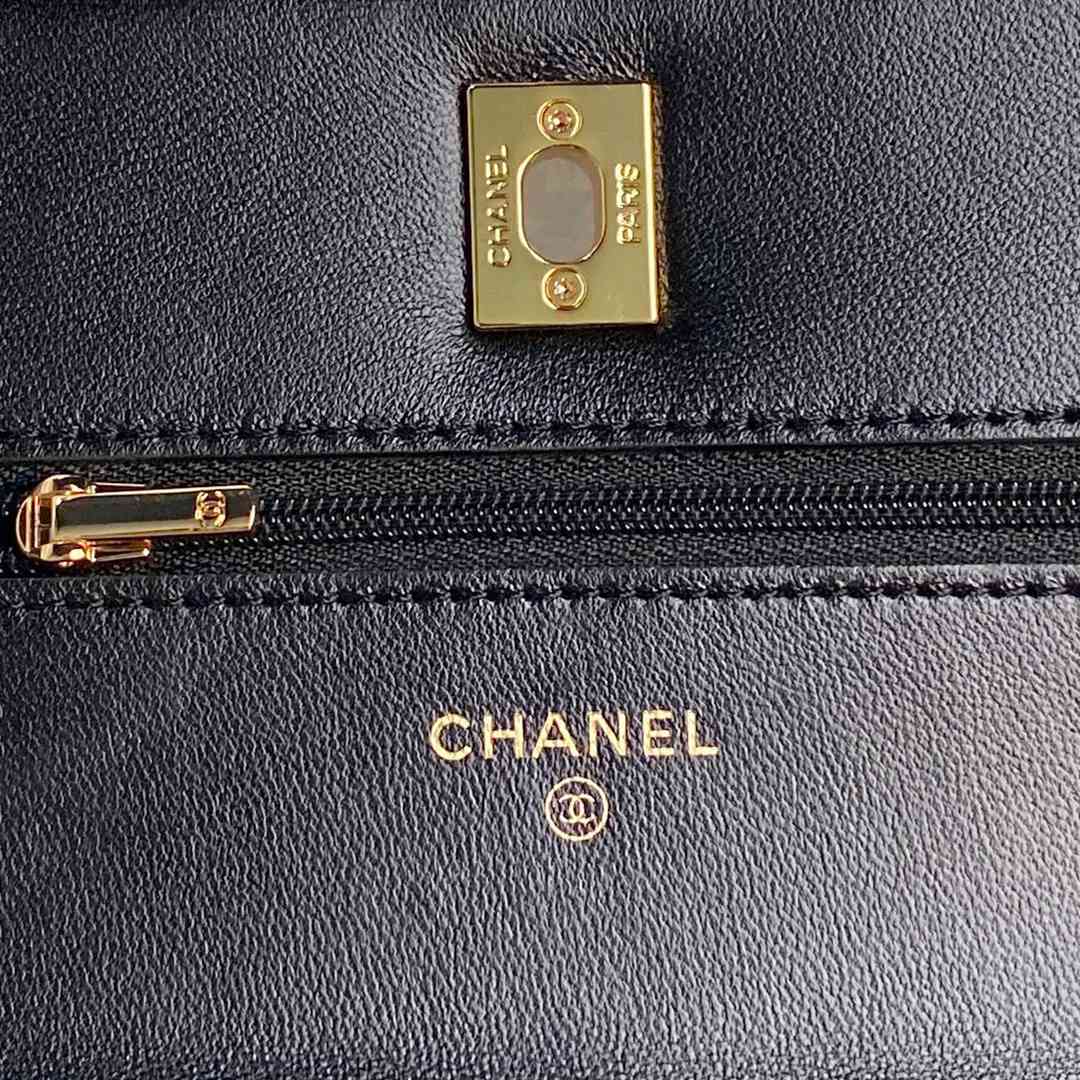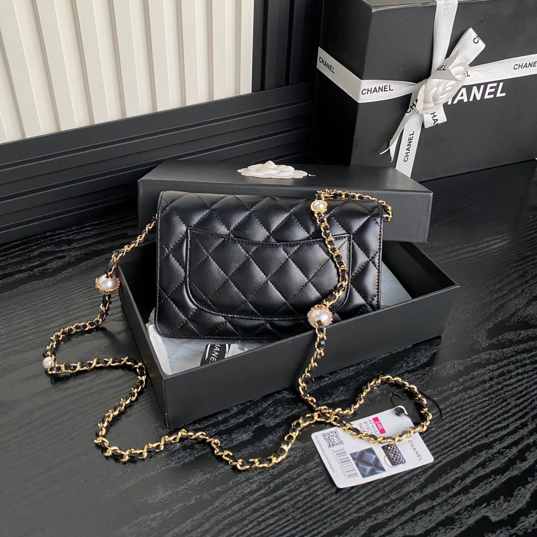 chanel 24k Pearl chain woc black shiny lambskin gold hardware