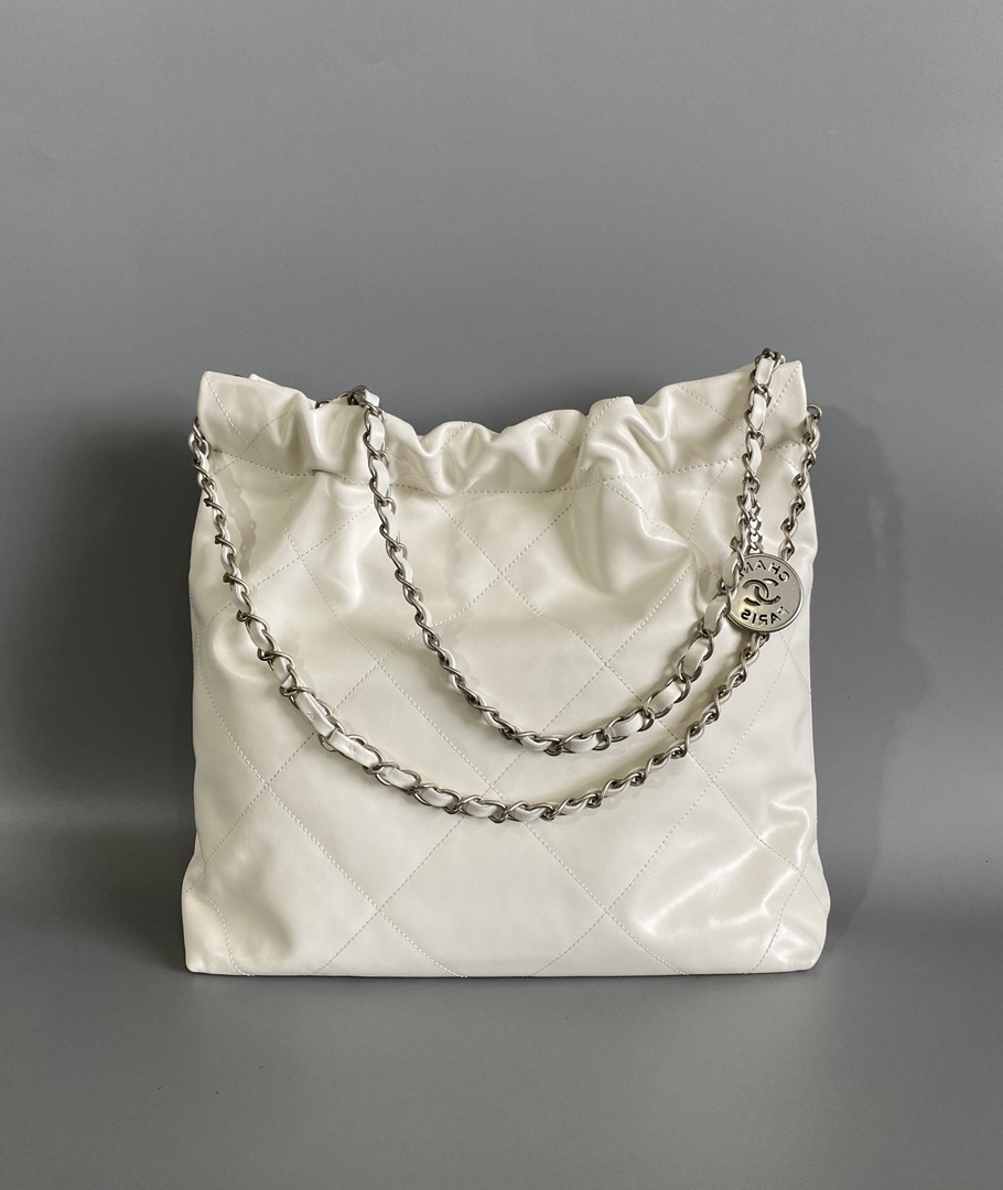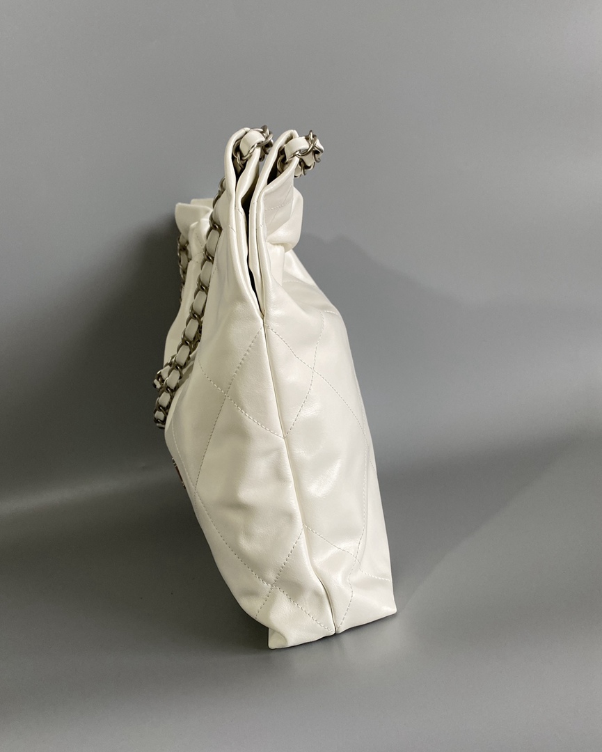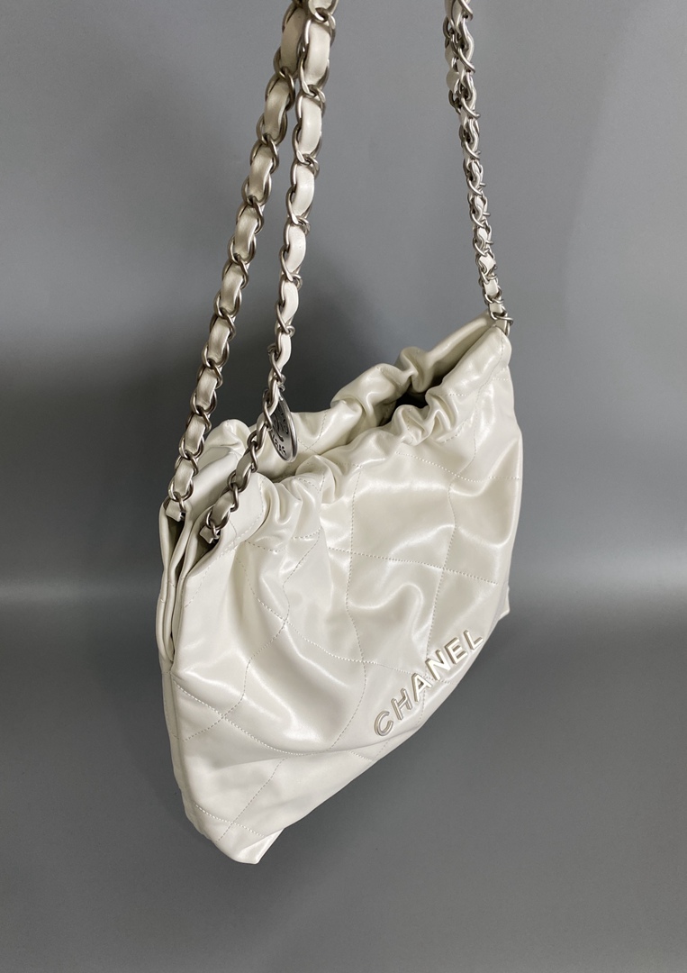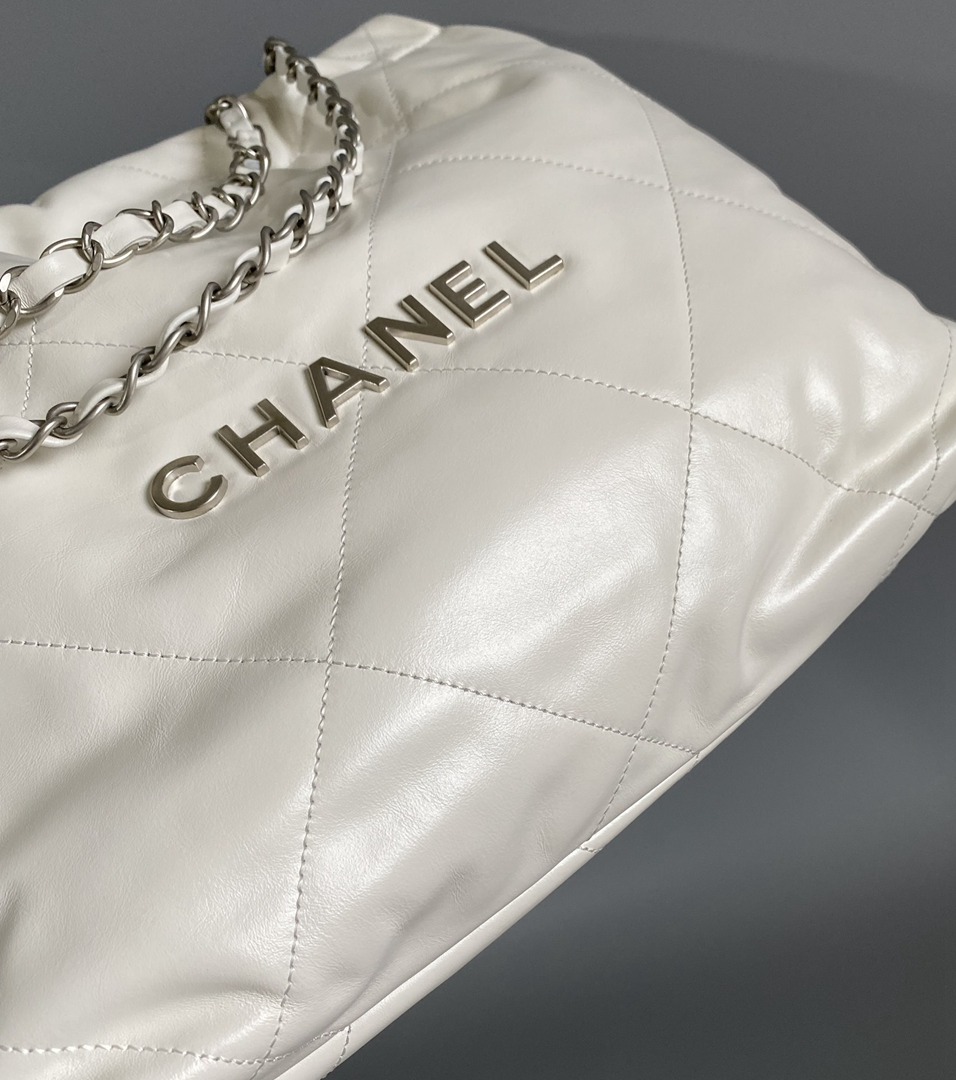 chanel 22 bag white shiny Calfskin sliver hardware medium