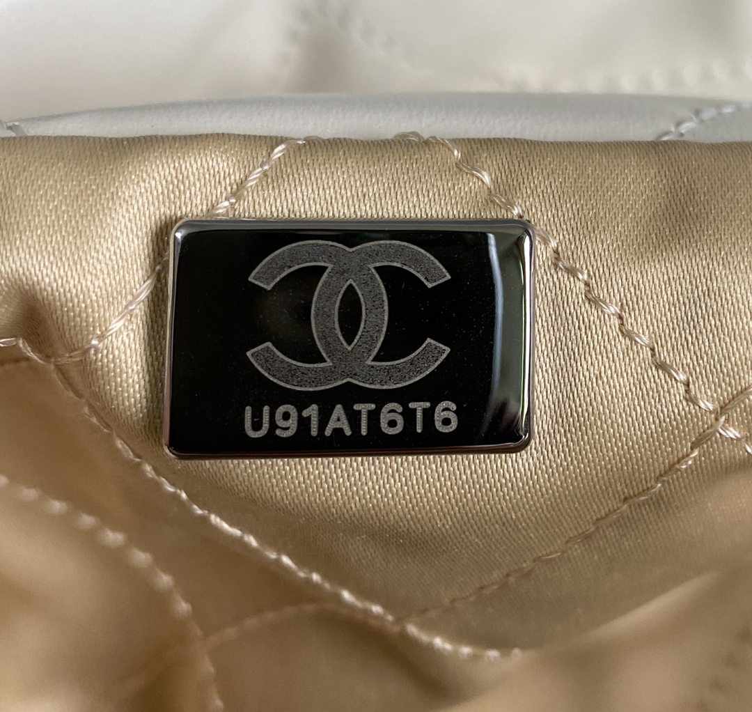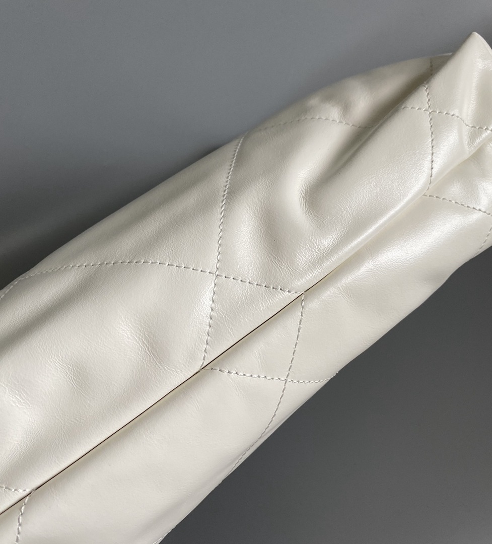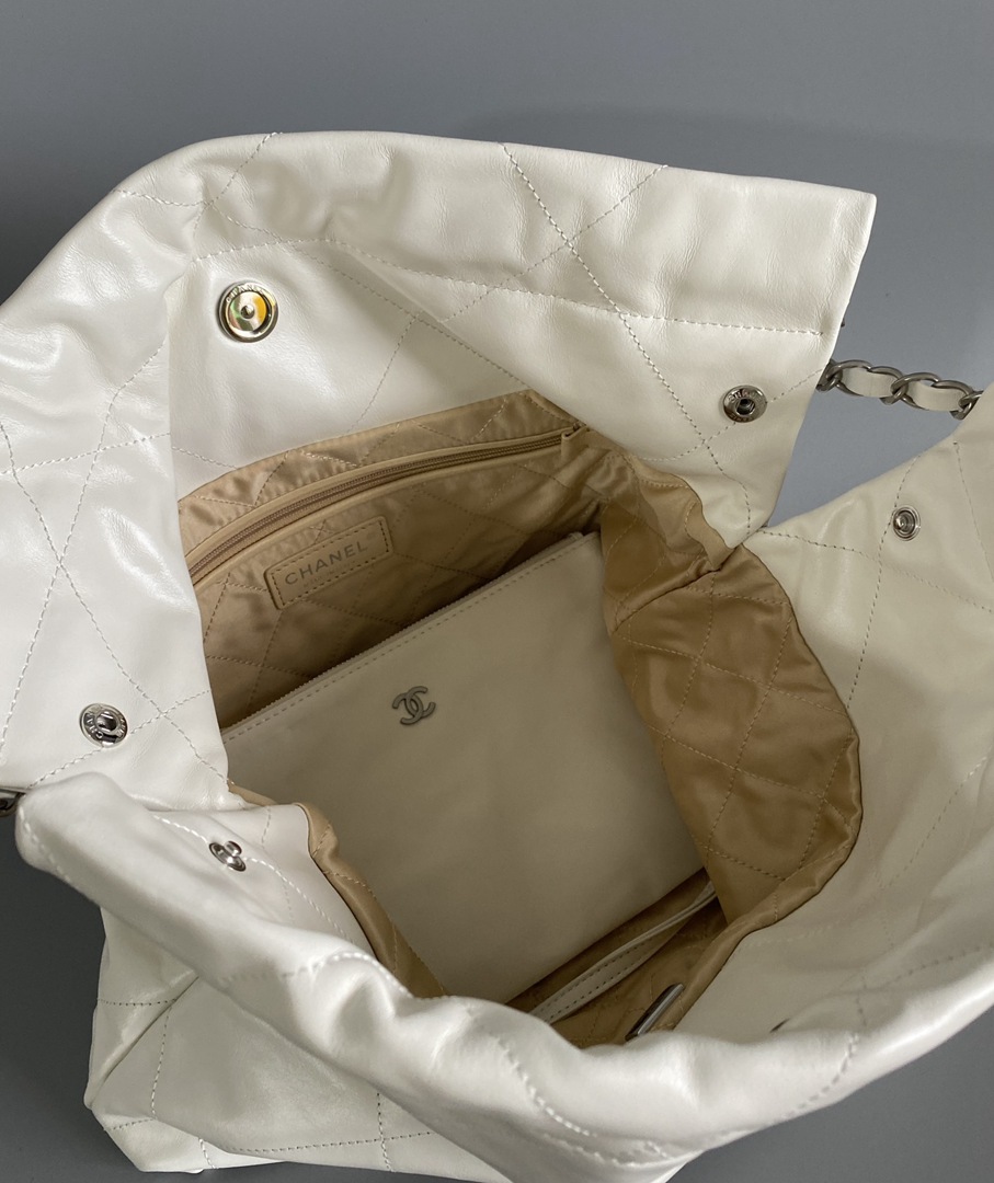 chanel 22 bag white shiny Calfskin sliver hardware medium