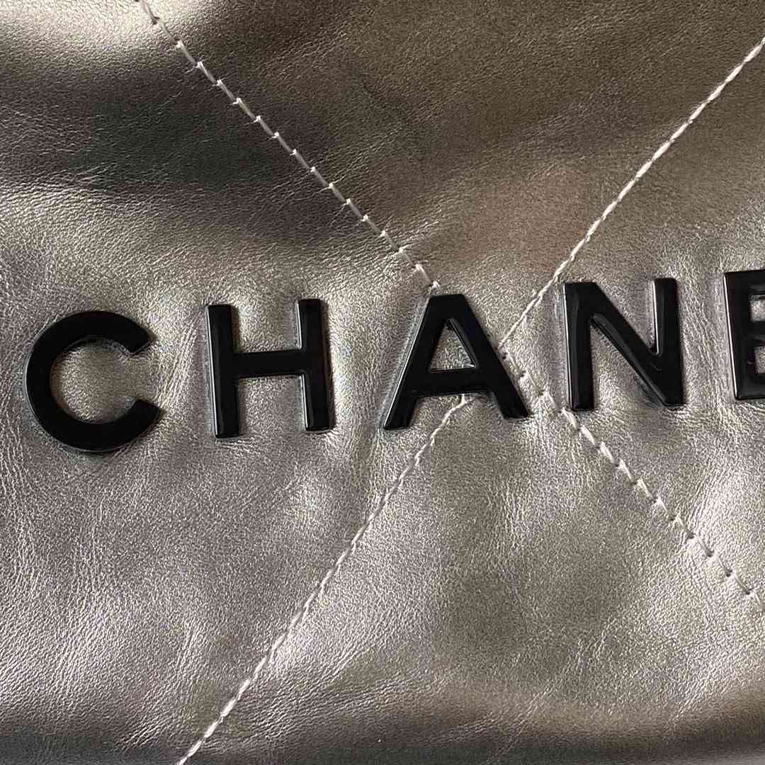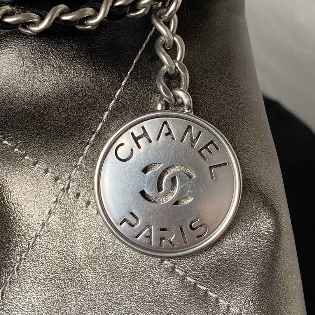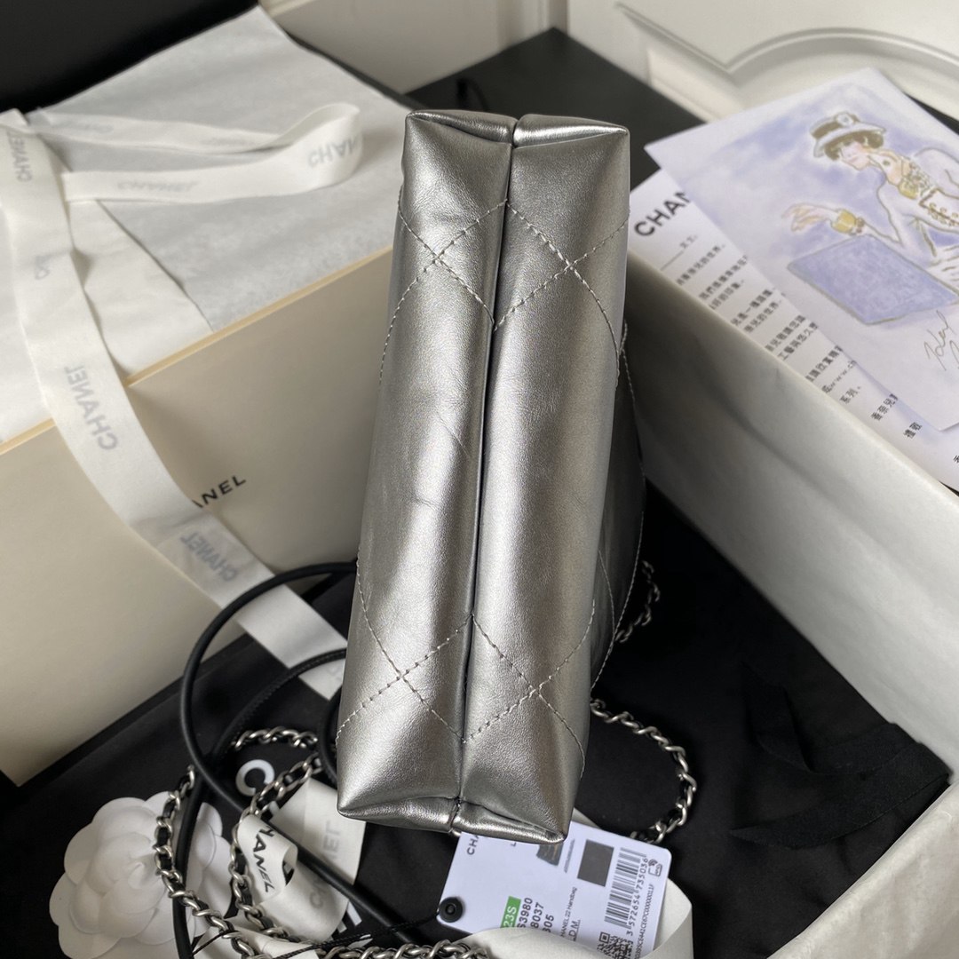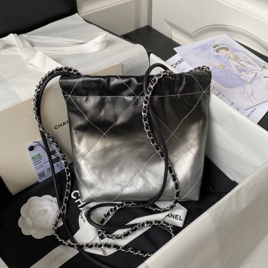 chanel 22 bag black silver gradient shiny Calfskin silver hardware mini
