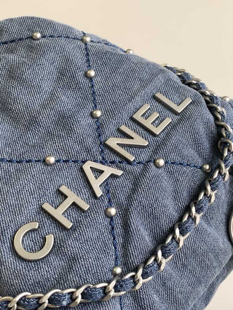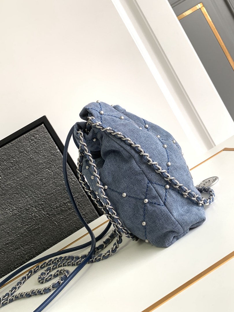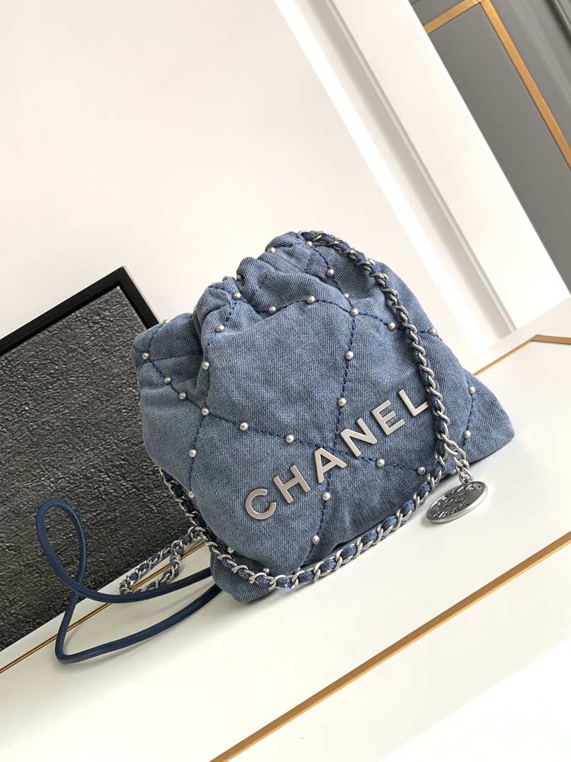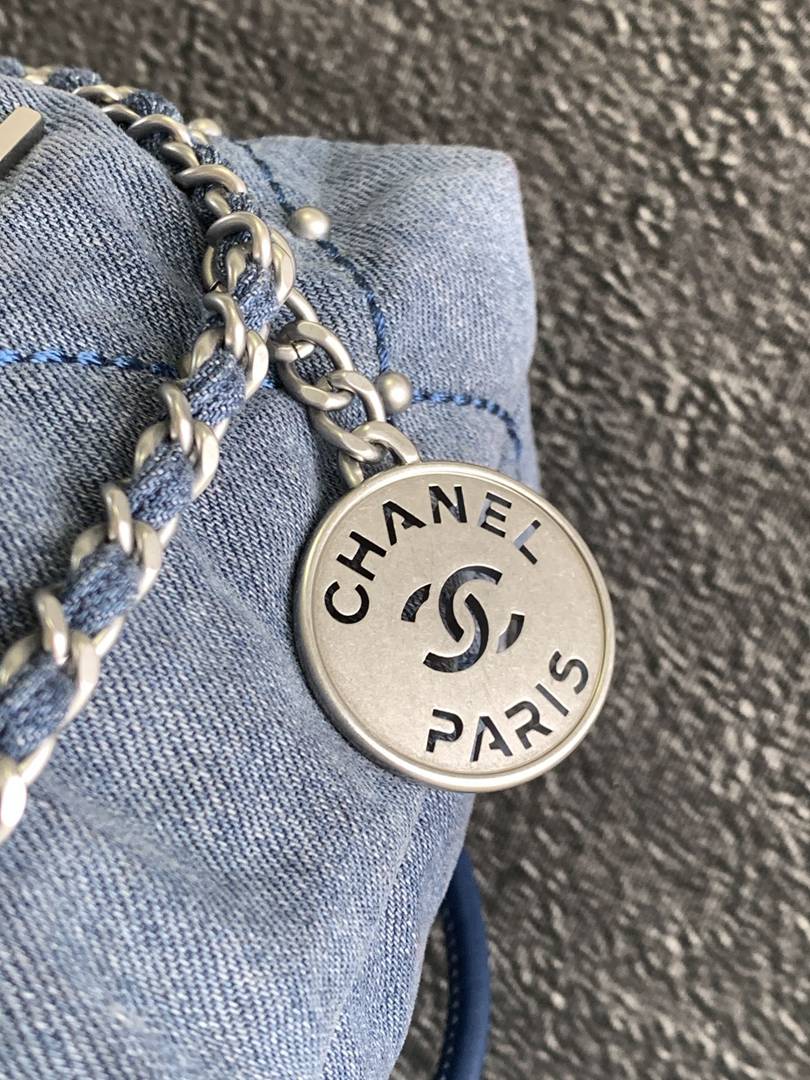 chanel 22 bag Washed denim sliver hardware mini