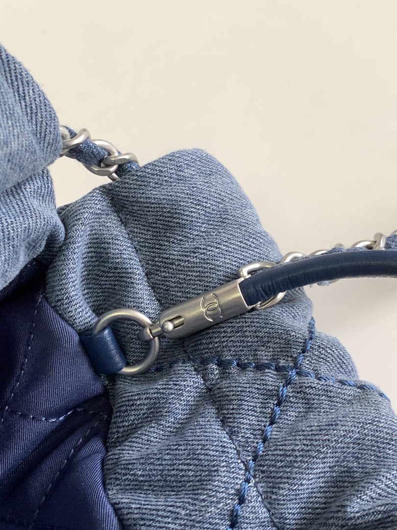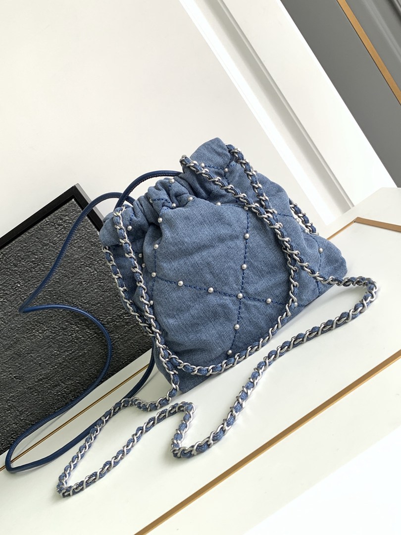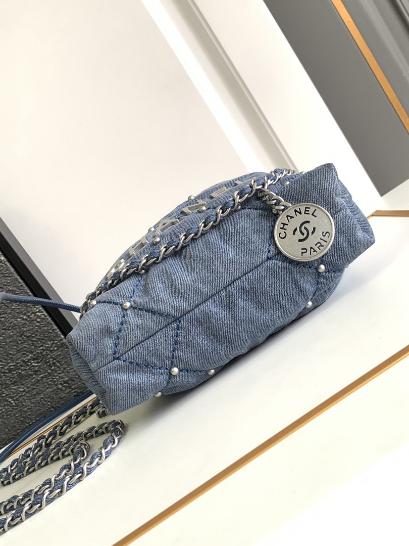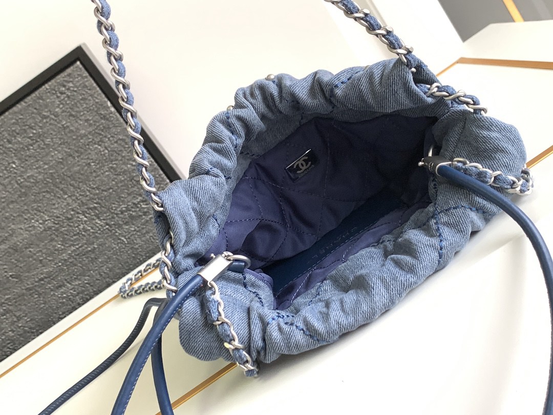 chanel 22 bag Washed denim sliver hardware mini