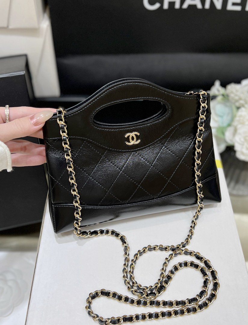 chanel 24c nano 31bag black shiny calfskin gold hardware