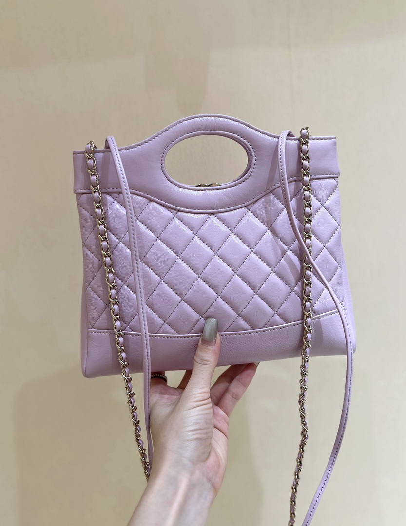 chanel 24s mini 31bag purple shiny lambskin gold hardware