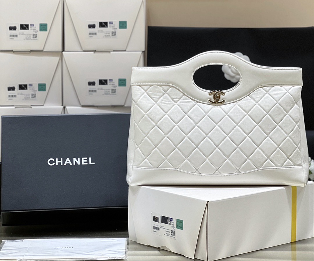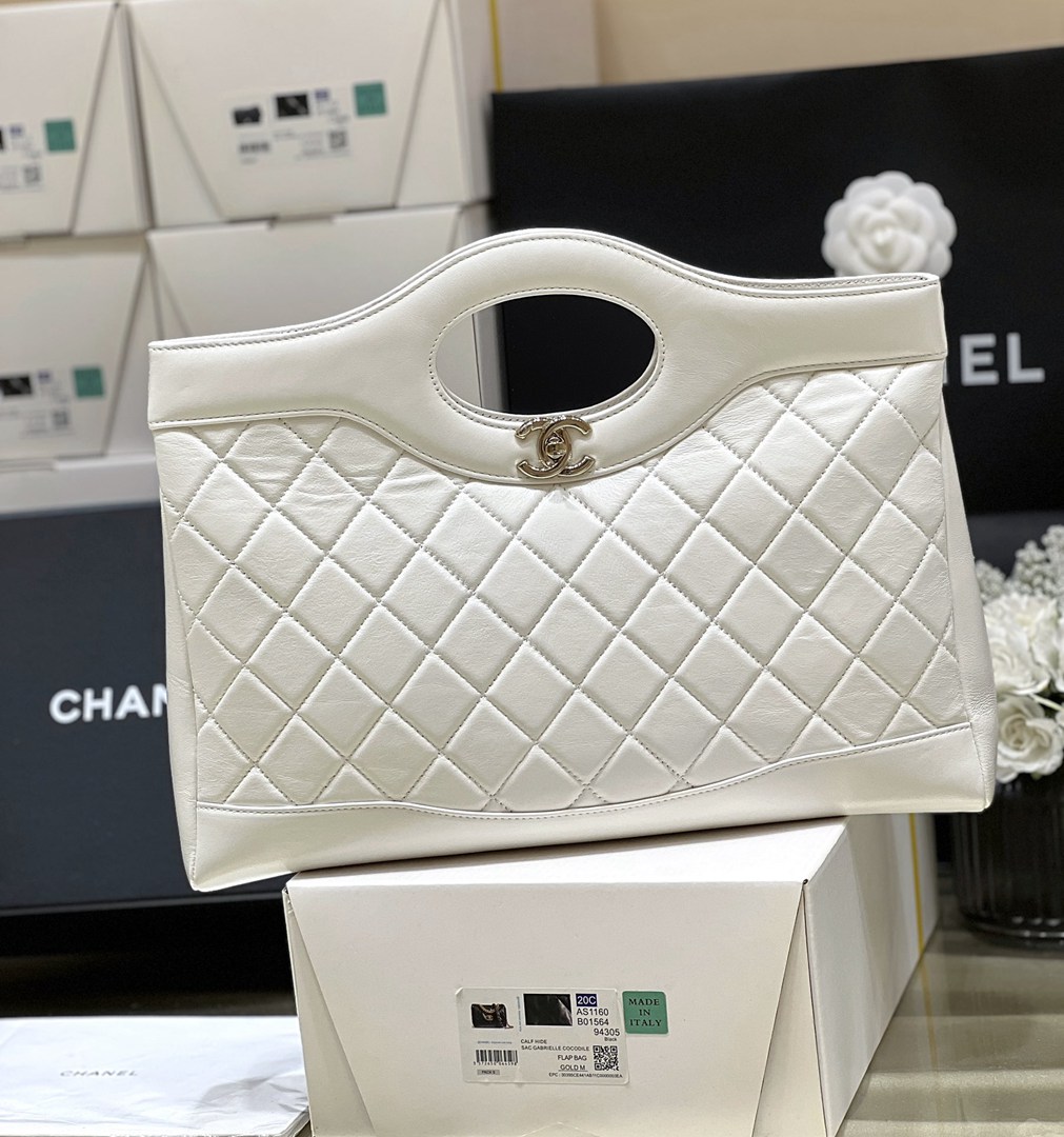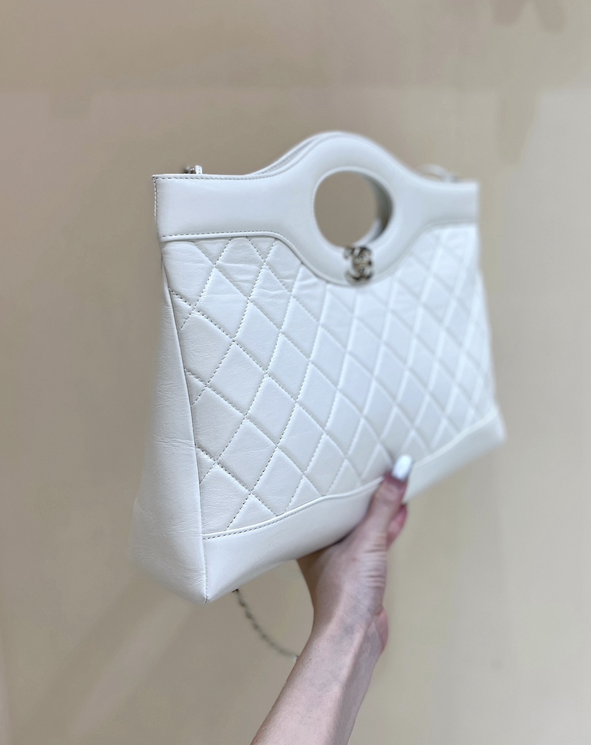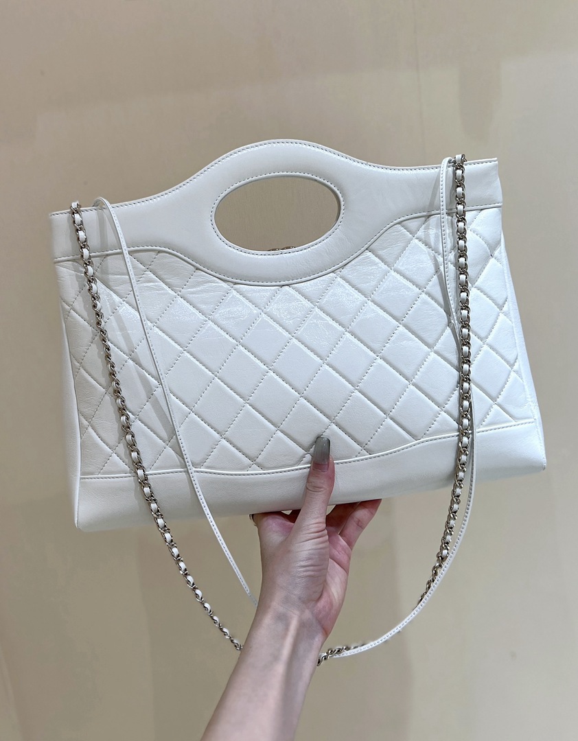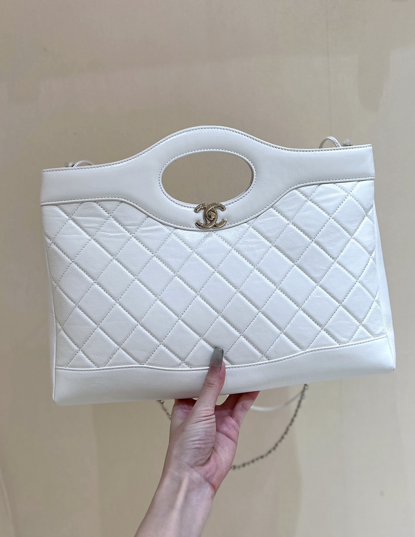 chanel 24s horizontal 31bag white shiny lambskin gold hardware