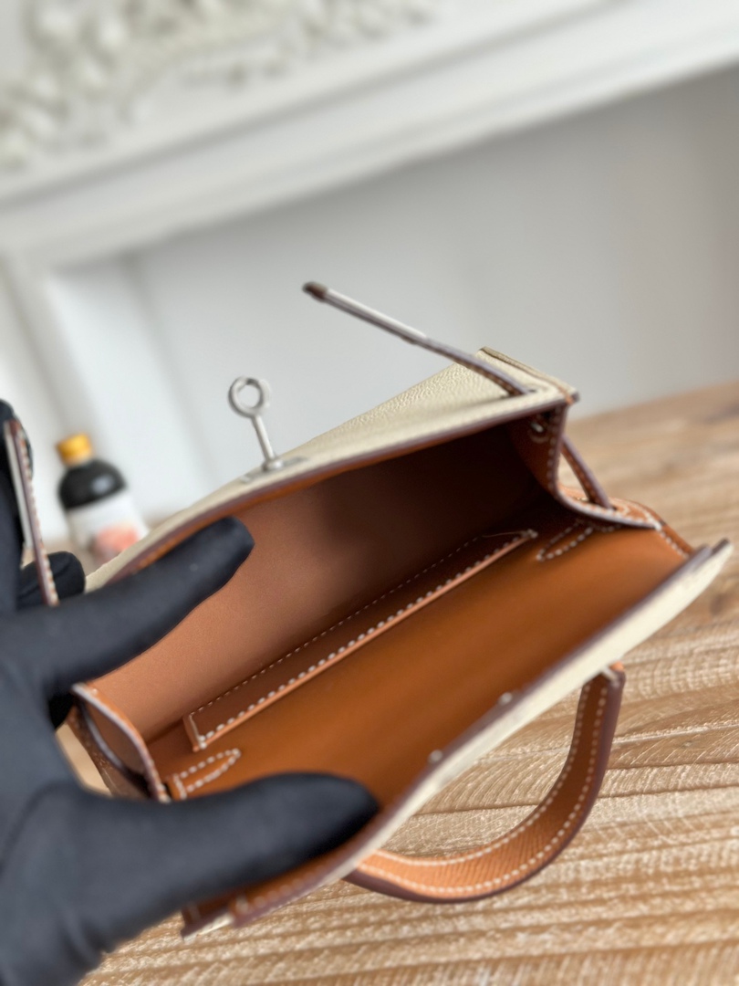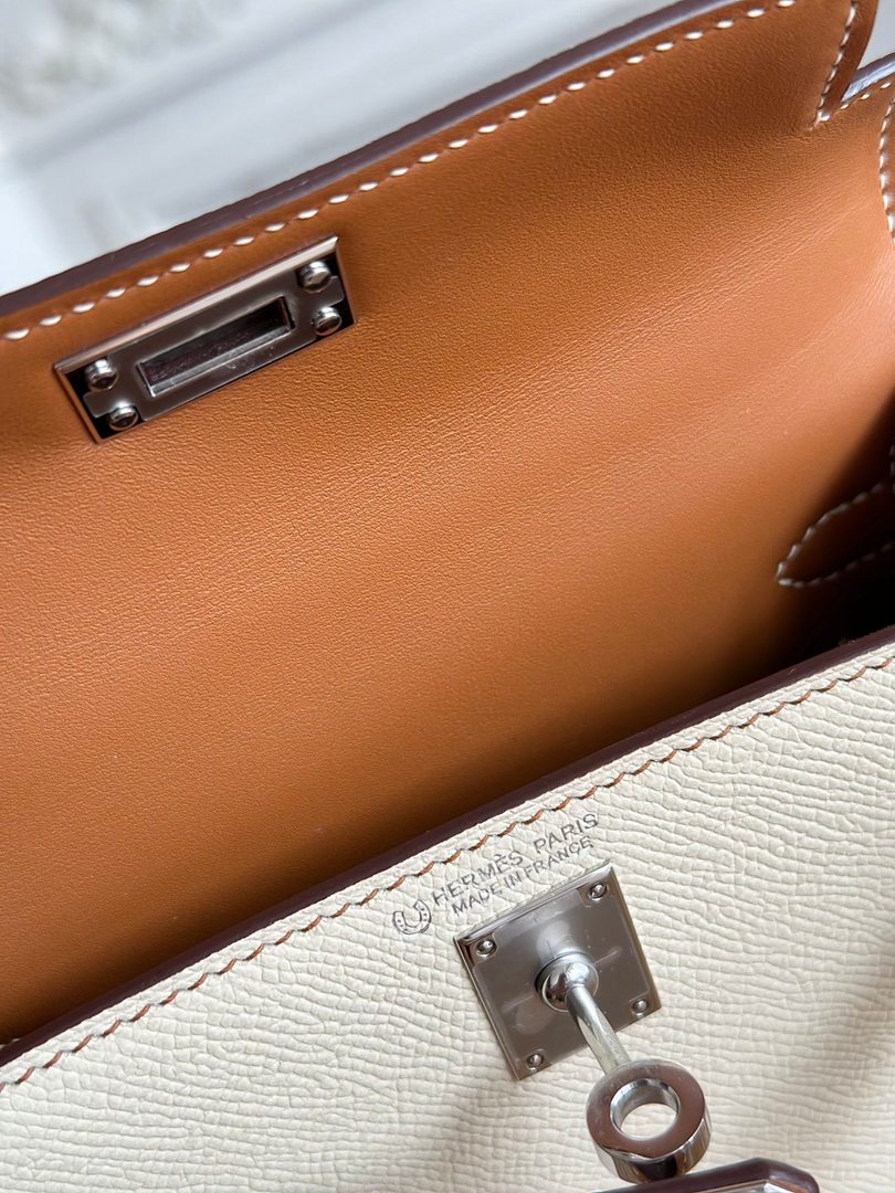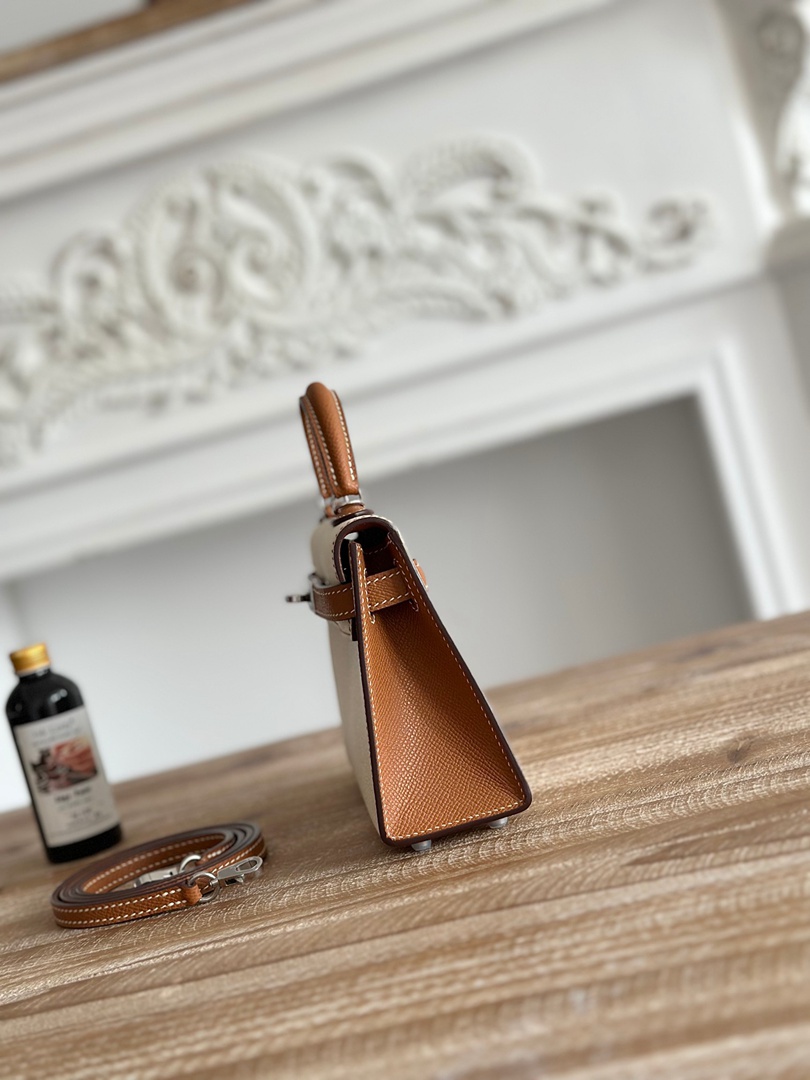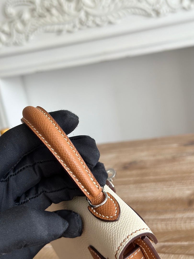 Hermes Mini Kelly II Handbag in Craie and Golden Brown
