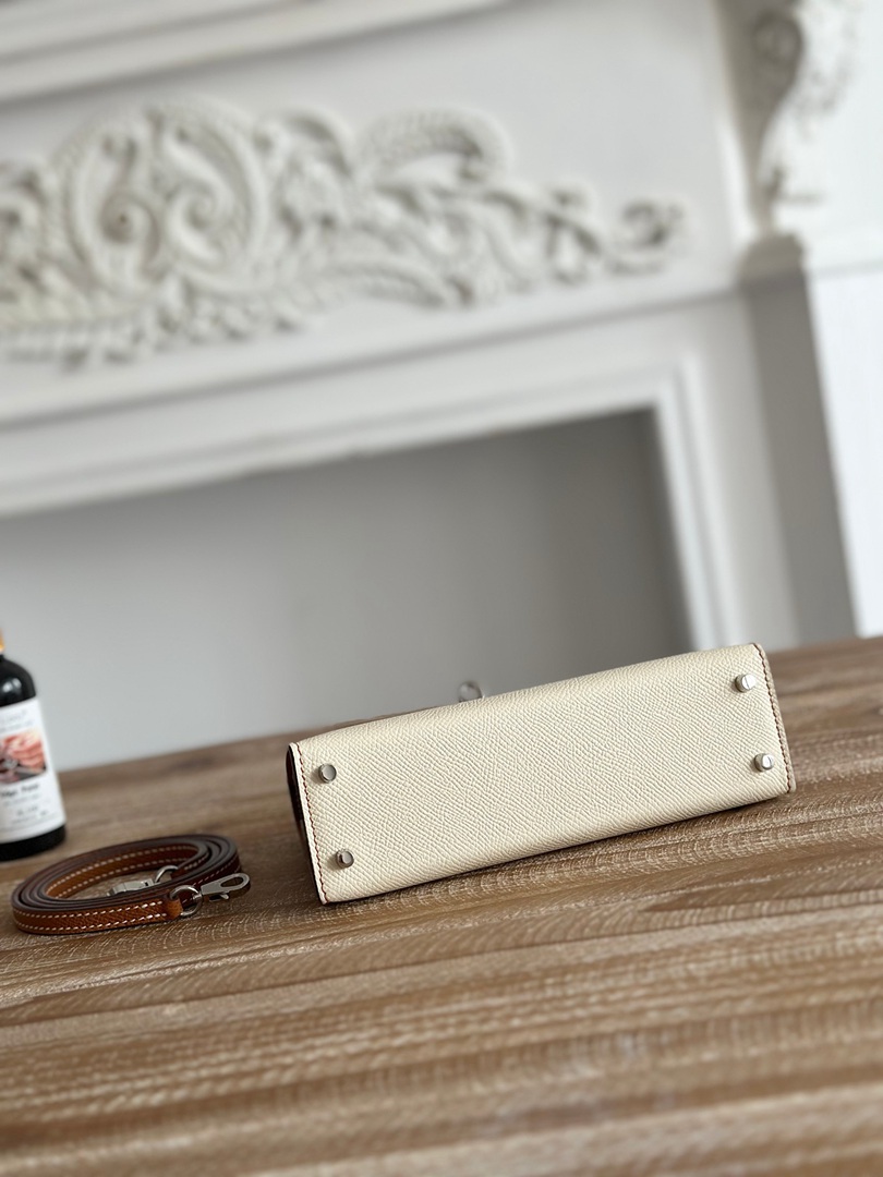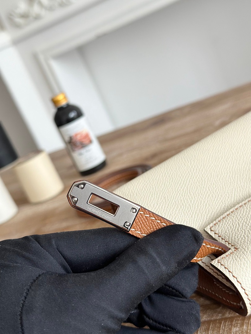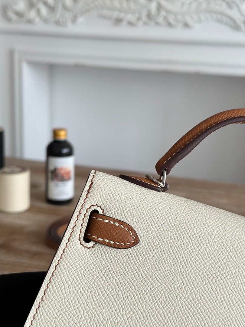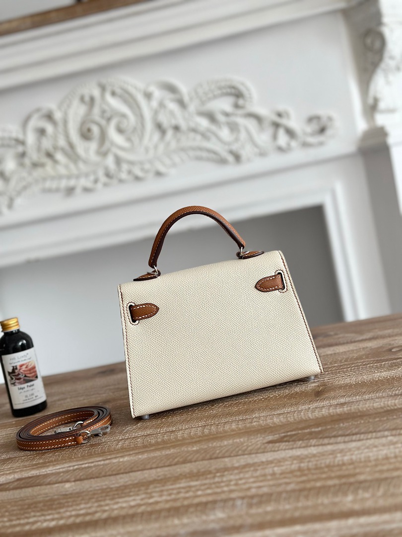 Hermes Mini Kelly II Handbag in Craie and Golden Brown