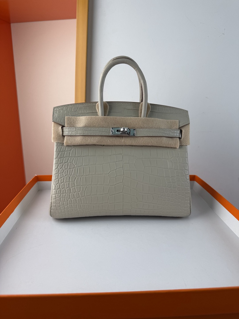Hermes Birkin 25 Matt Alligator Crocodile Handbag in Pearl grey