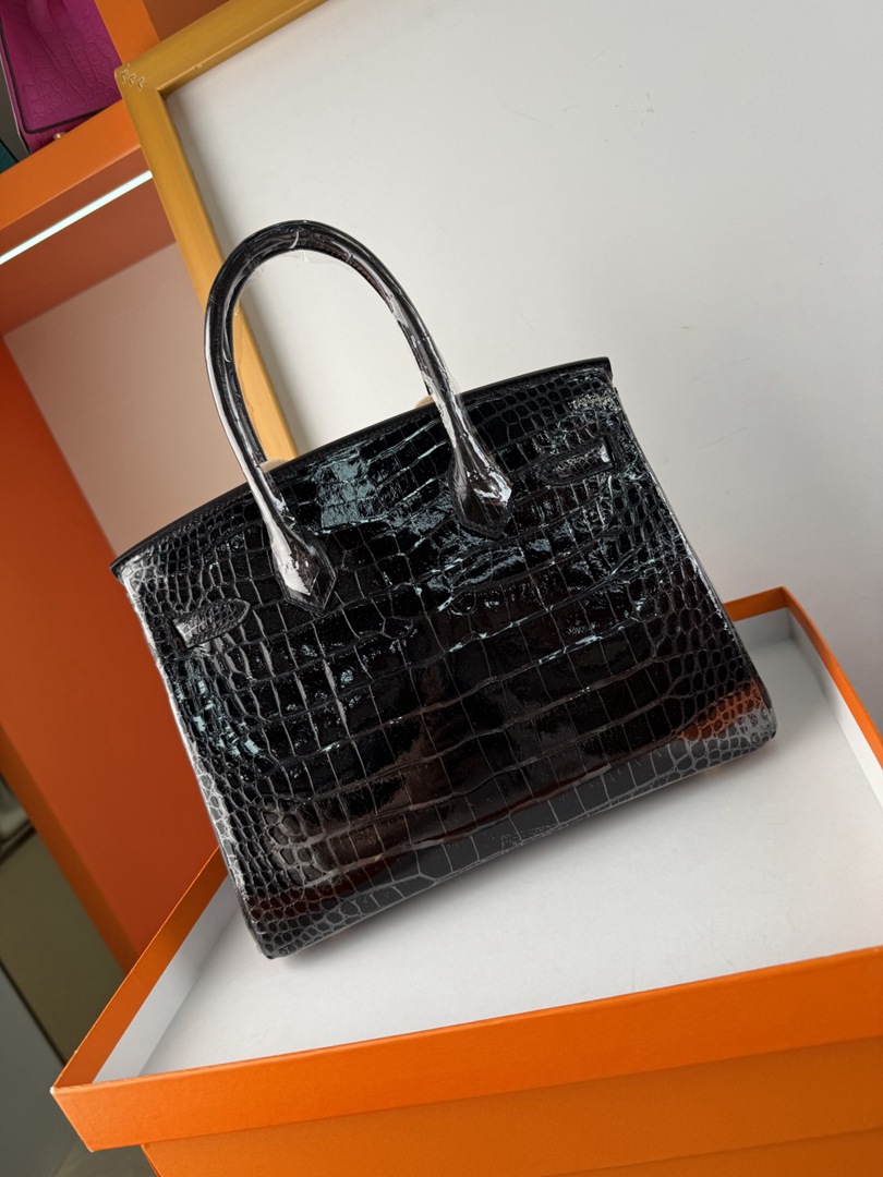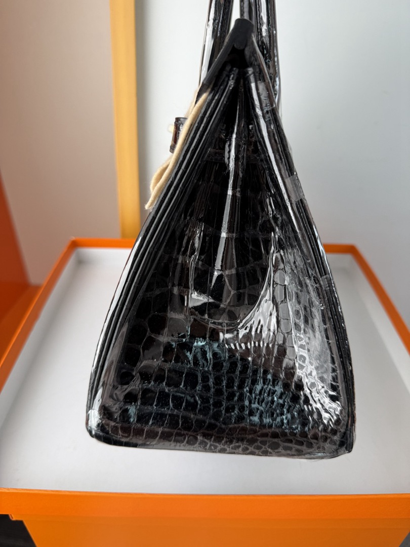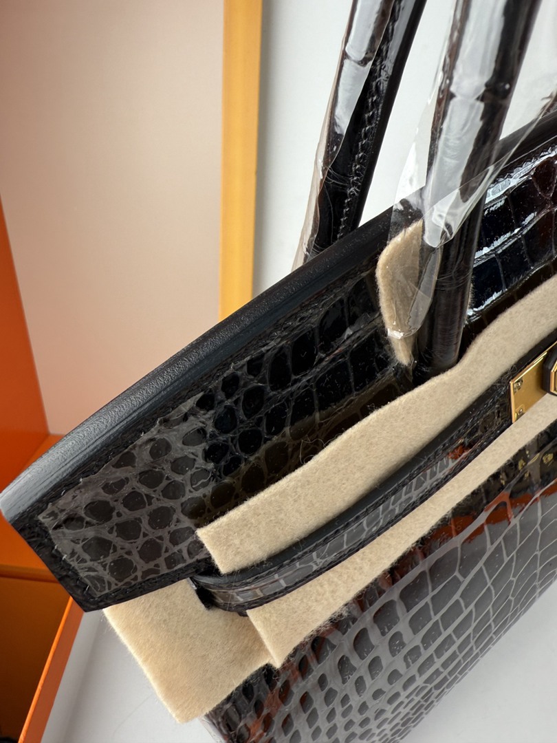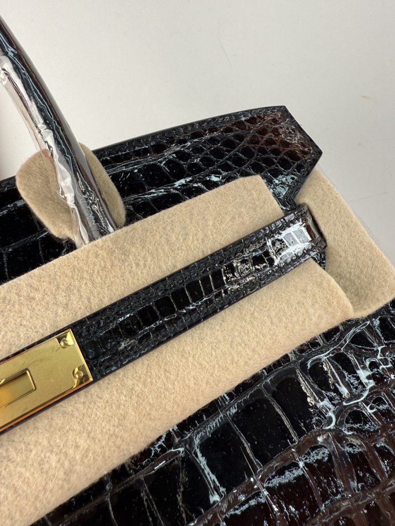 Hermes Birkin 25 Shiny Alligator Crocodile Handbag in Black
