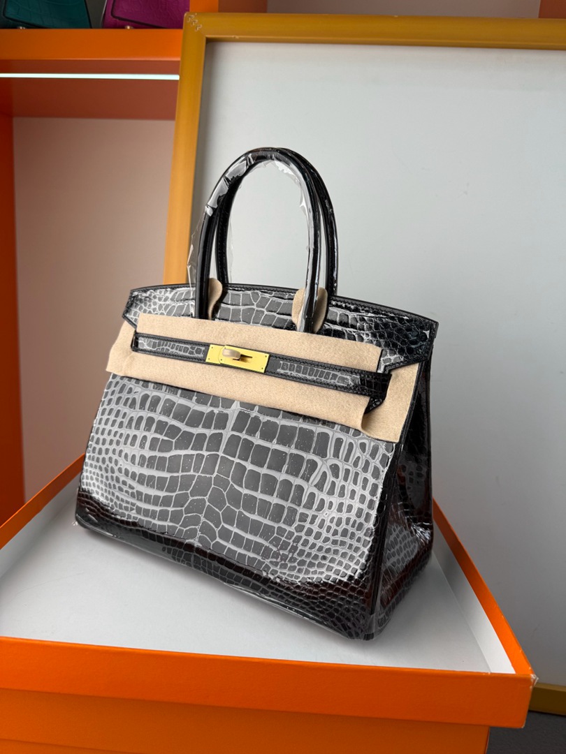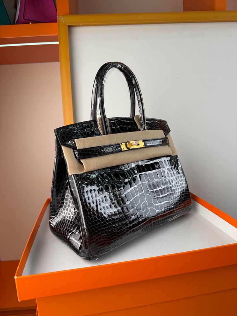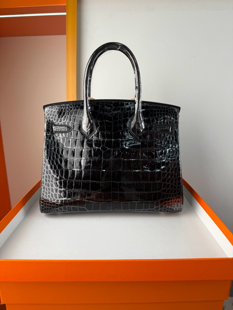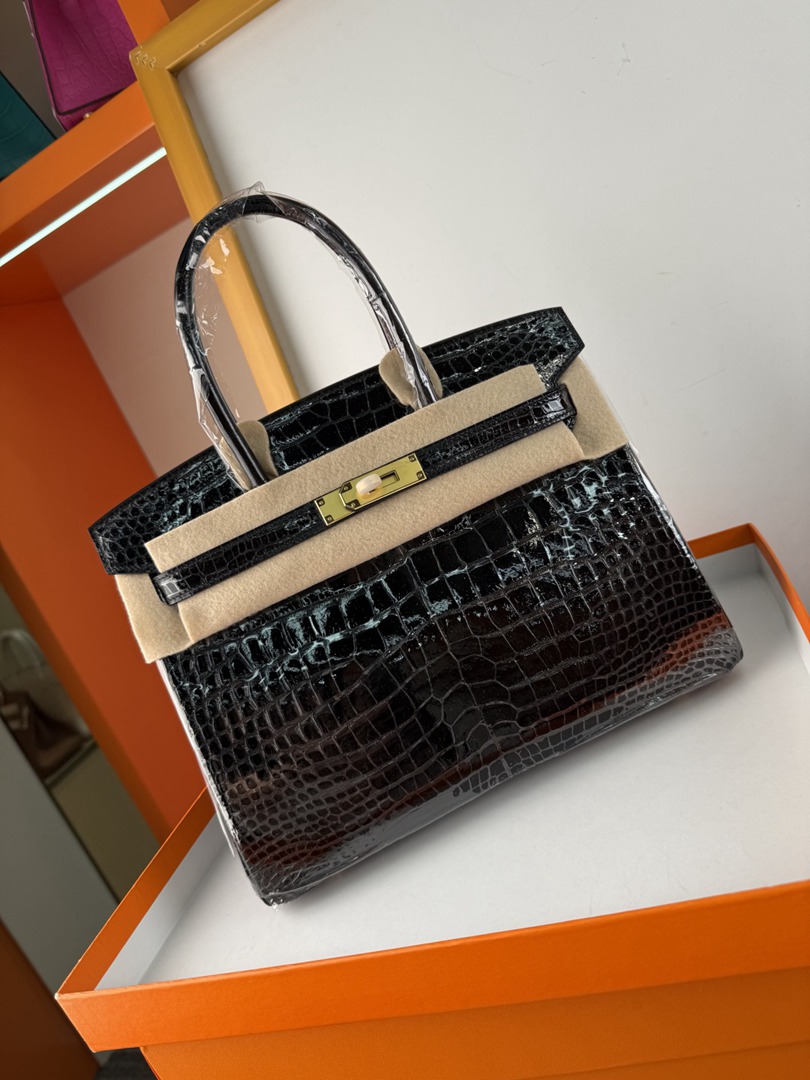 Hermes Birkin 25 Shiny Alligator Crocodile Handbag in Black