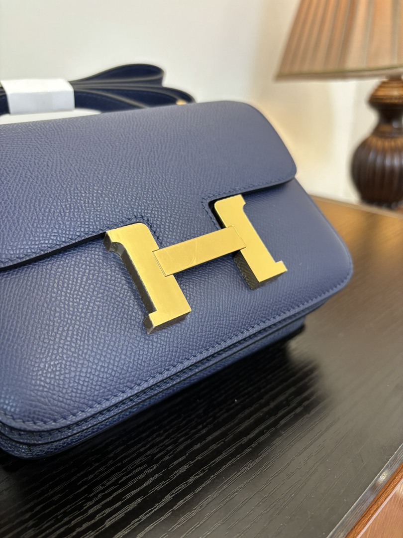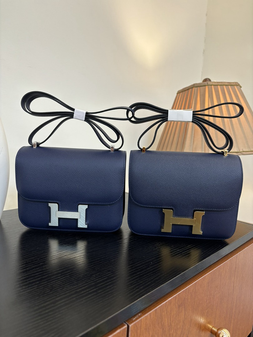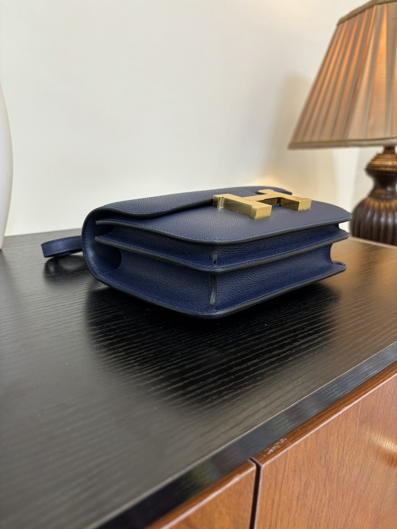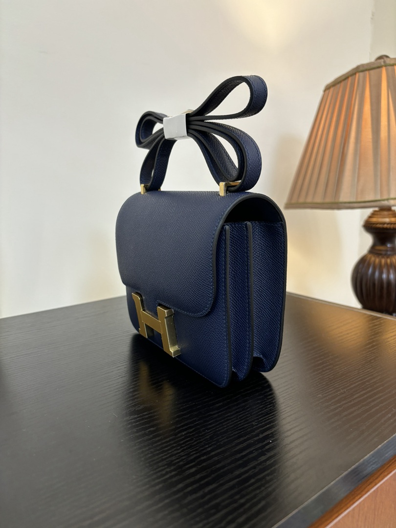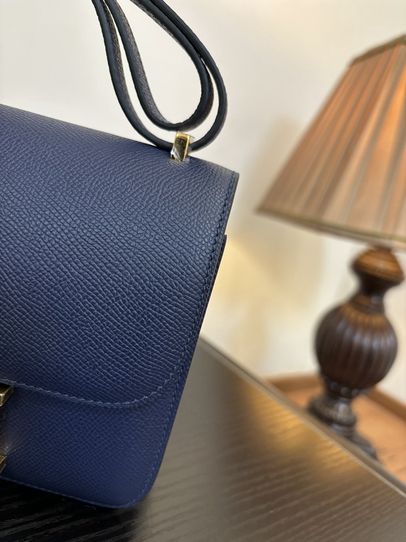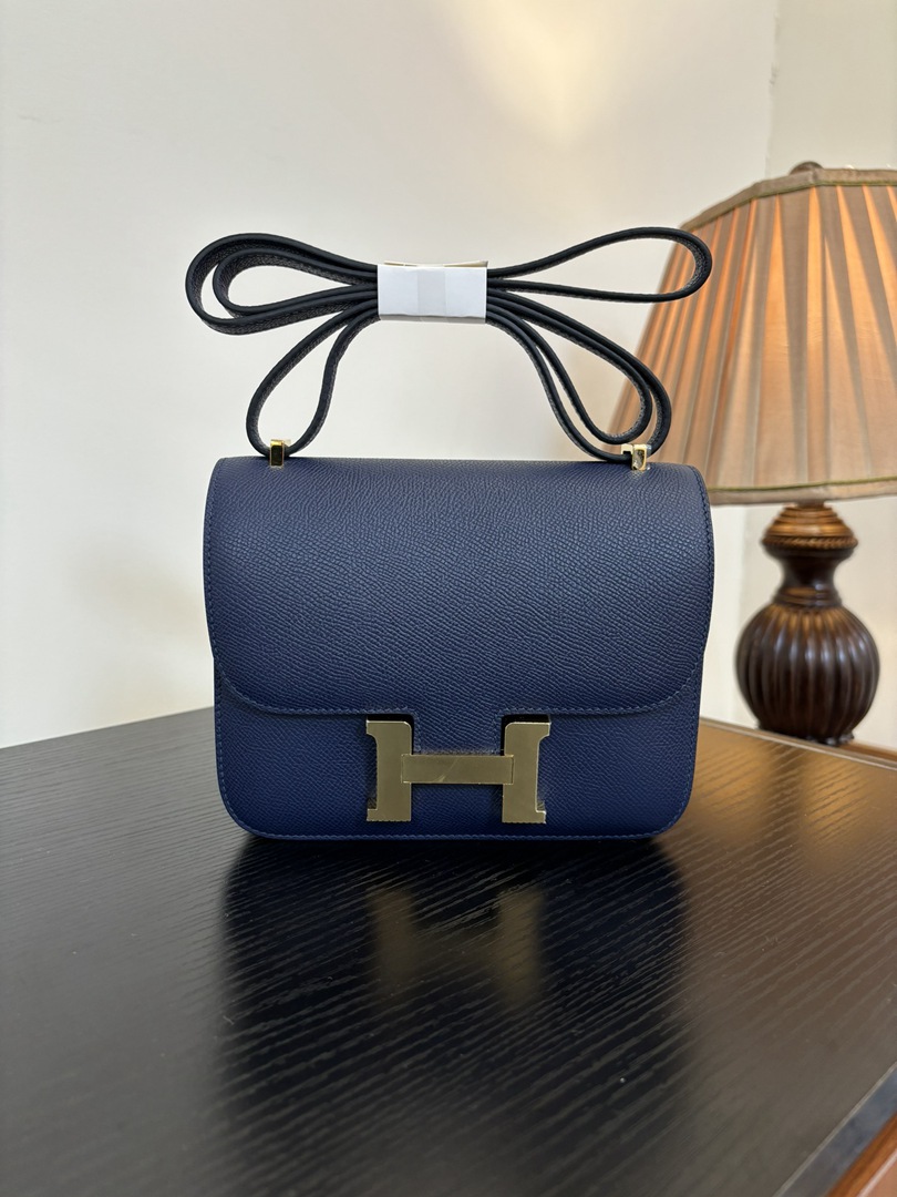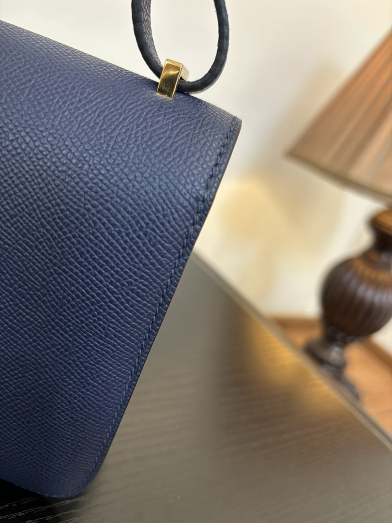 Hermes Constance Mini 18 Epson Shoulder Bag Blue Saphir