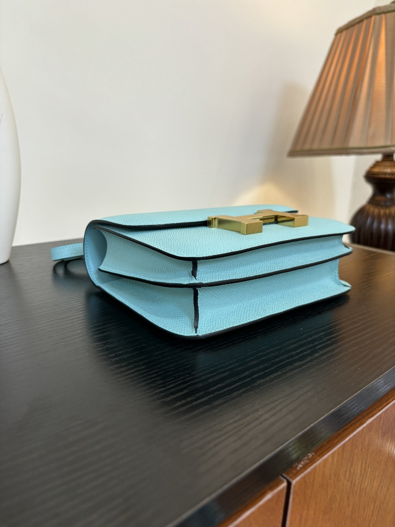 Hermes Constance Mini 18 Epson Shoulder Blue Atoll