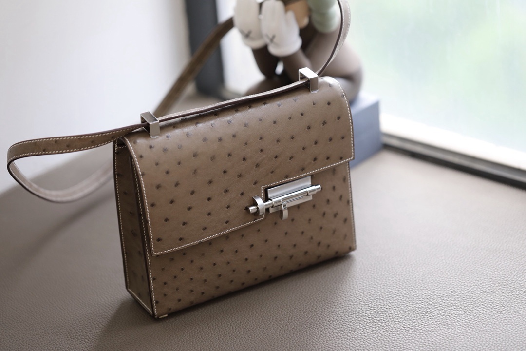Hermes Ostrich Verrou 21 Etoupe