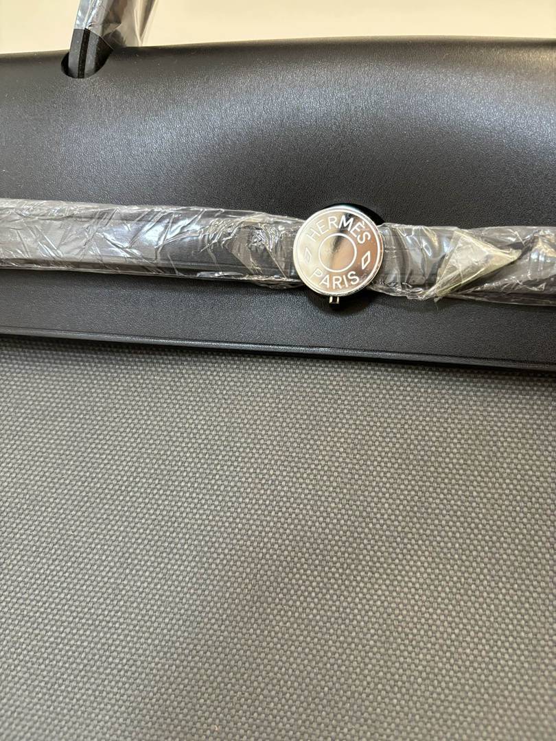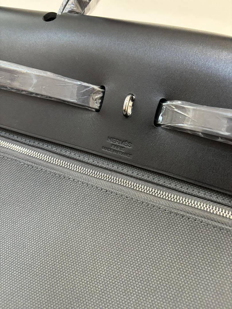 Hermes canvas and leather Herbag Bag Bleu Glacier and Black